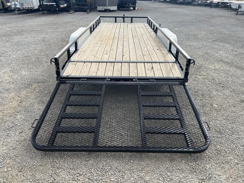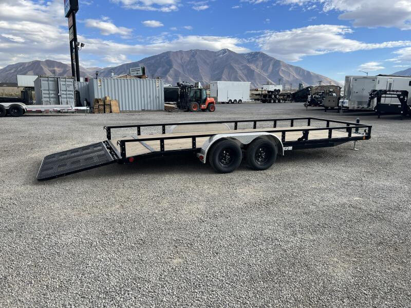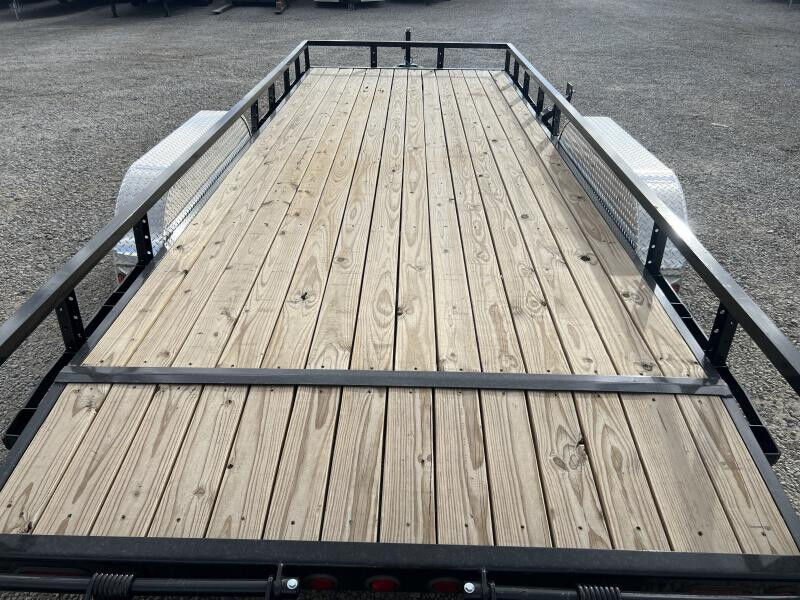 Stock Number: PJ5916 Trailer Includes Following Options: 2' Dovetail w/ HD Fold Up Gate 7k Jack Upgrade Rubrail Standard Options: 7,000 lbs. GVWR 3,500 lb. x (2) G.A.W.R. 5/16" Grade 30 Safety Chain w/Clevis hook (2 each) Bulldog Pipe Mount Swivel Jack (5,000 lb.) 2 - 3,500# (Dexter) One Electric Axle 4-Leaf Double-eye Spring Suspension 15" Black Spoke Wheels ST205/75R15 Radial Tires (1,820 lbs.) 3-1/2" x 1-1/2" (ID) Stake Pockets 9" x 72" Treadplate Removable Aluminum Fenders 4" Channel Wrapped Tongue 2-1/2" Angle Crossmembers on 24" Centers 2" x 2" Removable Side Rail 2" x 2" Top Rail 2" Treated Canadian Spruce Pine Fir Deck 83" Wide Deck Flushmount 6" Oval Lifetime LED Tail Lights All-Weather Wiring Harness (7-way RV) Powdercoat 5 year Dexter Axle Warranty WASATCH TRAILER SALES - LARGEST TRAILER SELECTION IN UTAH Springville: (801) 528-1581 | 1180 S 2000 W, Springville UT, 84663