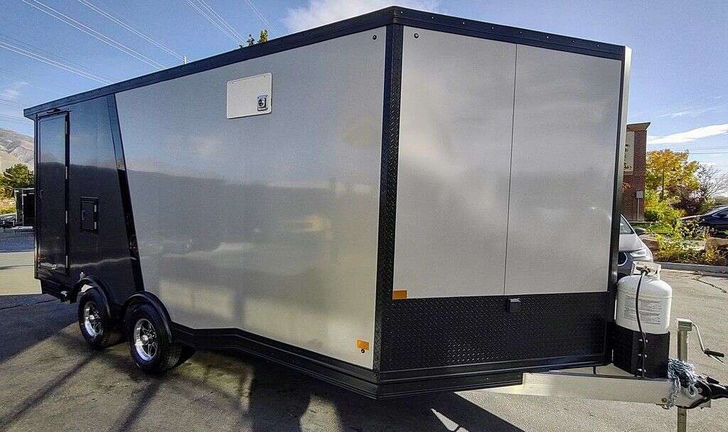 LIMITED TIME $334 A MONTH WITH ZERO DOWN WITH OUR SPECIAL LOCAL CREDIT UNION PARTNER!!! NO PRE PAYMENT-PENALTIES!!! EASY IN-HOUSE APPROVAL!!!!!!! 8.5x18 High Country Elevation Series Enclosed All Aluminum Snowmobile/UTV/ATV Pkg!!! LIFETIME FACTORY WARRANTY!!! You need to see the workmanship in person, these are not your standard trailers, these are the TOP OF THE LINE!! PREMIUM!!! REAR CANOPY WITH RECESSED LIGHTING!!! Super heavy duty Spare Tire Mount, no breakage here!!!! Dovetail Ramp!!! RB045513