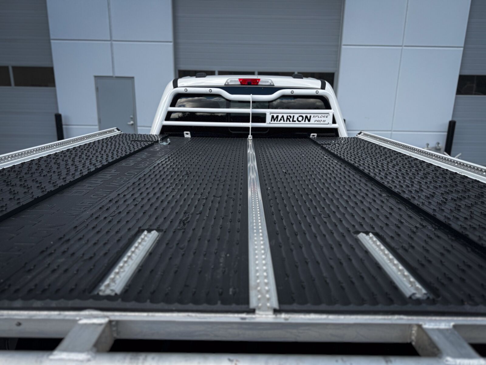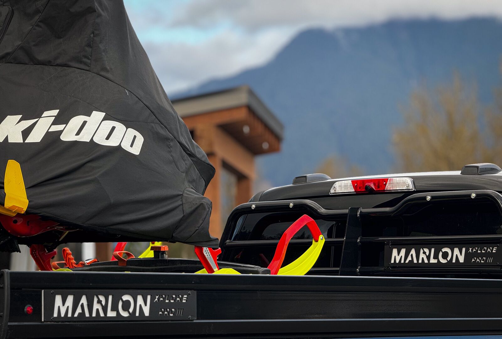 Features: •Integrated Wiring: Side and middle extrusions and enclosed wiring for LED lights inside and outside the box. •Strategic LED Lighting: Bullet lights on the headache rack and under the deck with a heavy-duty toggle switch. •New Marlon Adjustable Foot Pads: Fully adjustable legs fit any truck bed without cutting or trimming--no more shims. •Integrated Seal Kit in the frame extrusion eliminates the aluminum plate and cleans up the deck's look. •Marlon Logo Plates: Aluminum plates with a textured black finish replace decals offering a sleek look and customization options. •HDPE Decking: Durable and consistent look, removing the aluminum seal kit for easier leg adjustments. •Two-Position Slide Out: Adjustable sides for the narrow mountain sleds or full width for the trail machines--BRAAP Mode. •Headache Rack: compatible with newer trucks, accommodating third taillights and rear facing cameras. •Track with Multiple Tie Downs: Secure numerous items with ease. •HD Ramp Hooks: Mounted inside the ramp for added security. •Telescopic Ramp: Wide Superglides for wider ski stance and 50" SxS's.