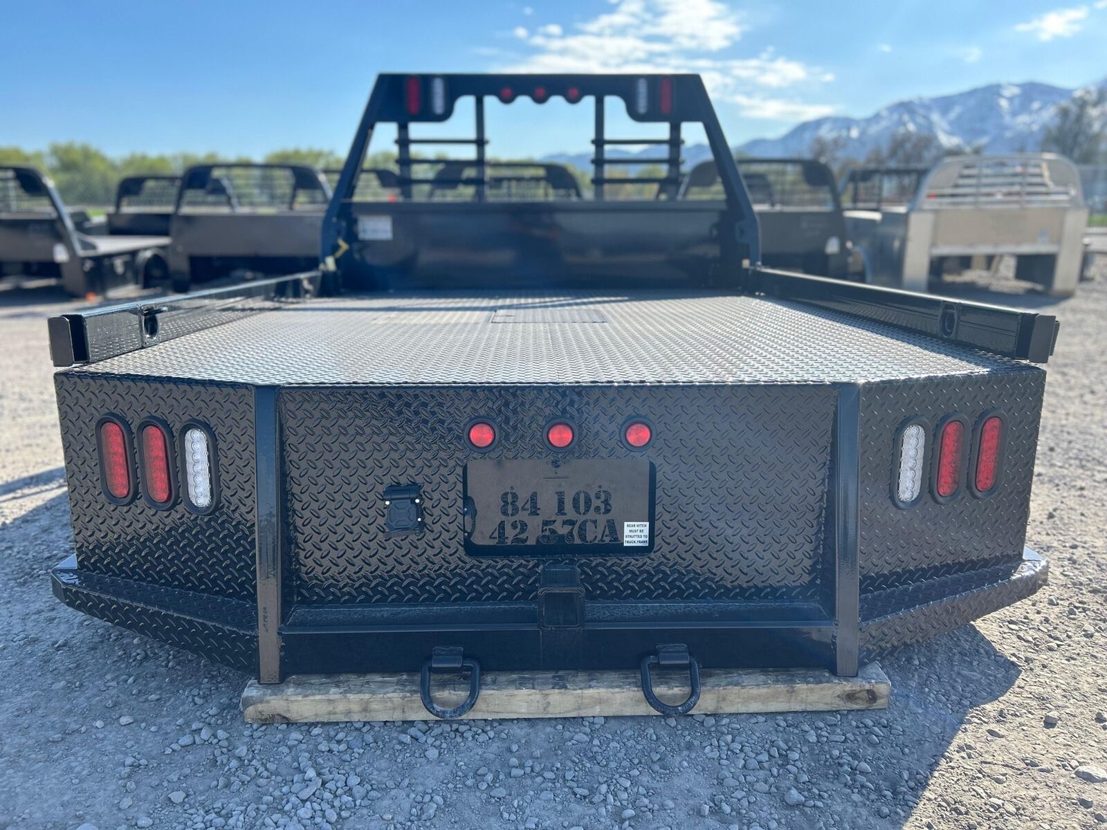 The deep skirting of our 4-Box Utilities offer truck frame coverage to give your truck a show truck look. Rated at 18,000# Tow/1,800 hitch weight based off of use of standard receiver with top of ball level with bottom of receiver tube. If you are using a different hitch (drop or pintle) please call with specs so we can give you a specific rating.