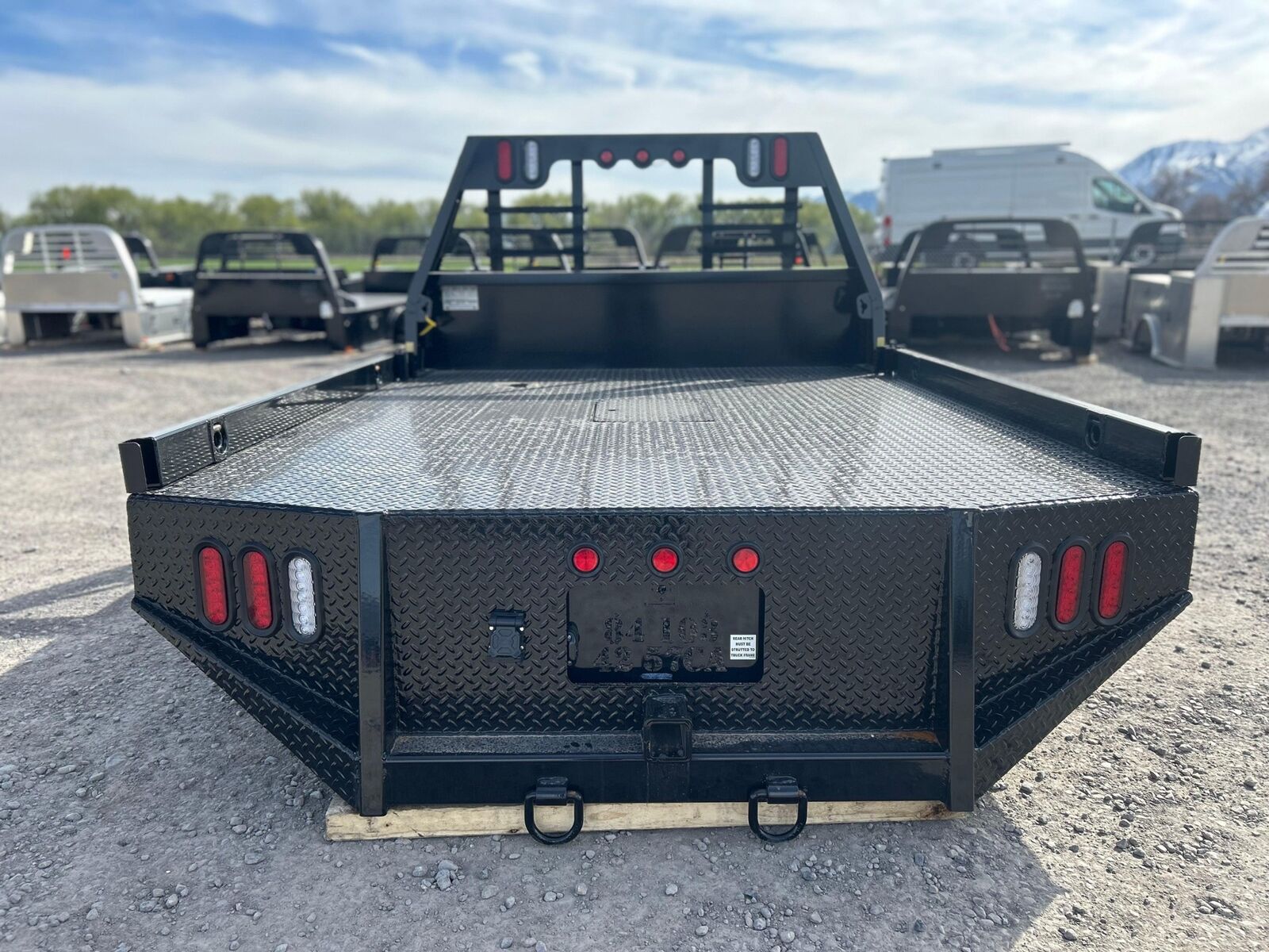 This is the classic truck bed we started out with. The goosneck hitch, receiver hitch, and hinged side rails are all standard. We also include stake pockets, LED lights all around, mudflaps and wiring harness. This bed can be outfitted with optional toolboxes to make this a very effective upgrade to your truck. We put all steel beds through a rigorous paint process that includes blast, acid etching, primer and powder coating that allow us to offer a 3 year paint warranty.