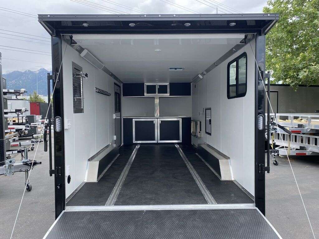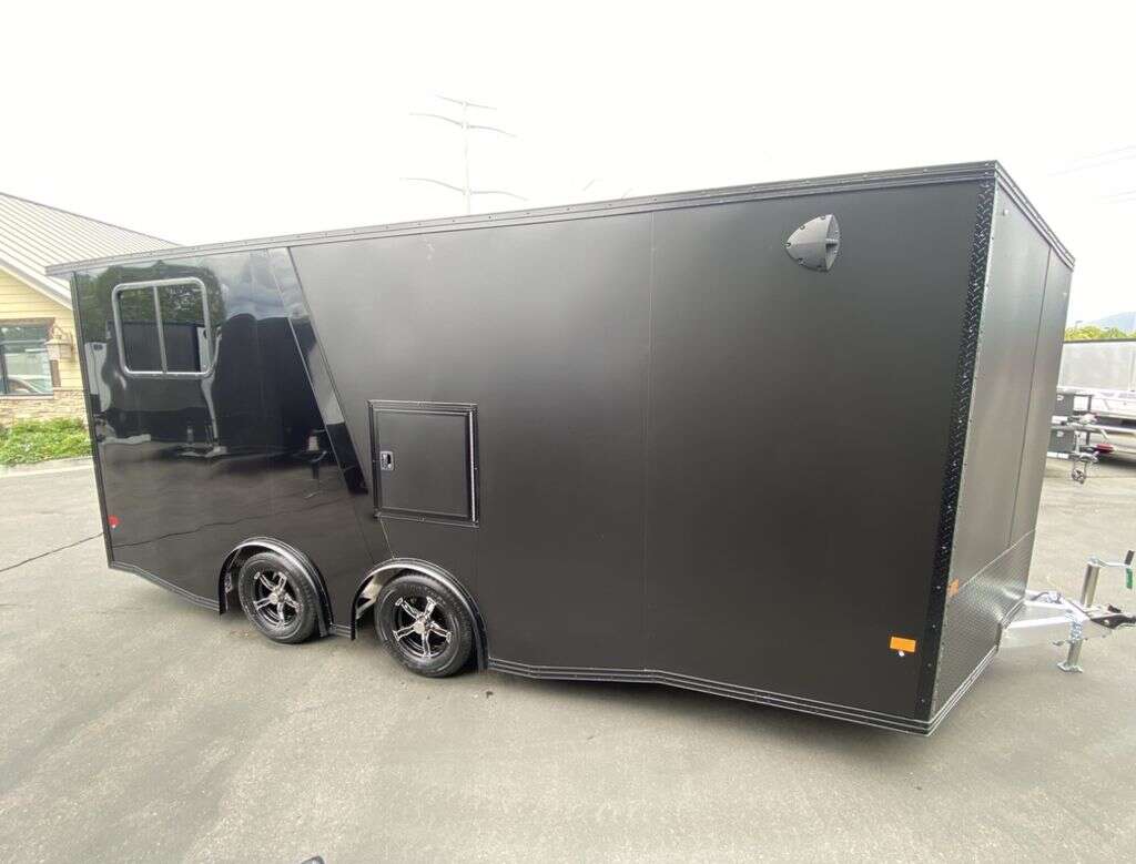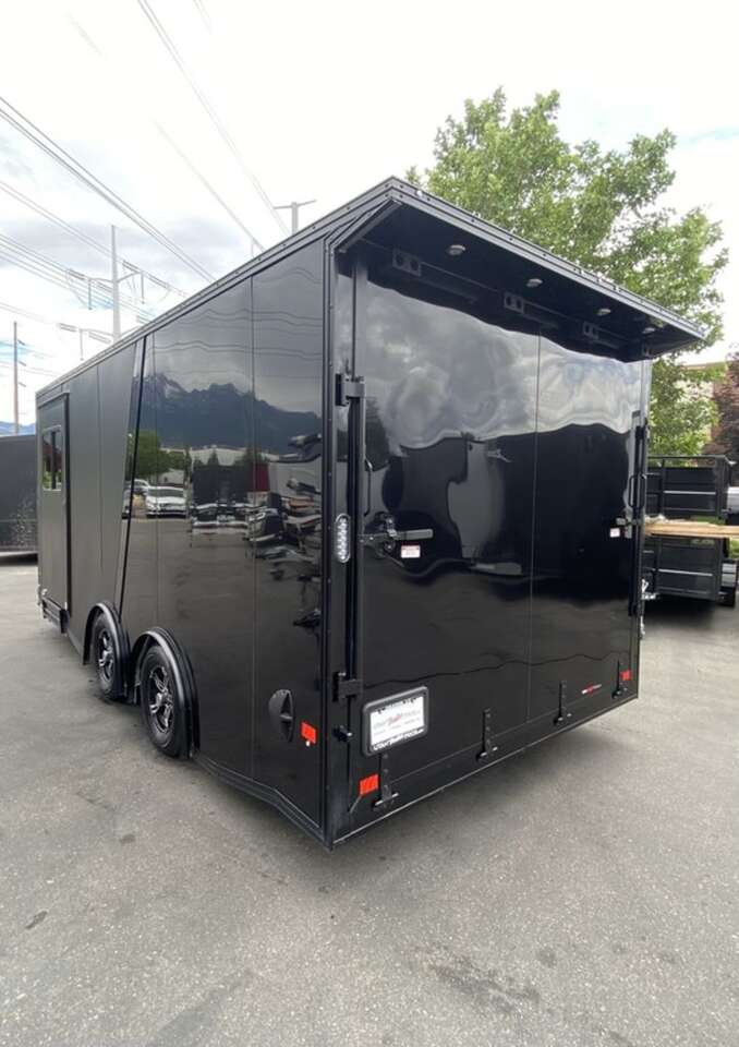 Pre-Order Now!!! NEW!!! 8.5x18 BLACK OUT ULTRA PREMIUM UTV Pkg!!! 4 YEAR FACTORY WARRANTY!!! UTV Pkg includes 6 inches extra height, Torsion Axles, Spread Axles, Upgraded Aluminum Mag Wheels, V-Front, 36" Sloped Design, (2) Rows of Slide Track w/ (4) Sliding D-Rings, Starter Flap, 4 Heavy Duty Ramp Bumpers, and more!!! Pass Through Fuel Door!!! You need to see the workmanship in person, these are not your standard cargo trailers, these are the TOP OF THE LINE!! PREMIUM!!! BLACK OUT TRIM PKG!!! All Aluminum Enclosed Cargo with UTV Pkg!!! UPGRADED WHEELS!!! REAR CANOPY WITH RECESSED LIGHTING!!! Super heavy duty Spare Tire Mount, no breakage here!!!! Dovetail Ramp!!! PB043865