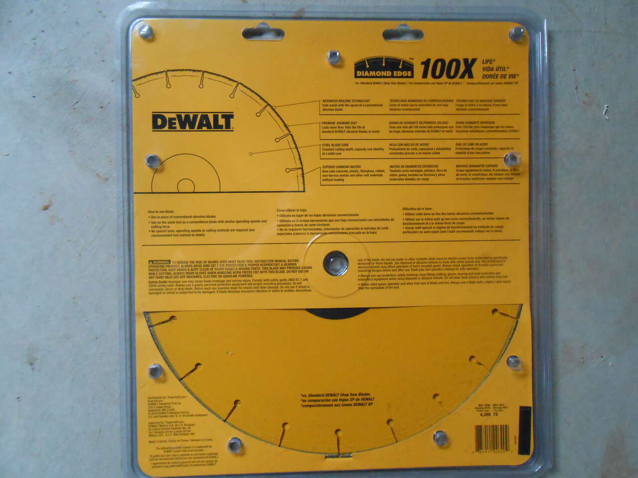 2-14" Dewalt DW8500 Diamond Chop Saw Blades. 1" arbor, 3/32" thick. Cut thru about anything, including pipe, steel studs, angle iron, rebar, threaded rod, plastic, fiberglass, rubber, brick, tile or concrete. Lifespan is 100x's greater than regular blades. A MUST for Tile cutting where chipping is a concern. Bought several for a project but because they lasted so long I didn't need the last 2. They are New in package. Paid almost $200 apiece but am selling at $98 apiece or $180 for both