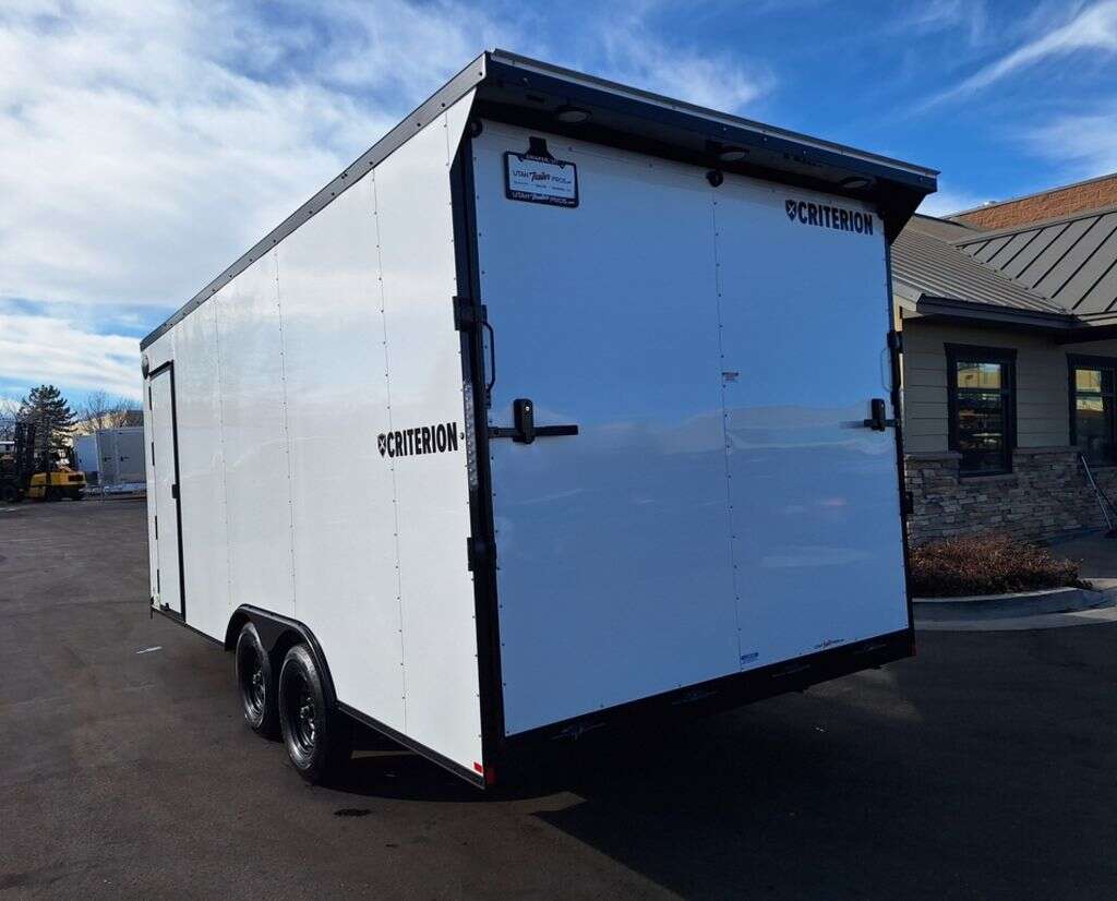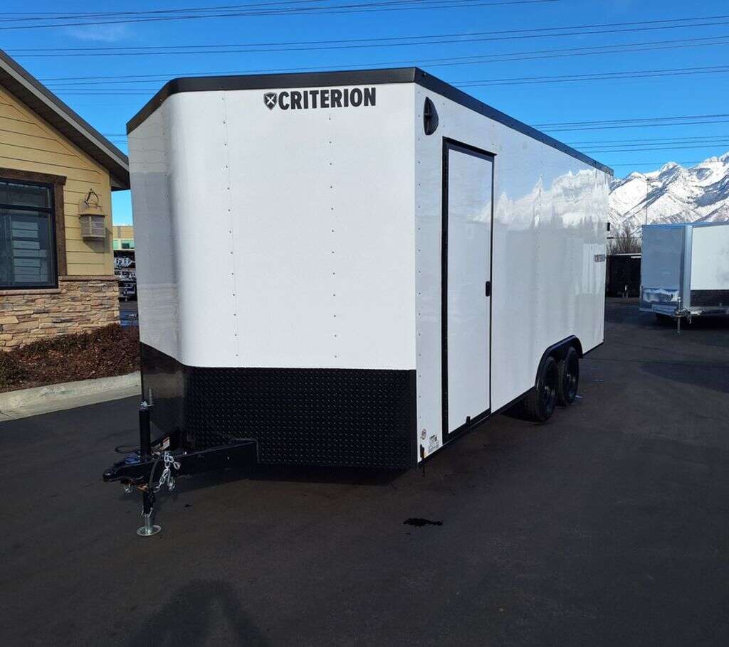 NEW!!! CRITERION 8X18 UTV-2 Pkg!!! 6 Inches Extra Height!!! 87 Inch Rear Entry!!! 4 Heavy Duty Recessed D-Rings!!! REAR CANOPY WITH RECESSED LIGHTING!!! Criterion Trailers are Super Premium Steel Framed Trailers with a 3 Year Factory Warranty!!! Come take a look at Criterion to see unparalleled quality!!! 2RA007959