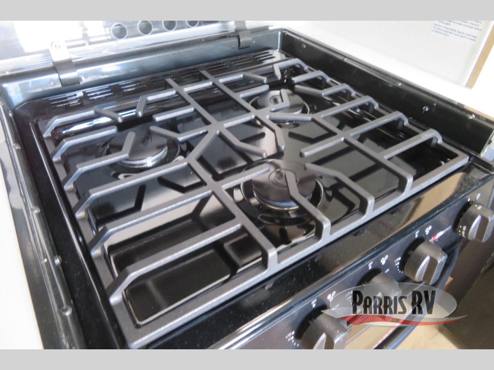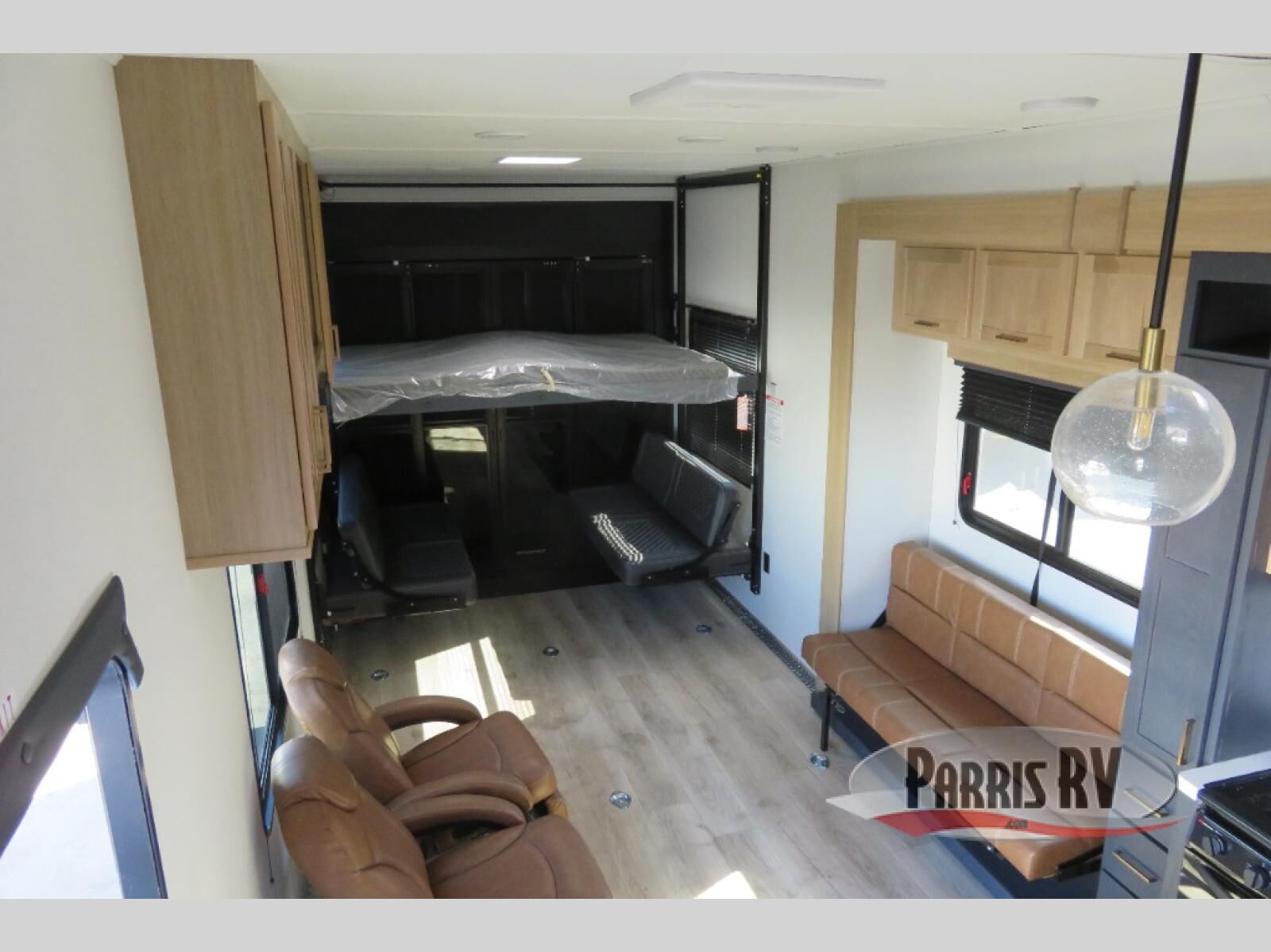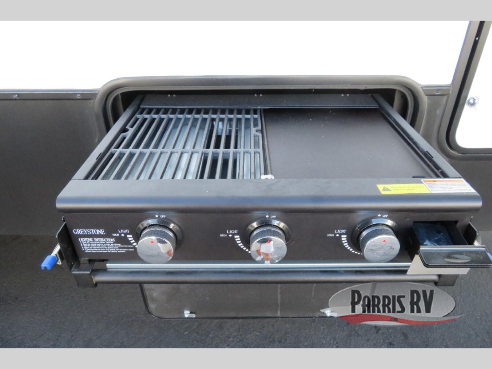 This toy hauler has an open concept to create maximum interior space when set up at the campground! The whole family will have comfortable places to sleep between the 70" x 74" king bed slide across from a wardrobe slide in the front private bedroom, and the electric queen bed above the convertible sofa. Next to the pantry and three burner range is a sofa with a flip up floor all housed in the slide. The two recliners by the entertainment center offer a comfortable place to relax after a fun day on the trails. You can also rinse the mud out of your hair in the full bathroom in the spacious bathtub with a skylight above for added natural lighting. The outdoor Griddle & Go lets you fry up some delicious fish while staying protected under the 18' electric awning. If you want even more convenience then you can add the optional ramp door patio with a rear electric awning and LED lights to create the perfect gathering spot at night!