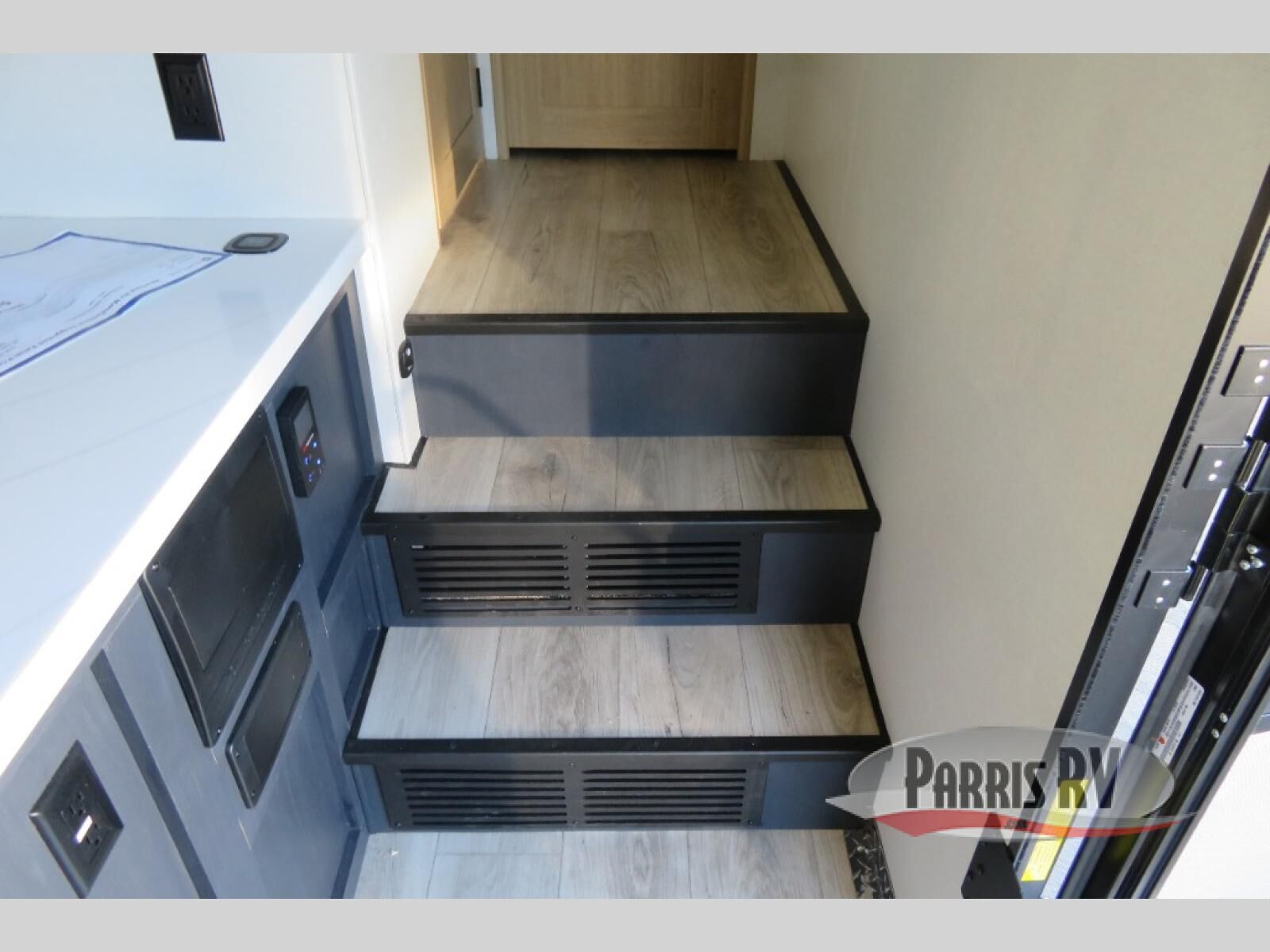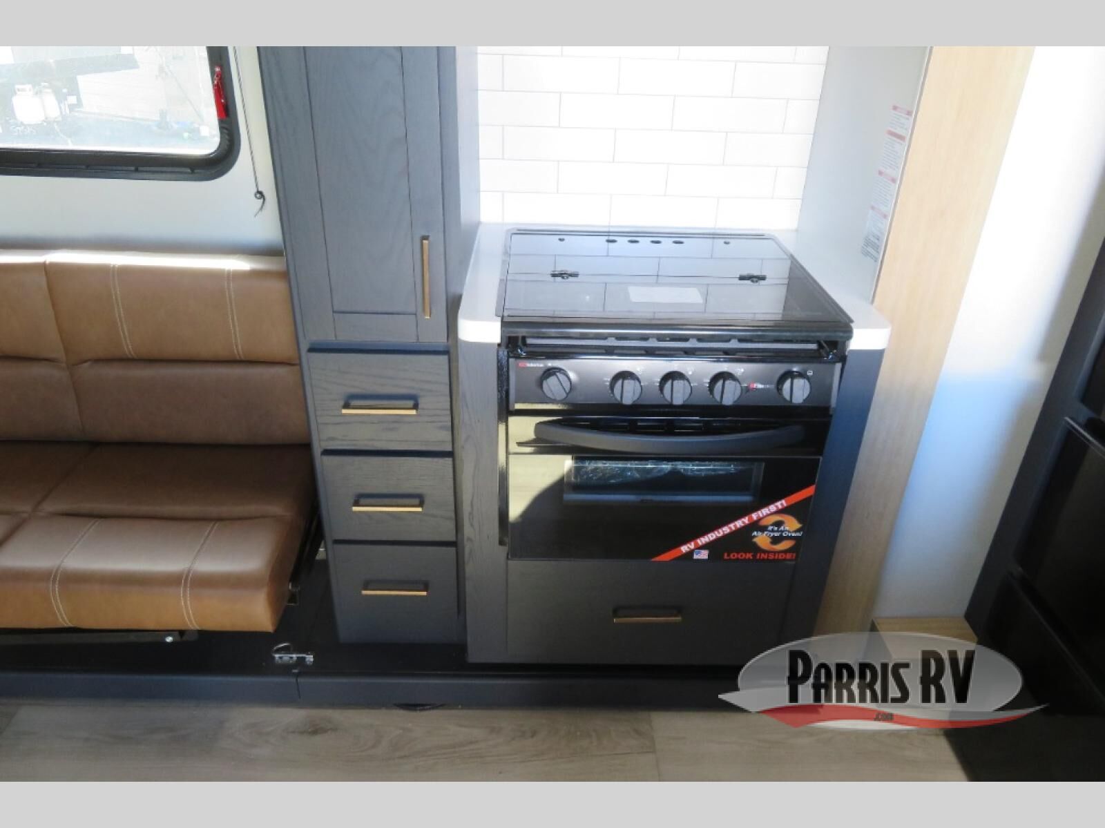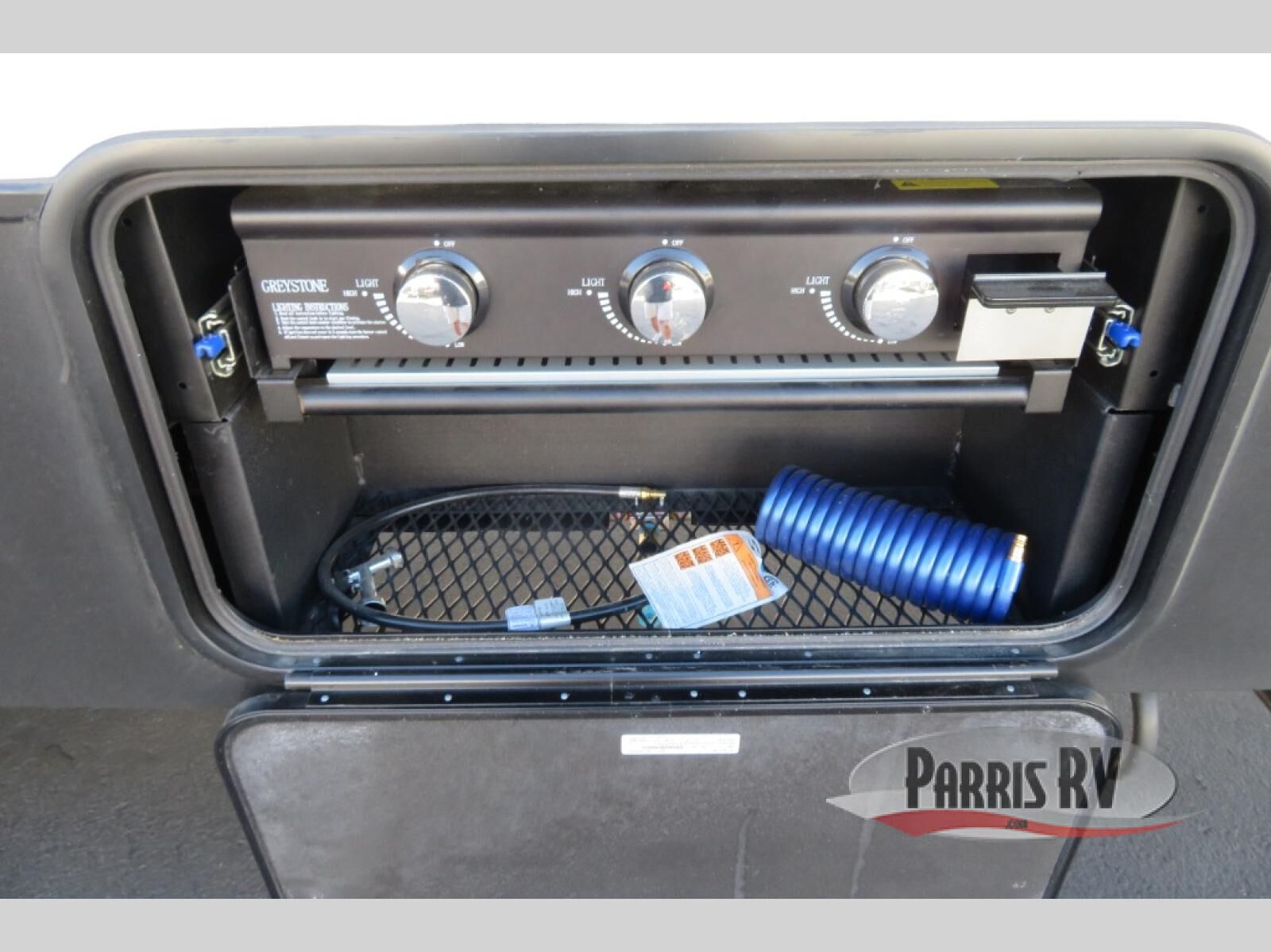 This toy hauler has an open concept to create maximum interior space when set up at the campground! The whole family will have comfortable places to sleep between the 70" x 74" king bed slide across from a wardrobe slide in the front private bedroom, and the electric queen bed above the convertible sofa. Next to the pantry and three burner range is a sofa with a flip up floor all housed in the slide. The two recliners by the entertainment center offer a comfortable place to relax after a fun day on the trails. You can also rinse the mud out of your hair in the full bathroom in the spacious bathtub with a skylight above for added natural lighting. The outdoor Griddle & Go lets you fry up some delicious fish while staying protected under the 18' electric awning. If you want even more convenience then you can add the optional ramp door patio with a rear electric awning and LED lights to create the perfect gathering spot at night!