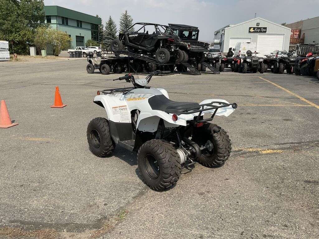 2024 Yamaha Grizzly 90LITTLE BEAR, BIG PERFORMANCEProven Off-Road performance and Grizzly-styling with a 90cc engine and CVT transmission, the Grizzly 90 is perfect for trail riders age 10 and up.Features may include:TOP FEATURESConfidence-Inspiring 90cc EngineThe Grizzly 90 is built to bring maximum fun for young ATV riders ages 10 and up. The low-maintenance 90cc engine is tuned to deliver excellent low- to mid-range performance, while the fully automatic CVT transmission with reverse, gated shifter and electric start with back-up kickstart all come standard.REDUCED MAINTENANCE DESIGNDurable, proven components keep servicing simple and affordable thanks to features like the toolless quick-access air filter element.SCALED DOWN, NOT SCALED BACKThe Grizzly 90 takes cues from its top-performing full-size Grizzly siblings, but is designed specifically for younger riders just getting into the sport. The result is accessible, confidence-inspiring performance with Grizzly family style.