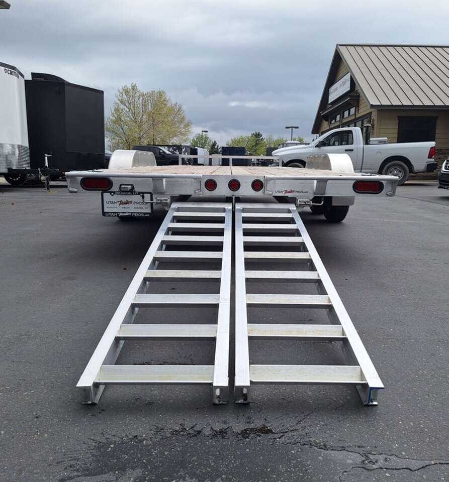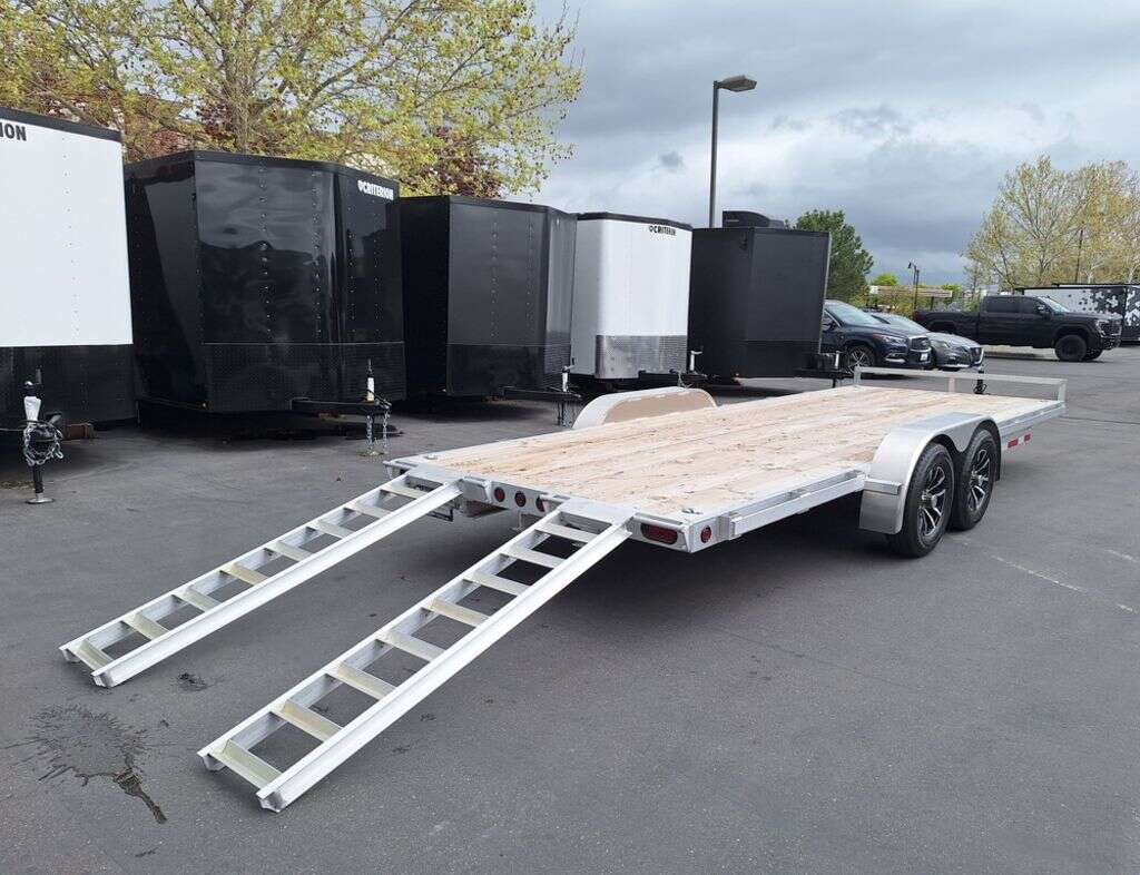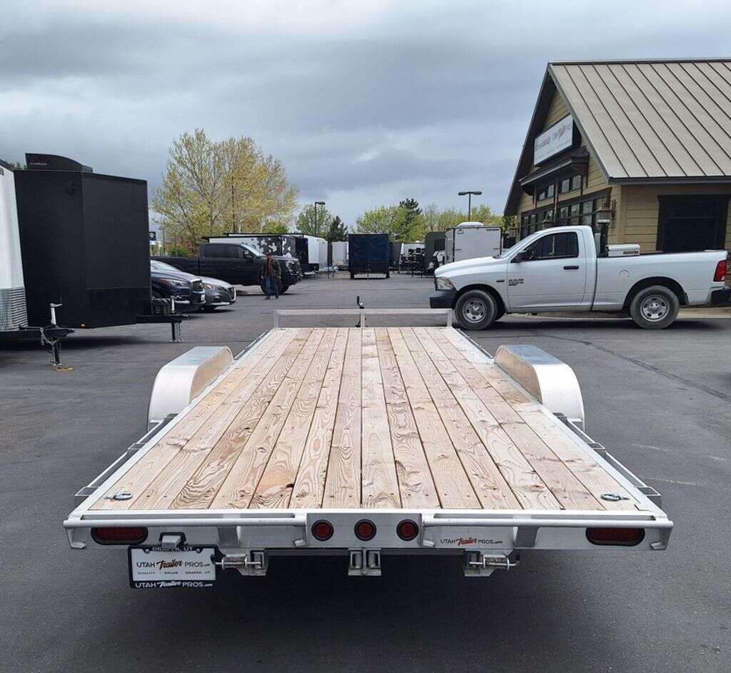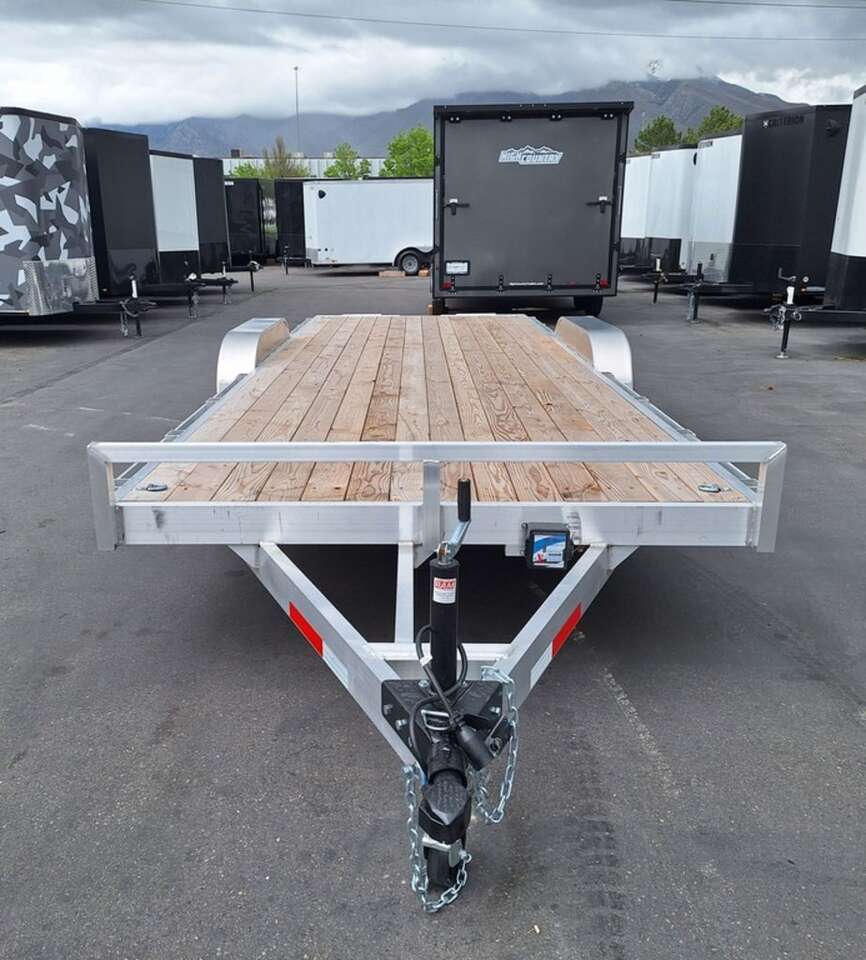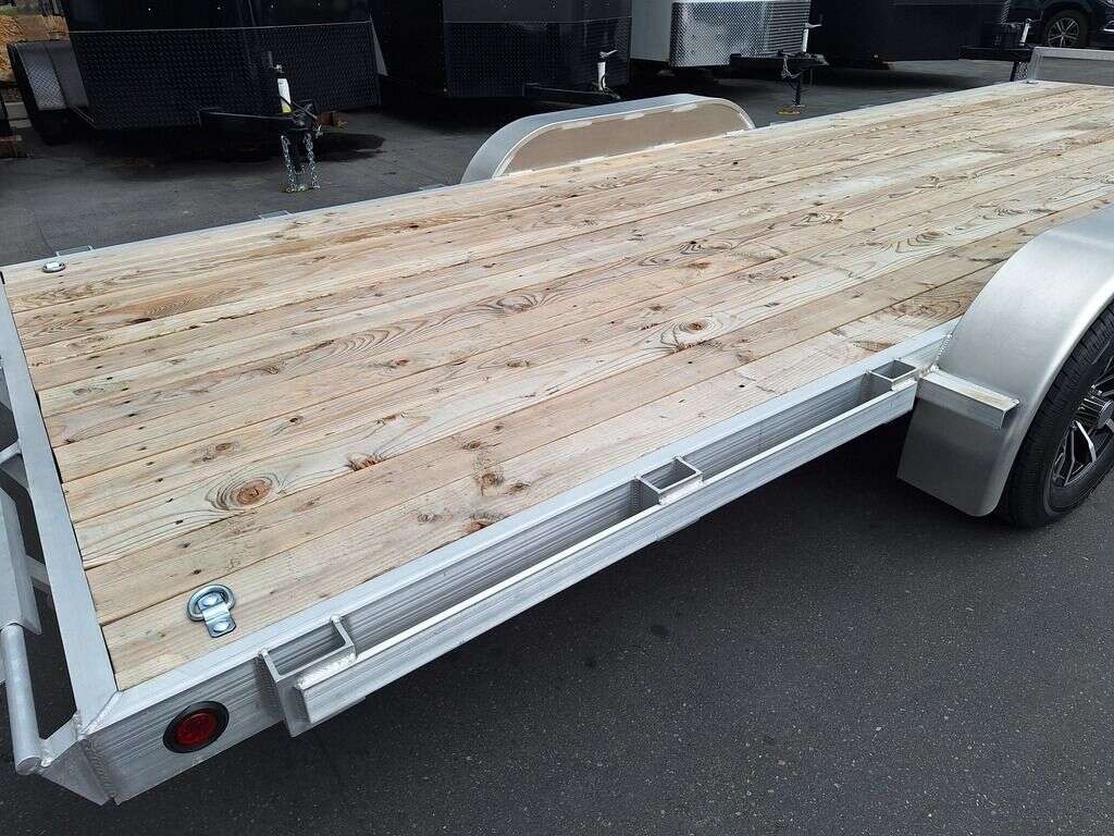 MAG WHEEL UPGRADE!!! NEW Baughman Aluminum 7x20 Car Hauler/ATV/UTV/Utility with Rear Ramps!! This is not your average trailer, this Premium Baughman comes with high strength aluminum welds, premium decking with recessed D rings for easy tie down, super light ramps with built in storage, plus an easy to use pin locking ramp!! Did you know this trailer is light enough for most people to simply hand lift off your trailer ball!!?? Super light and easy to move around with built in tongue jack wheel!!! Recessed Lights, Weather Treated Wood Deck, and More! Call or Text to come pick up this gorgeous trailer!! 2PL065206