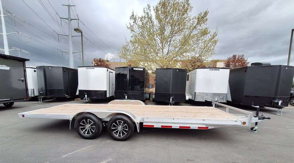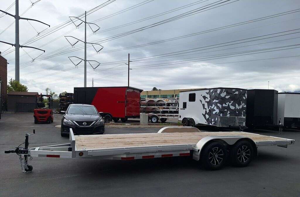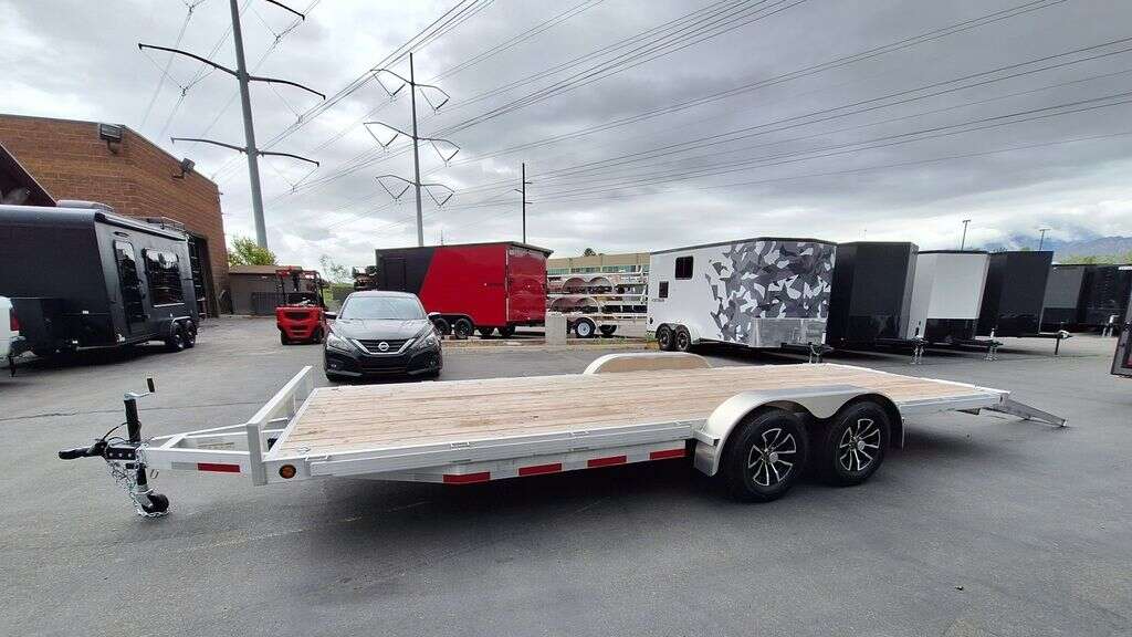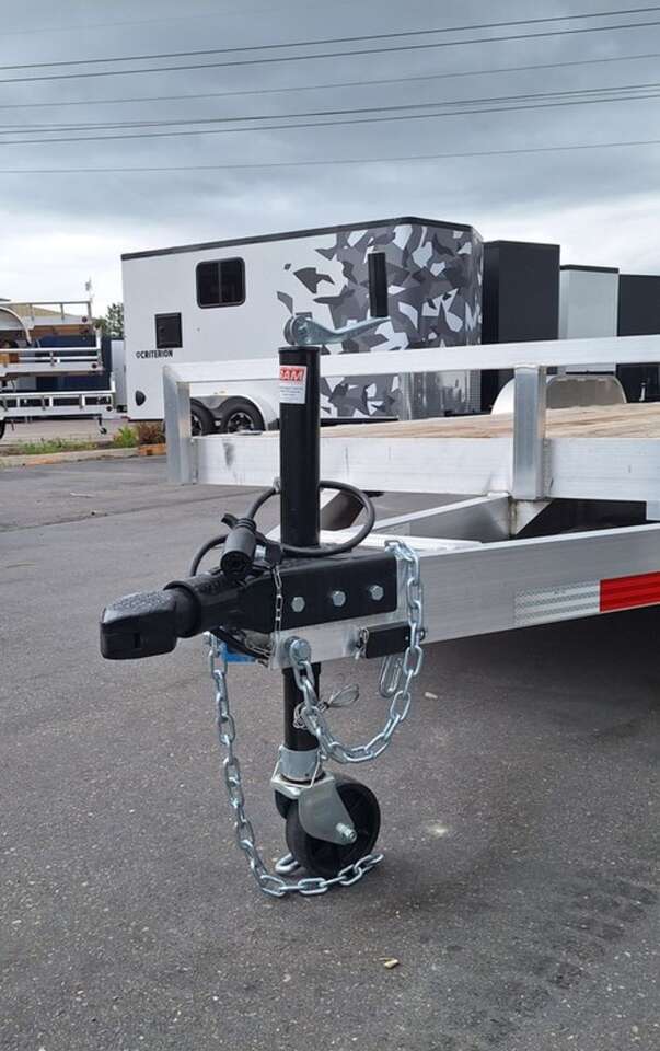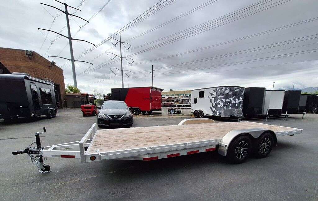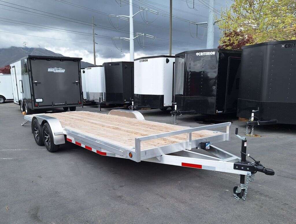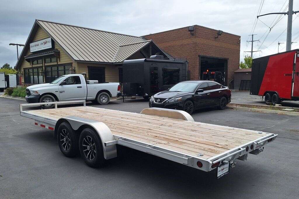 MAG WHEEL UPGRADE!!! NEW Baughman Aluminum 7x20 Car Hauler/ATV/UTV/Utility with Rear Ramps!! This is not your average trailer, this Premium Baughman comes with high strength aluminum welds, premium decking with recessed D rings for easy tie down, super light ramps with built in storage, plus an easy to use pin locking ramp!! Did you know this trailer is light enough for most people to simply hand lift off your trailer ball!!?? Super light and easy to move around with built in tongue jack wheel!!! Recessed Lights, Weather Treated Wood Deck, and More! Call or Text to come pick up this gorgeous trailer!! 2PL065206