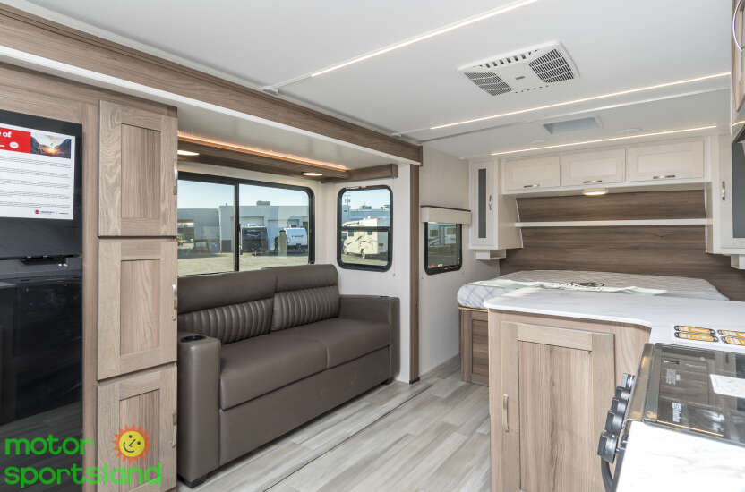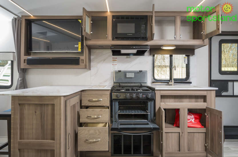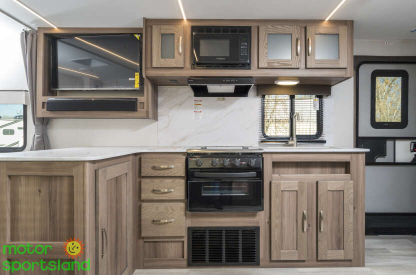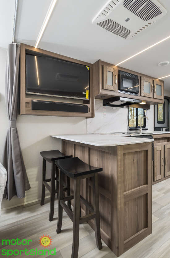 Unmatched Comfort: Relax in a spacious interior with premium furnishings, ensuring a cozy home-away-from-home for the whole family. Luxury at Every Turn: Enjoy high-end finishes, a fully equipped kitchen, and a stylish bathroom that rivals upscale hotels. Family-Friendly Design: With ample sleeping space and smart storage solutions, this Travel Trailer is ideal for family vacations or group getaways. Fuel Efficiency: Built with the innovative MPG technology, this RV ensures you save on fuel costs while exploring the open road. Modern Tech: Stay connected with cutting-edge entertainment systems and user-friendly controls for a seamless travel experience.