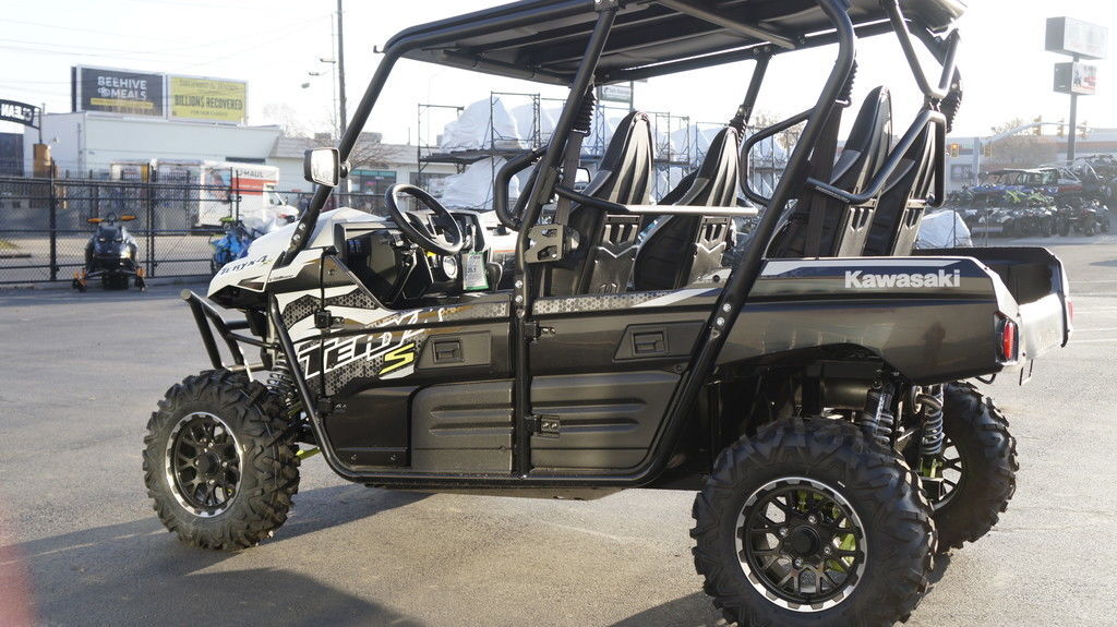 NO FREIGHT OR SETUPPRICE INCLUDES STREET KIT 2025 Kawasaki Teryx4™ S LE Eager for action, the 4-passenger Teryx4™ side x side lineup is built to tackle tough trails. With the perfect combination of rugged sport performance and capability, the Teryx4 is made to conquer the outdoors with the entire crew on board. Features may include: DURABILITY REAL STRENGTH From the reinforced steel frame to the protective front brush guards, Teryx4™ side x sides are built strong inside and out. POWER POWERFUL & RESPONSIVE 4-stroke, fuel-injected, 783cc engine works in unison with Continuously Variable Transmission (CVT) to produce smooth and consistent power over rugged terrain. PERFORMANCE FOX 2.0 LSC piggyback shocks Long-travel suspension (10.7-in front / 10.0-in rear) Wide tread width (55.0-in) Long high-clearance A-arms
