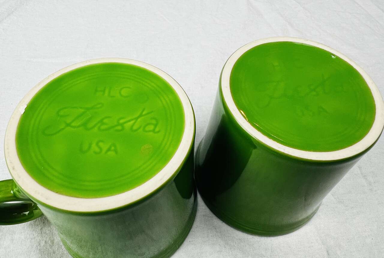 VenmoTwo vintage Fiesta Ware green mugs in very nice condition, no chips. Homer Laughlin Collection (HLC). Price is for two mugs.