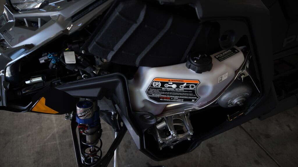 The shortened centralized cooling system on the RMK Matryx Slash platform features reduced dry weight and delivers improved cooling capability while reducing snow and ice build up. Reversible scratchers will help to keep your Patriot power running within spec.