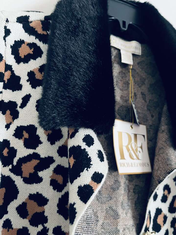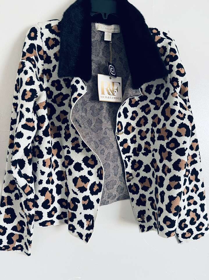 VenmoBeautiful cozy knit cardigan with glamorous black fur collar finished with gleaming gold-tone buttons. Condition: NEW WITH TAGS