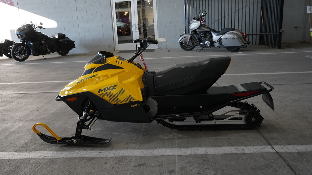 A full-featured snowmobile in a pint-sized offering, the MXZ 200 looks and rides just like Mom and Dad's sleds, but with appropriately sized power and features for young riders to adventure around the cottage or in the backyard.