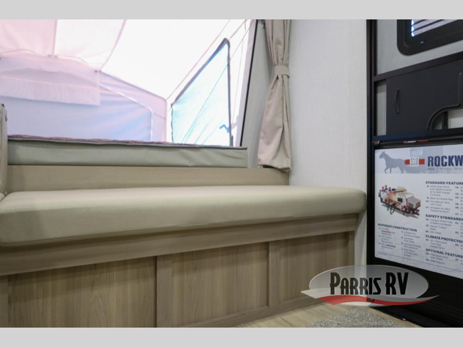 With any Rockwood Roo expandable travel trailer by Forest River you will enjoy smooth towing thanks to the torsion axle, Rubber-Ryde suspension, the easy lube axles and Nev-R-Adjust brakes. The key-Alike locks provide easy access in and out of your trailer, and each model includes prep for a Air 360+Omnidirectional antenna with WiFi for all your connection needs. Each model is constructed with a vacuum laminated one-piece roof and walls, an enclosed underbelly, and tinted framed windows for a more sleek look. You will enjoy many interior comforts, including hardwood cabinet doors and drawer fronts, night roller shades, a bunk/fan light combo with each bed, and much more!