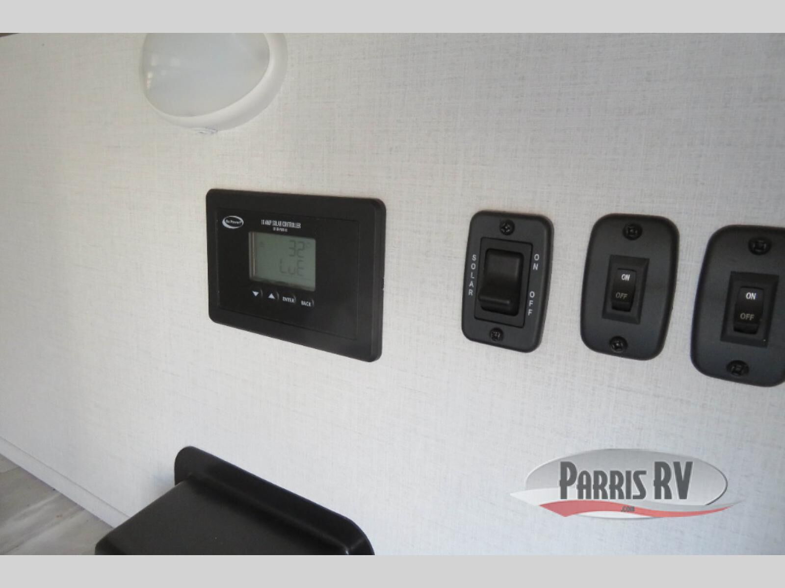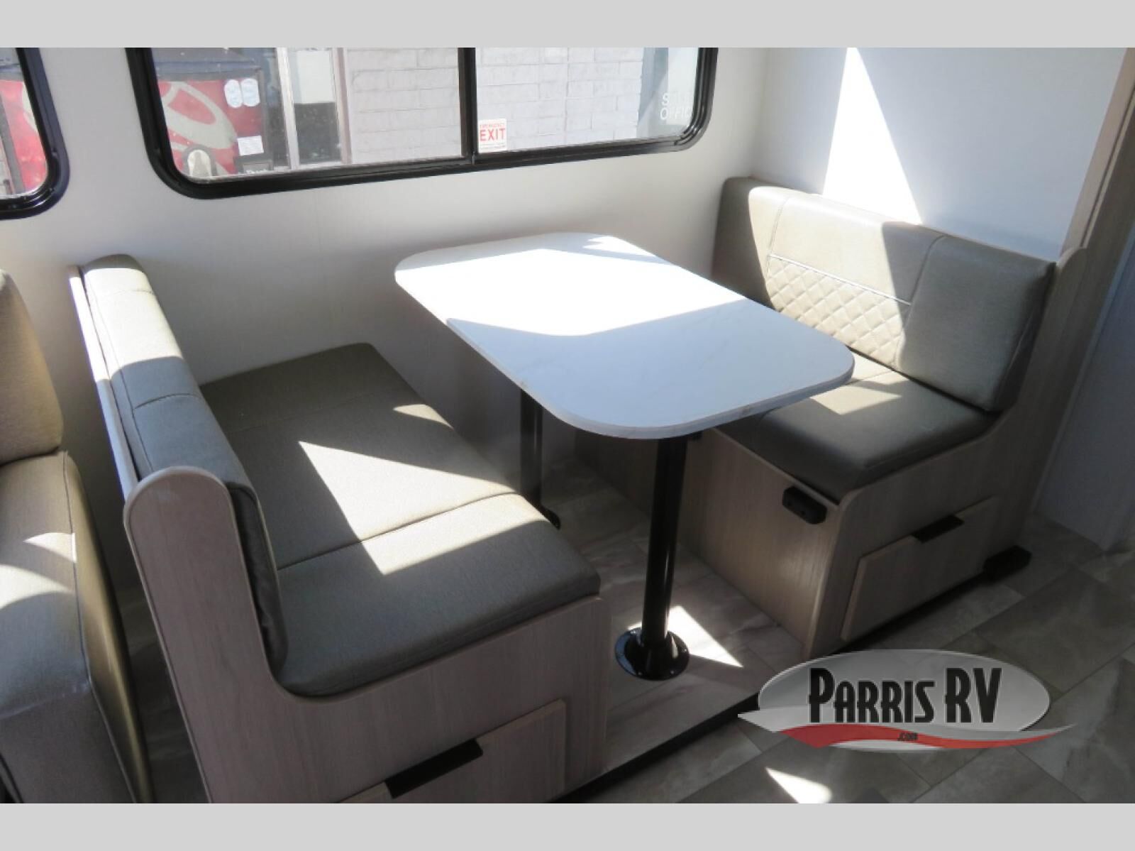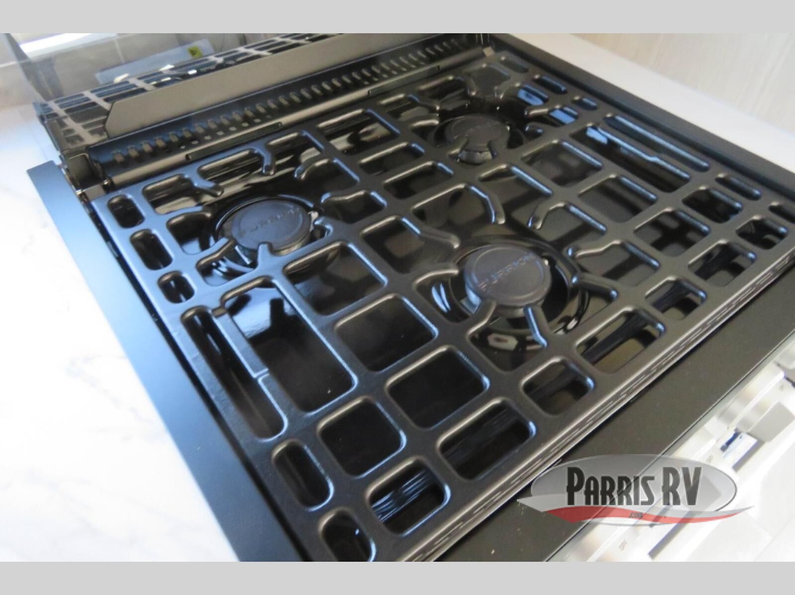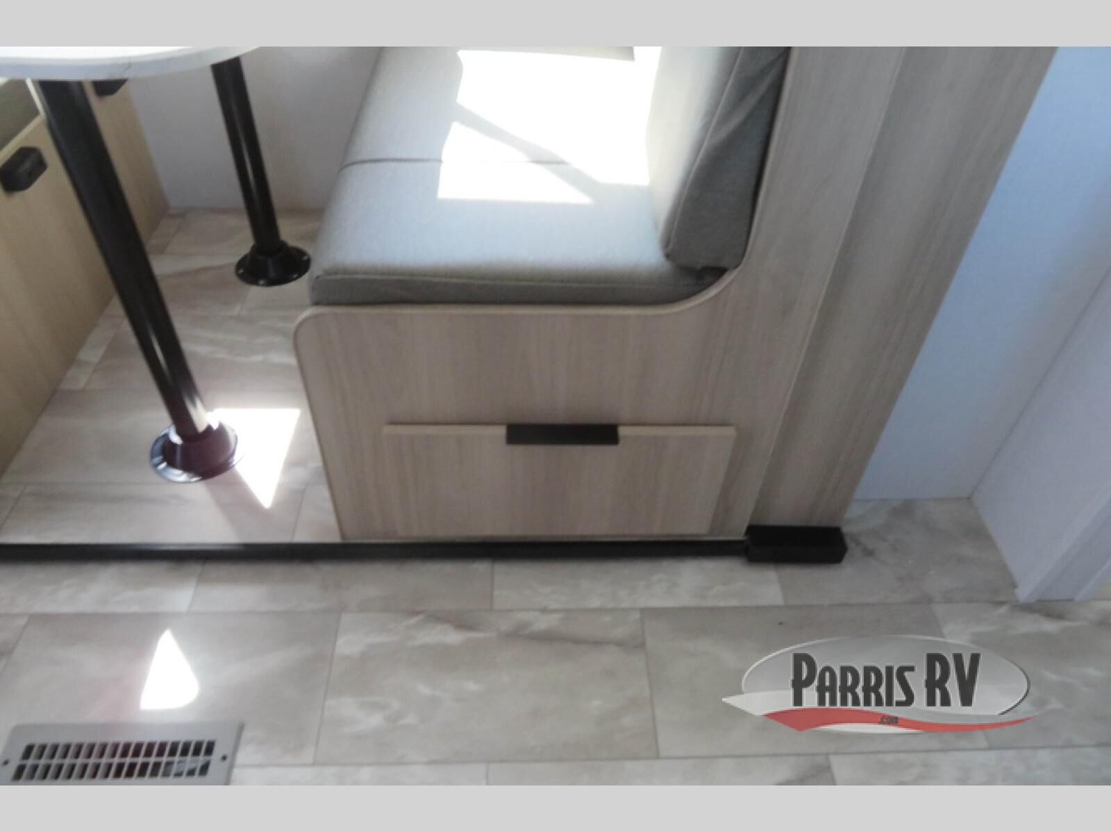 This travel trailer is ready to provide you with a home-like environment while you're at the campground. You can prepare meals each day on the two burner cooktop or in the microwave oven, and there is a 10 cu. ft. 12V refrigerator for perishables. Dine at the booth dinette or take your plate outdoors to sit under the 14' power awning with LED lights. There are also theater seats inside if you want to stay close to the fireplace with a good book instead. The full rear bath includes plenty of storage space, and the front private bedroom with a queen bed will feel just like home!