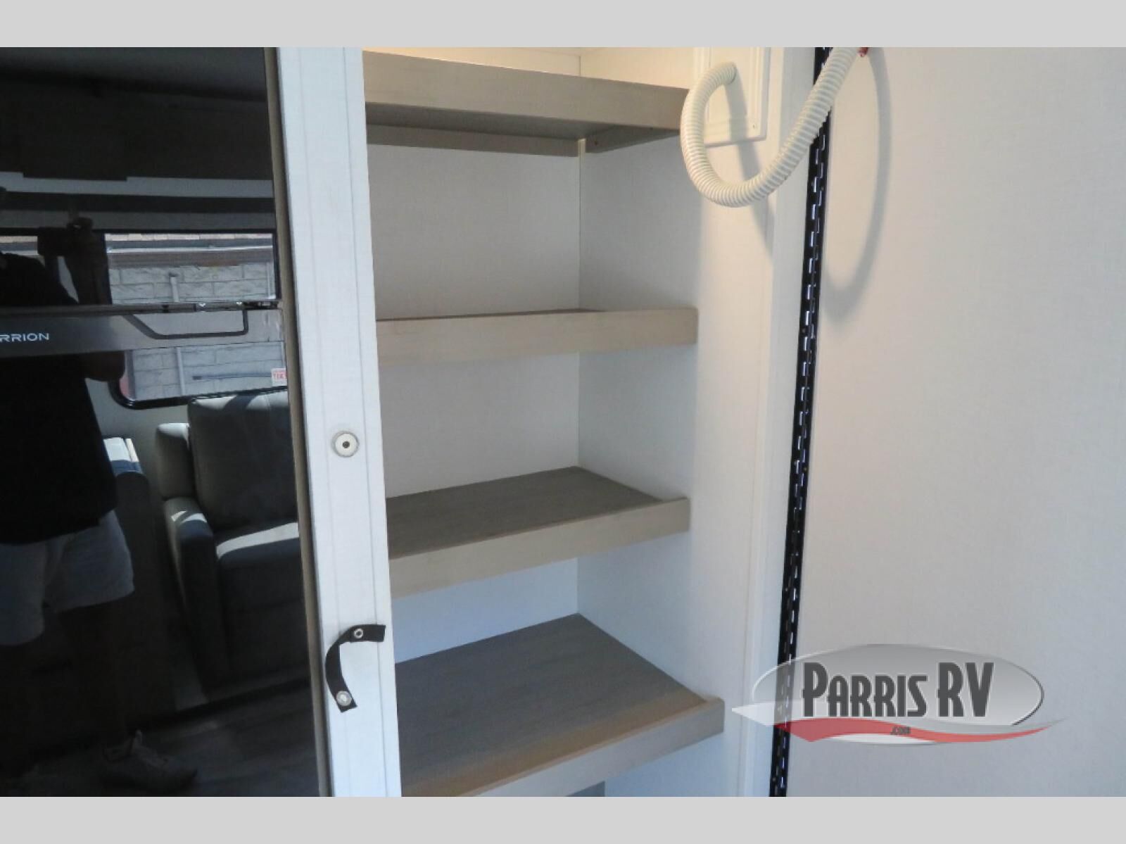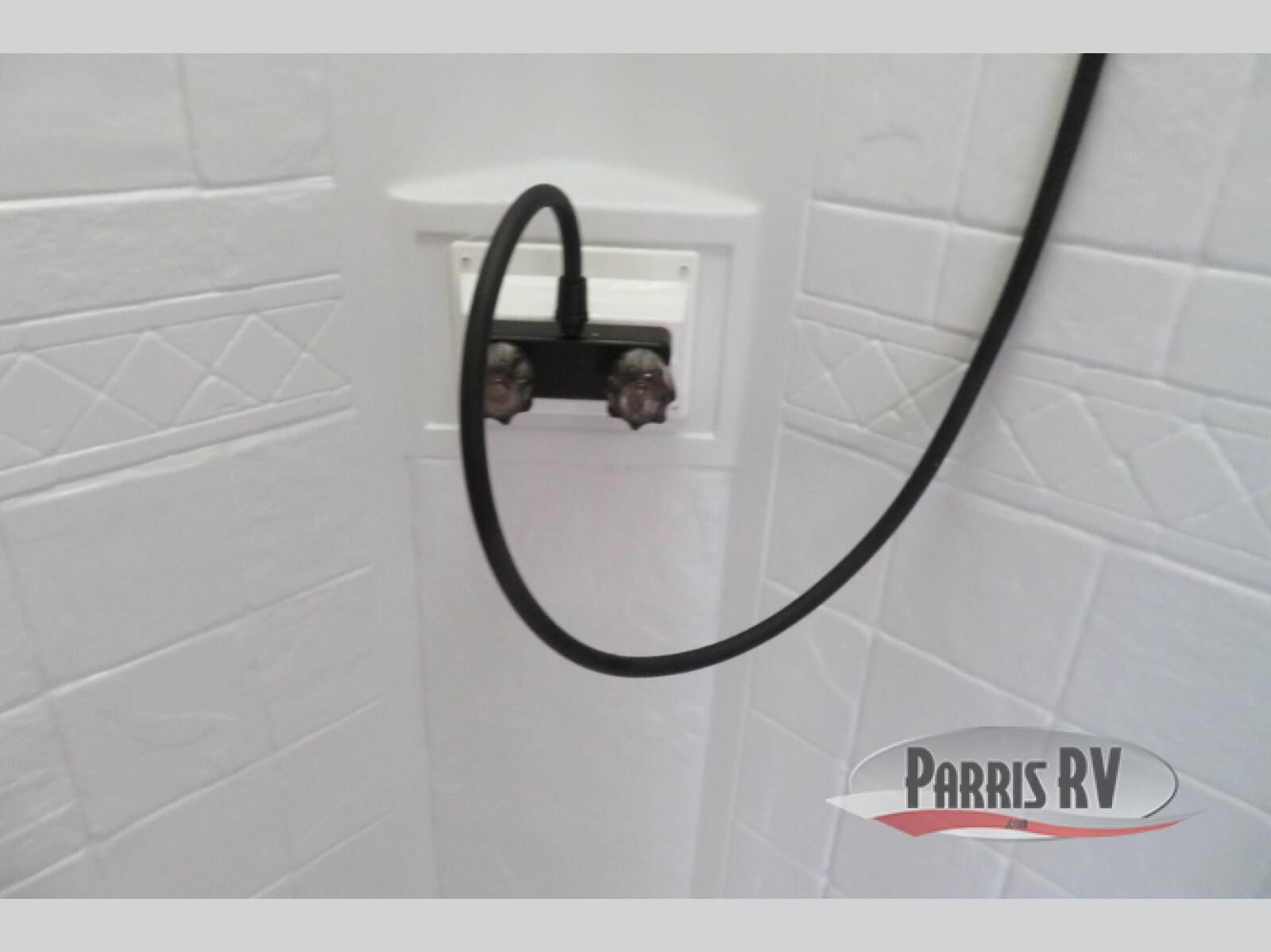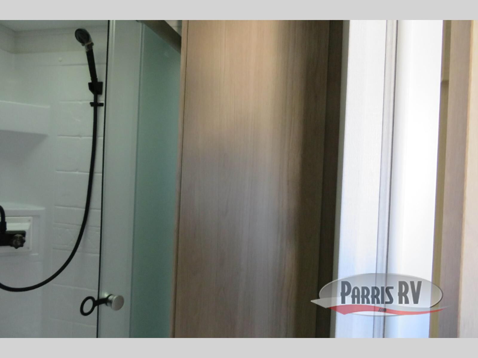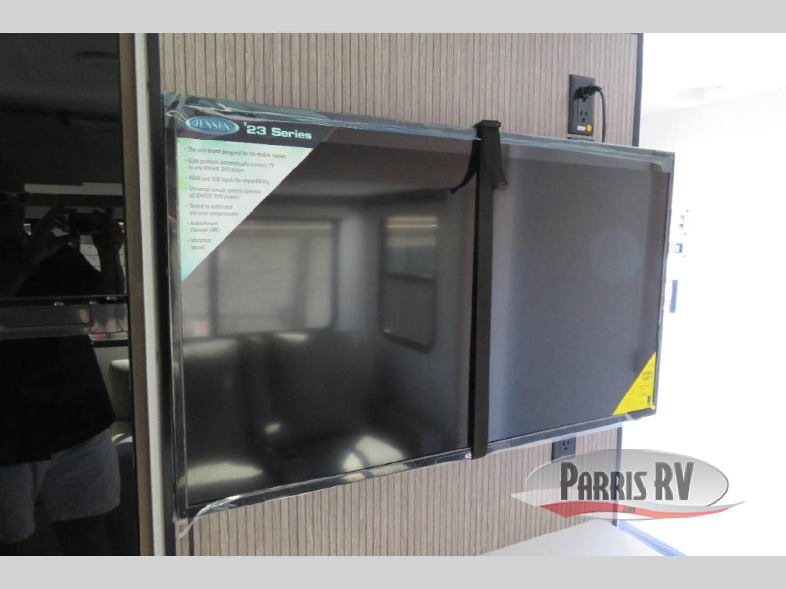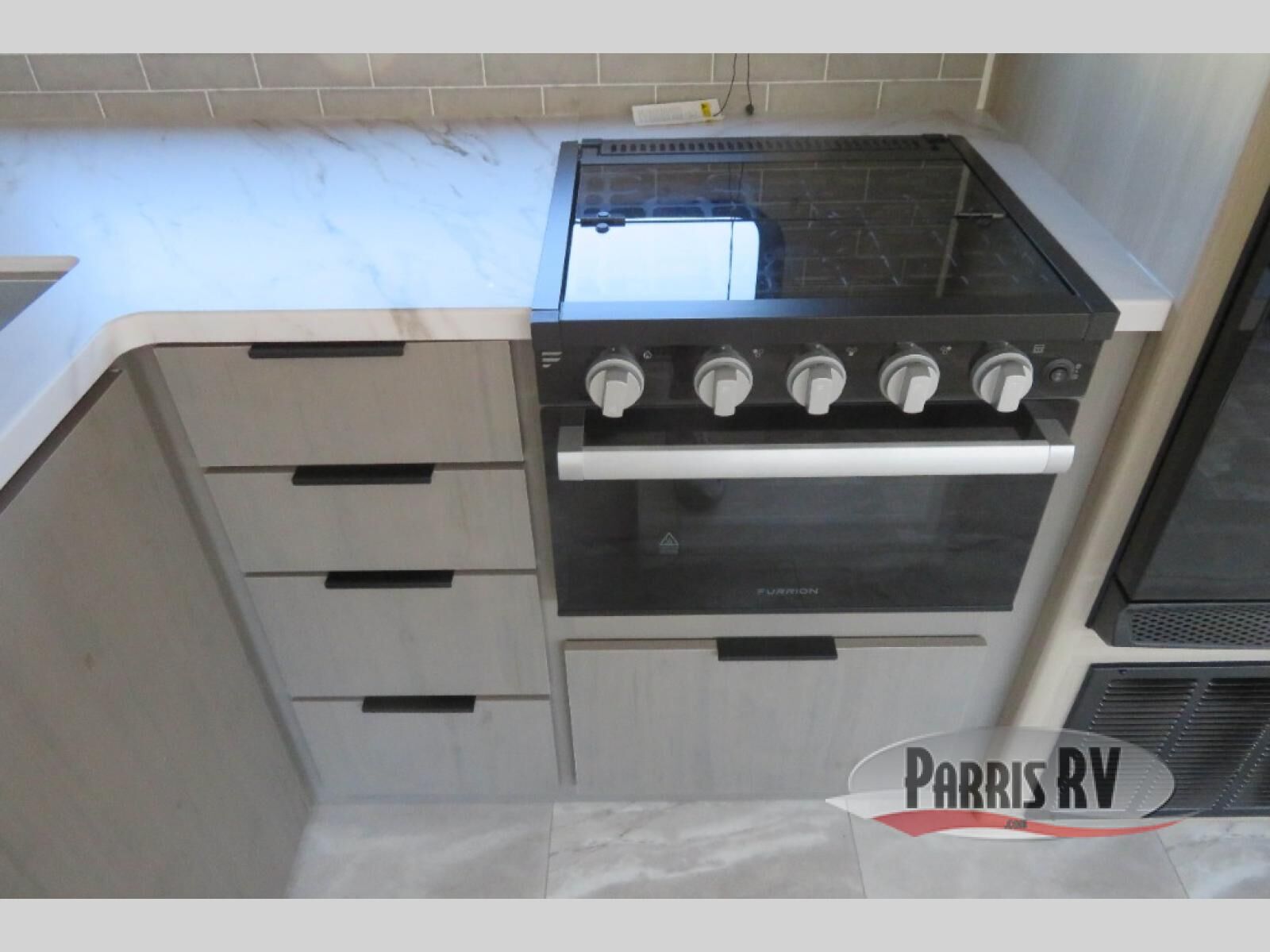 This travel trailer is ready to provide you with a home-like environment while you're at the campground. You can prepare meals each day on the two burner cooktop or in the microwave oven, and there is a 10 cu. ft. 12V refrigerator for perishables. Dine at the booth dinette or take your plate outdoors to sit under the 14' power awning with LED lights. There are also theater seats inside if you want to stay close to the fireplace with a good book instead. The full rear bath includes plenty of storage space, and the front private bedroom with a queen bed will feel just like home!