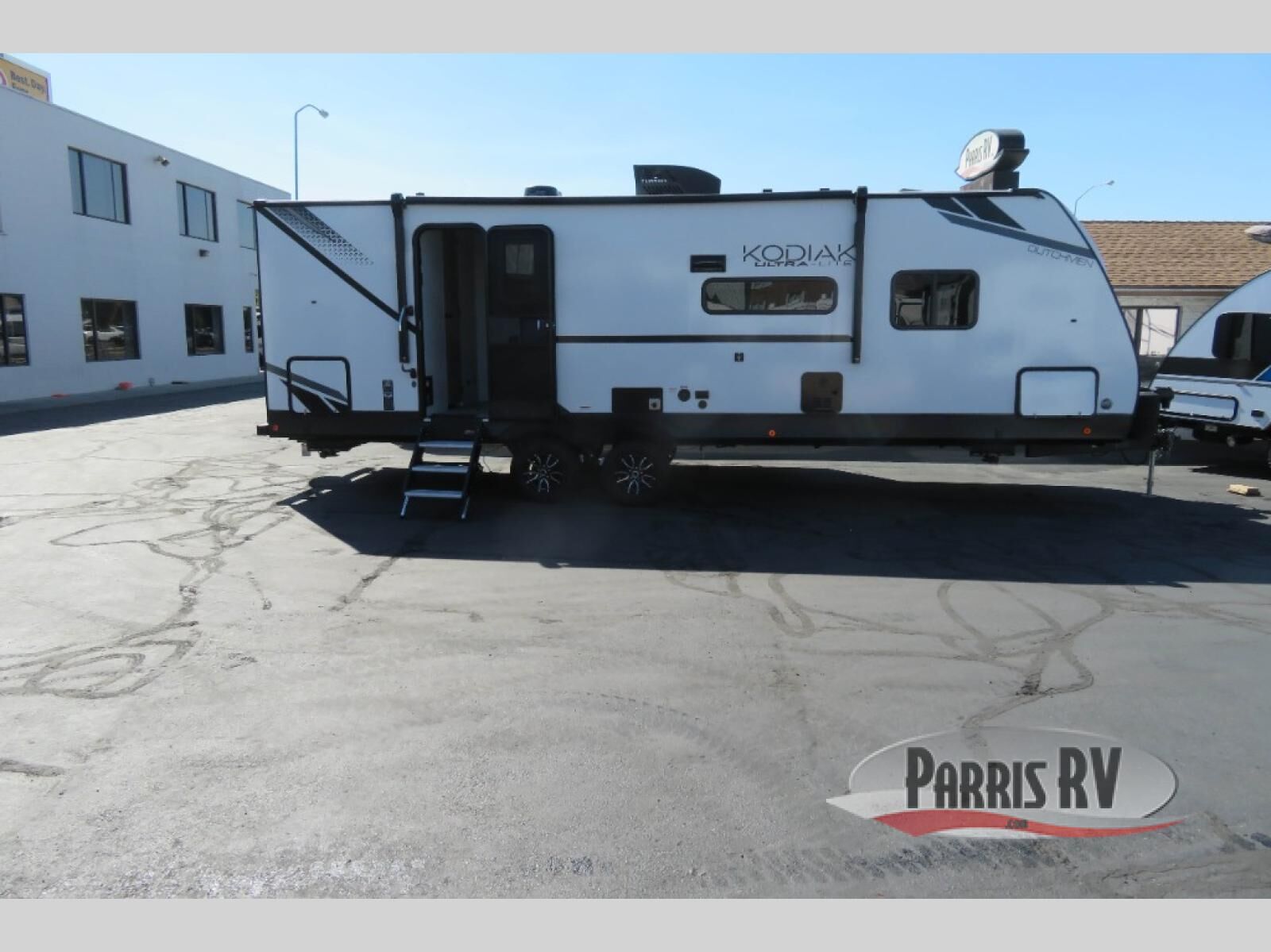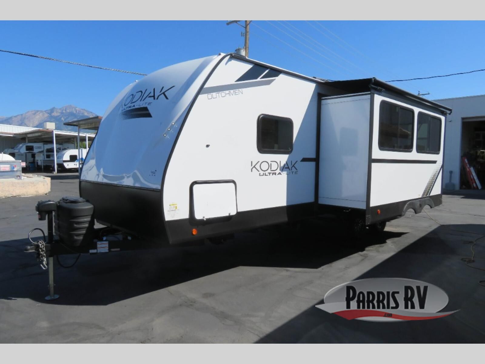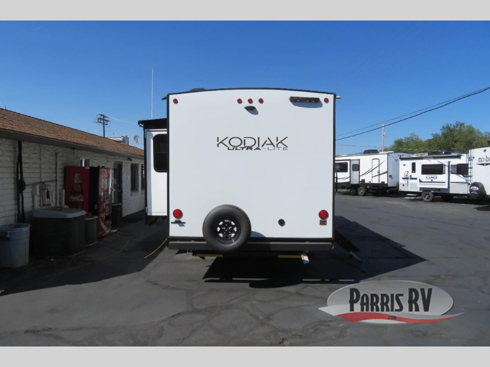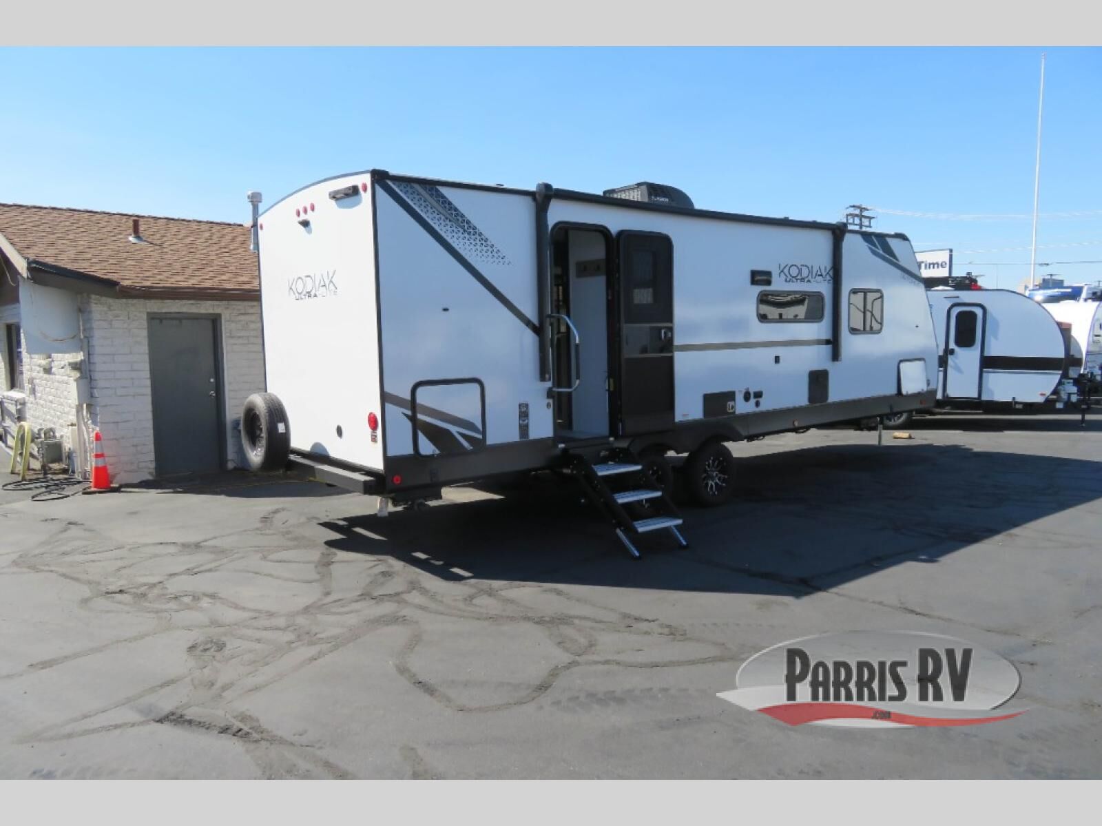 With any Kodiak SE travel trailer by Dutchmen RV, you can experience comfort while camping at a moment's notice. Each trailer includes features such as power front and rear stabilizer jacks and a power tongue jack which makes set-up easy, and a power awning with LED light for convenient outdoor living. Each model features HyperDeck flooring, and carpet free slides making them easy to clean. From the floor structure which includes a fully enclosed underbelly to the laminated walls with aluminum frame with block foam insulation, any Kodiak SE is built lightweight and ready for adventure!