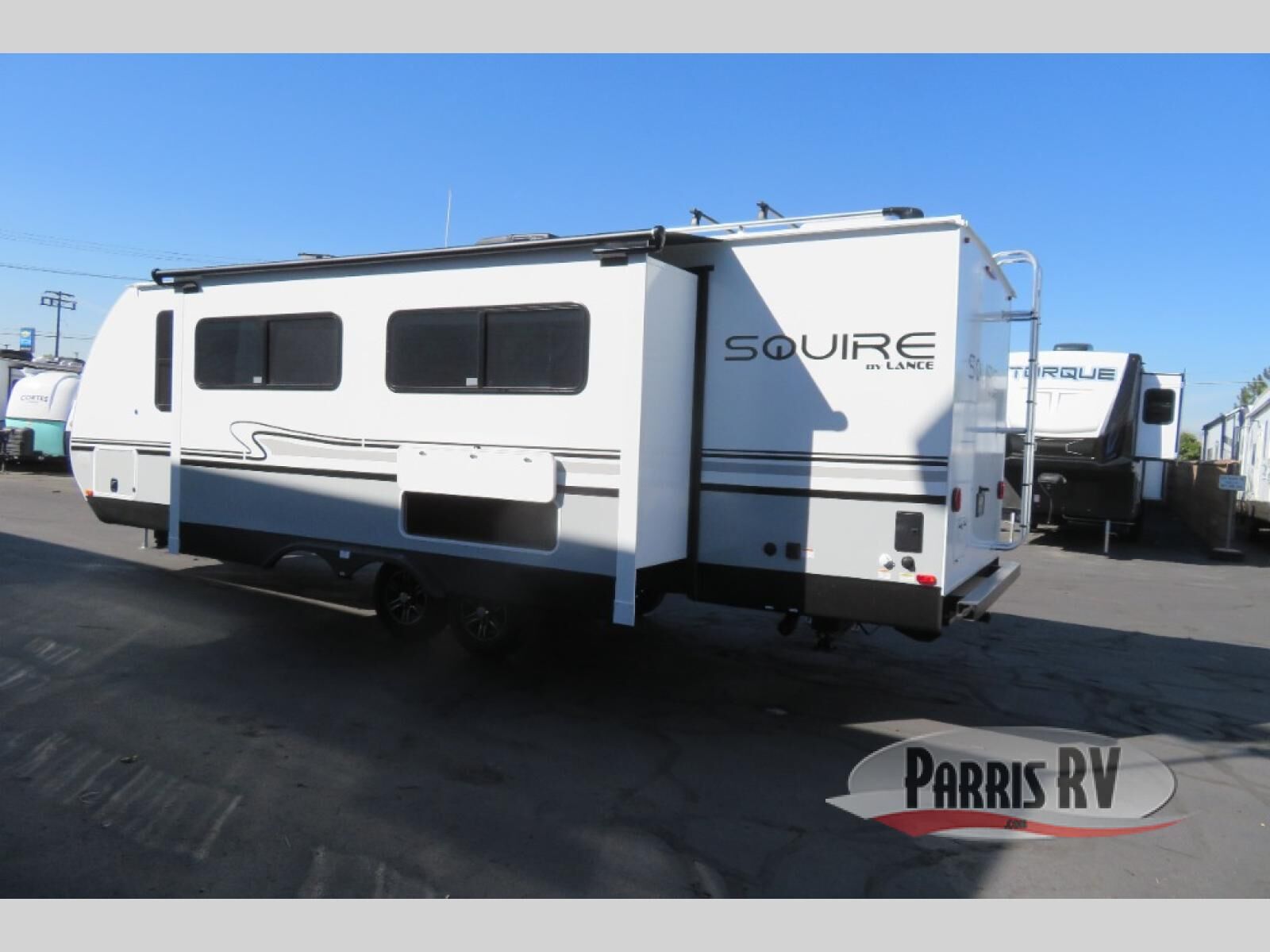 With any Squire travel trailer by Lance, you can count on high quality at an exceptional value! Each unit is built with a one-piece fully laminated roof and dual Azdel walls to extend the life of your RV. There are Slam Latch pass-through compartment doors, an exterior wash station, aluminum wheels with Goodyear radial tires, plus a manual tongue jack and manual stabilizer jacks to keep your travel trailer secure. The 12V/USB charging port(s) will keep your electronics charged up and the JBL AM/FM stereo will let you listen to your favorite tunes at the campground. Each travel trailer also includes decorative window valance boxes, solid surface countertops, hardwood framed cabinet doors, and decorative backsplash to name a few interior comforts. And don't forget to take a look at the available options to customize your Squire to best fit your needs!