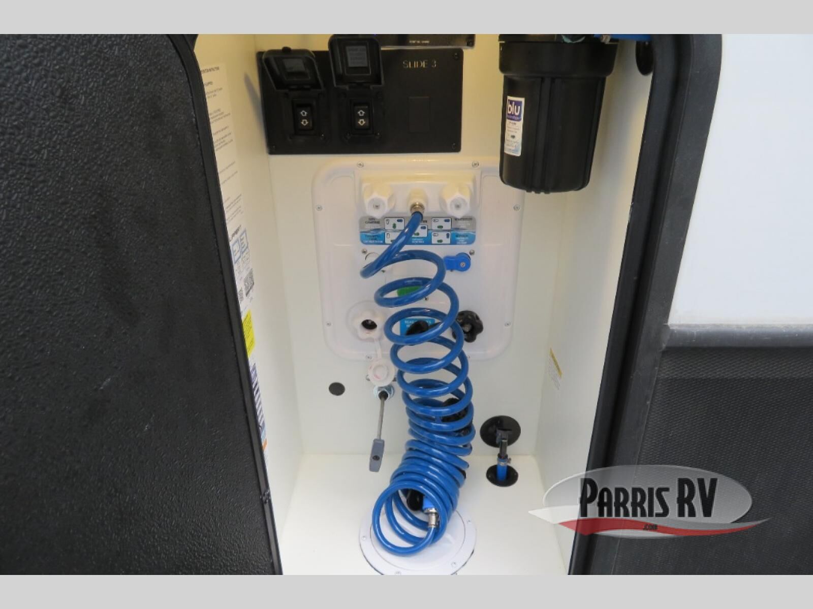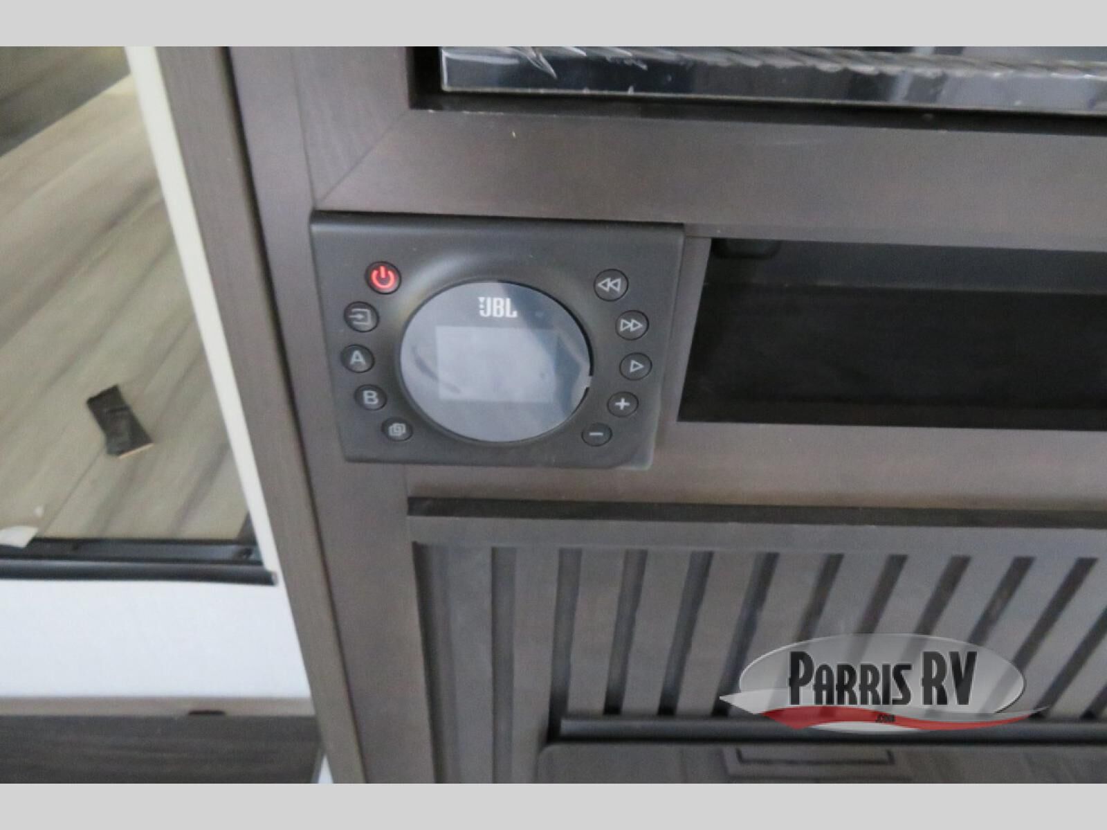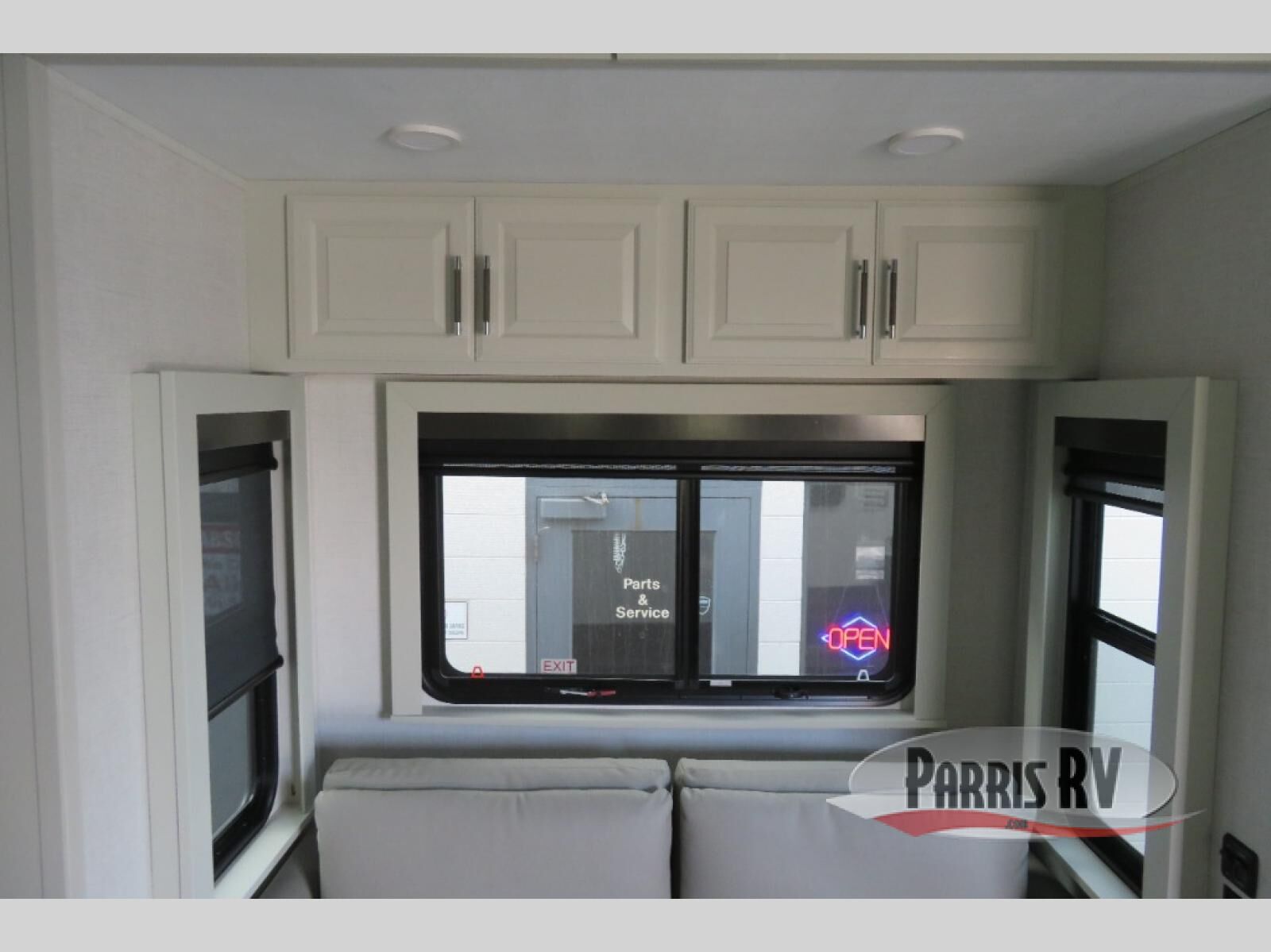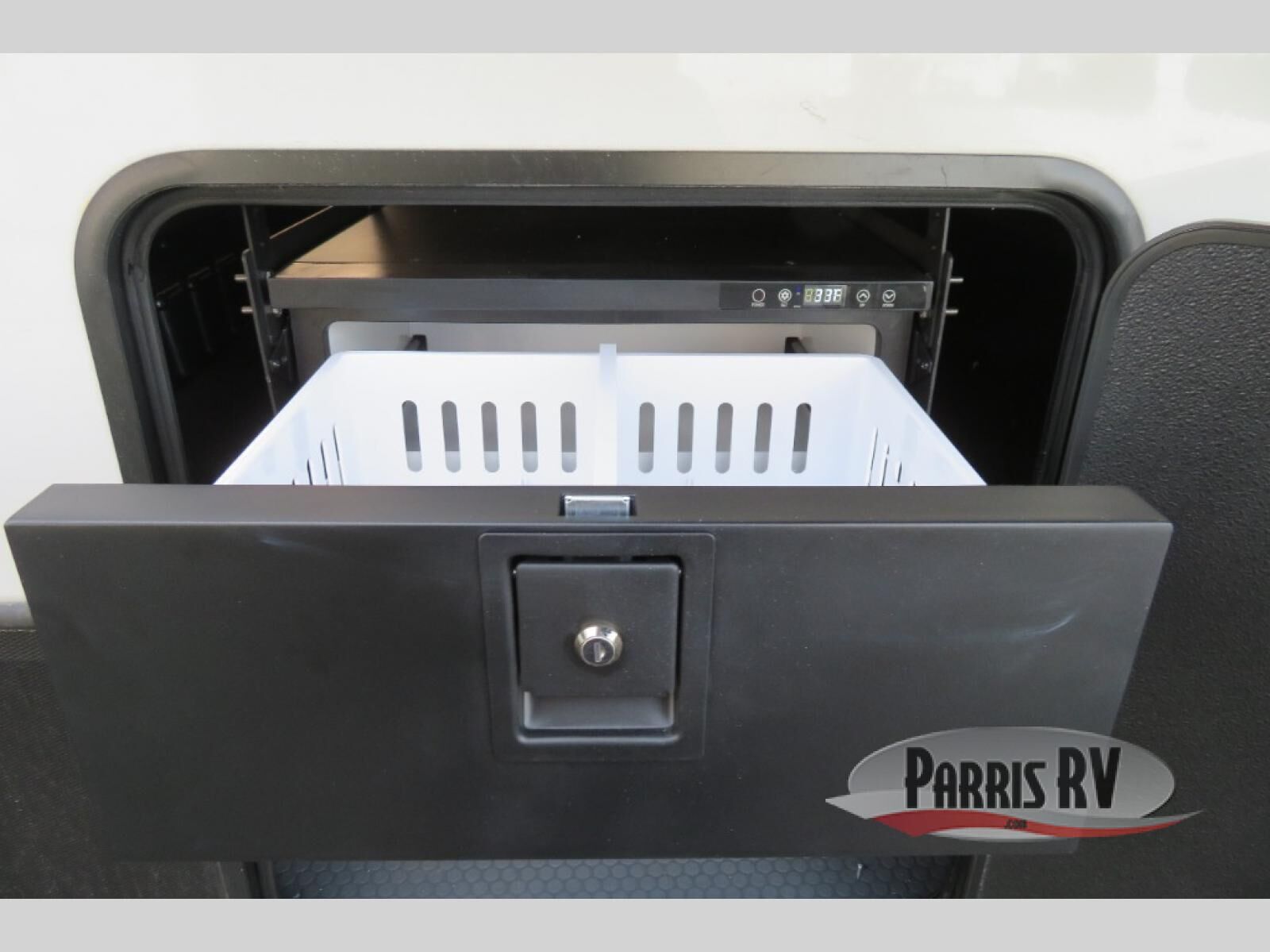 This fifth wheel is decked out in luxuries! The full rear bathroom has a walk-in shower to freshen up in each morning, a dual sink vanity for two to get ready at once, plus washer and dryer prep. You will enjoy a good night's rest on the king bed slide inside the private bedroom and others can sleep on the opposing tri-fold sofa sleeper slides in the living room. There is also a theater seating here, along with a fireplace and 50" LED TV for movie nights. The front kitchen is where it's really at in this fifth wheel; ample counter space, a bar top with stools, pull-out drawers, plus a pantry and closet for even more storage!
