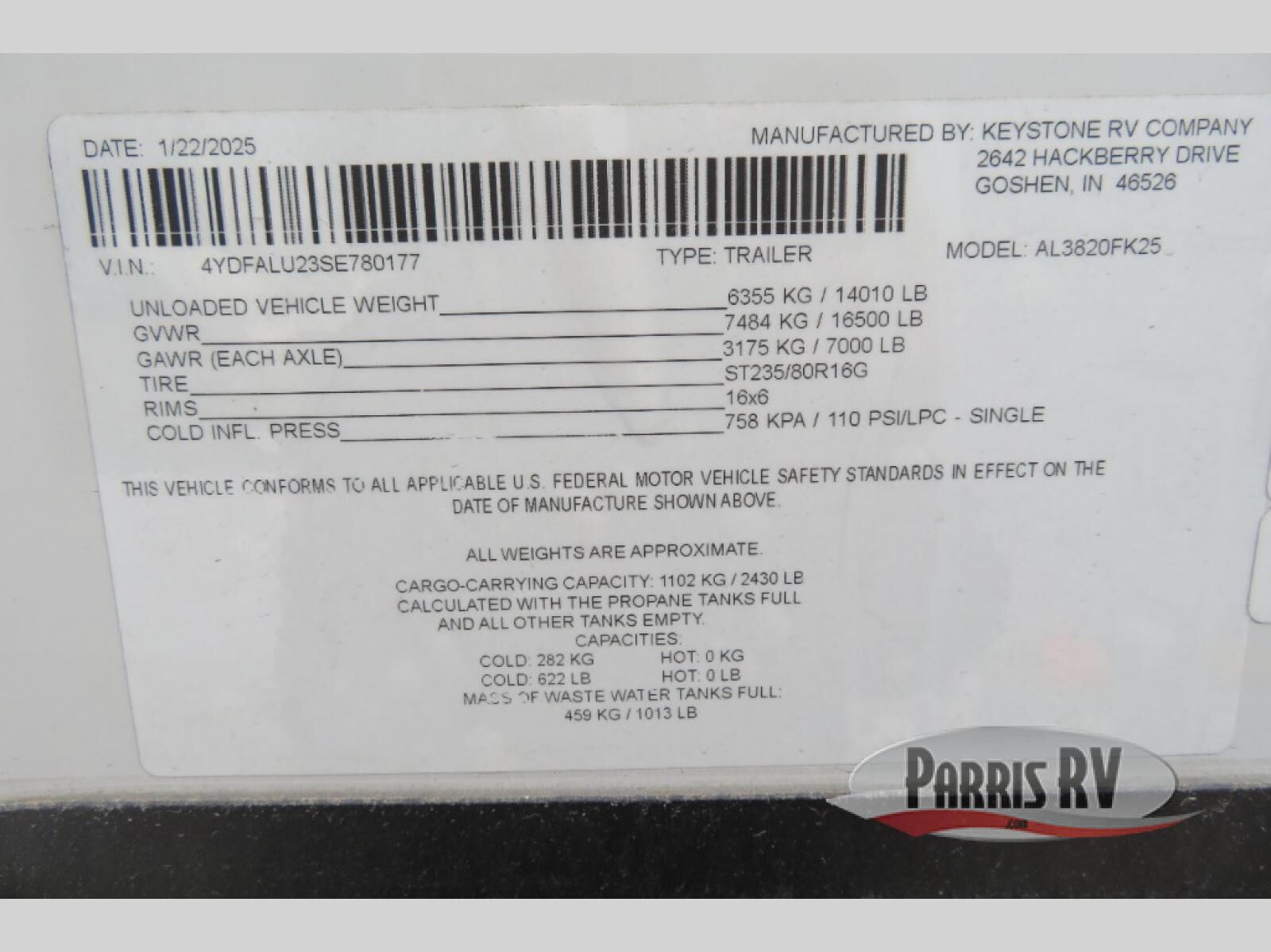 Keystone RV Alpine fifth wheel 3820FK highlights: