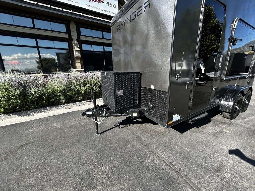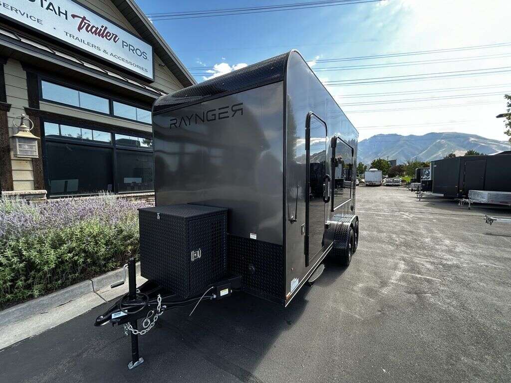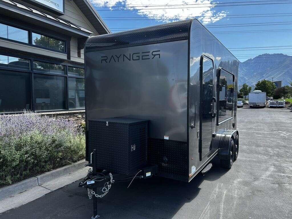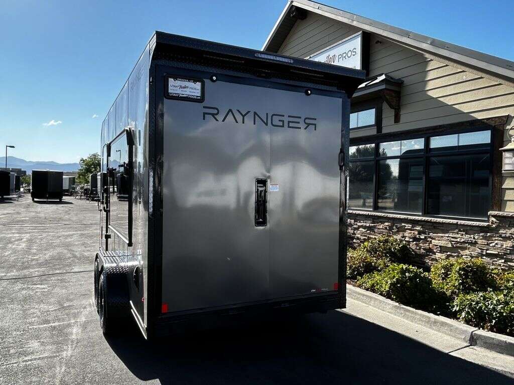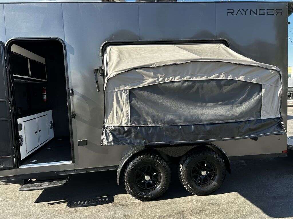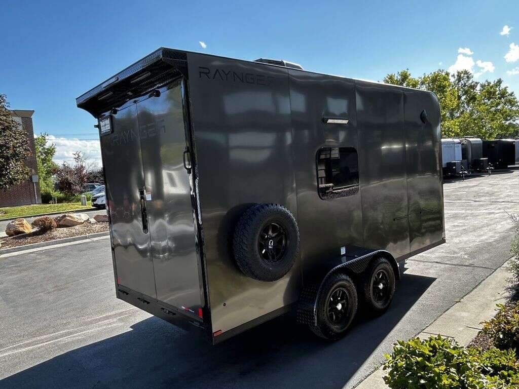 LIMITED TIME $214 A MONTH WITH ZERO DOWN WITH OUR SPECIAL LOCAL CREDIT UNION PARTNER!!! NO PRE-PAYMENT PENALTIES!!! NEW 2025 MODEL!!! FITS ANY STOCK SIDE BY SIDE UTV!!! RAYNGER PREMIUM OFF ROAD TOY HAULER CAMPER!!! 18 INCH GROUND CLEARANCE!!! OFF ROAD TIRES!!! FULLY INSULATED!!! HEATING AND A/C!!! WET SOUND STEREO!!! FOLD OUT/POP OUT TENT WITH MATTRESS!!! 84 Inch Rear Entry Height/87 INCH INTERIOR HEIGHT!!! 77 Inch Rear Entry Width!!! Aluminum Ventilated Locking Generator Box!!! UPGRADED TORSION AXLES!!! 14.2 Foot Long Garage Space!!! And Much MUCH MORE!!! Check out our Specs!!! Also available in 18 foot models. 18 Foot Models can have 3 Fold Out Beds/Pop Out Tents. 16 Foot and 18 Foot Models will fit ANY stock 4 Seater Side by Side • 6” I Beam Frame• Flat Top Design• Flat Front Design• Wall Posts 16” on Center• Cross Members 16” on Center• Roof Bows 16” on Center• Rust Inhibiting Z-Tech Protection on Chassis• Ameraguard on Tongue• Ameraguard on Rear Bumper• Ameraguard Around All Door Openings and Stepwell• Ameraguard Around Edges of Ramp Door• 3500 LB Spring Axles• 2-5/16” Coupler• One-Piece Aluminum Roof• ST235/75R15 Aluminum Wheels with Chrome Center Caps• 2000# Ramp Door with Eberhard Latch• 30” Tempered Glass RV Door with Screen Door• .030 Exterior Metal with Screwless Sides• 24” Black Stoneguard• 3” Black Bottom Trim• Sand Pad• Black Door Hold• 2.7mm Charcoal Textured Vinyl Ceiling • 9mm Charcoal Textured Vinyl Walls• 3/4” Engineered Wood Floor with Rubber Coin Overlay• (6) 1200 LB Floor D rings Installed with Backer Plates• LED Clearance Lights and Tail Lights• LED Back-up Lights• No Show Wheel Box• Spoiler with Toggle Switch• RV Step• 7’ Interior• (2) 17” Chrome Base Lights with Switch• (1) Black 17” Spot Light with Switch• (1) 30 Amp Panel with Marine Plug• A/C Unit with Heat Strip• (3) Interior Recepts• (1) Exterior Recept• 12V Battery and Charge Line• Prep for Backup Camera• Wet Sounds System• (3) Blue Interior Cabinet Lights• (1) 6’ Section of Flex Lights• Black ATP Rear Header and Hoop• Black ATP Fenders• Insulated Walls & Ceiling• Base Cabinets• Overhead Cabinets with Netting Over Compartments• Pop Out Tent• Black ATP Storage/Generator Box Mounted On Tongue 2SW092069