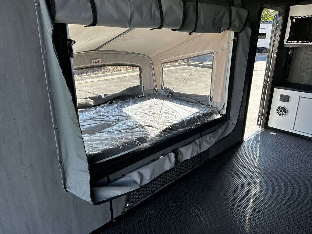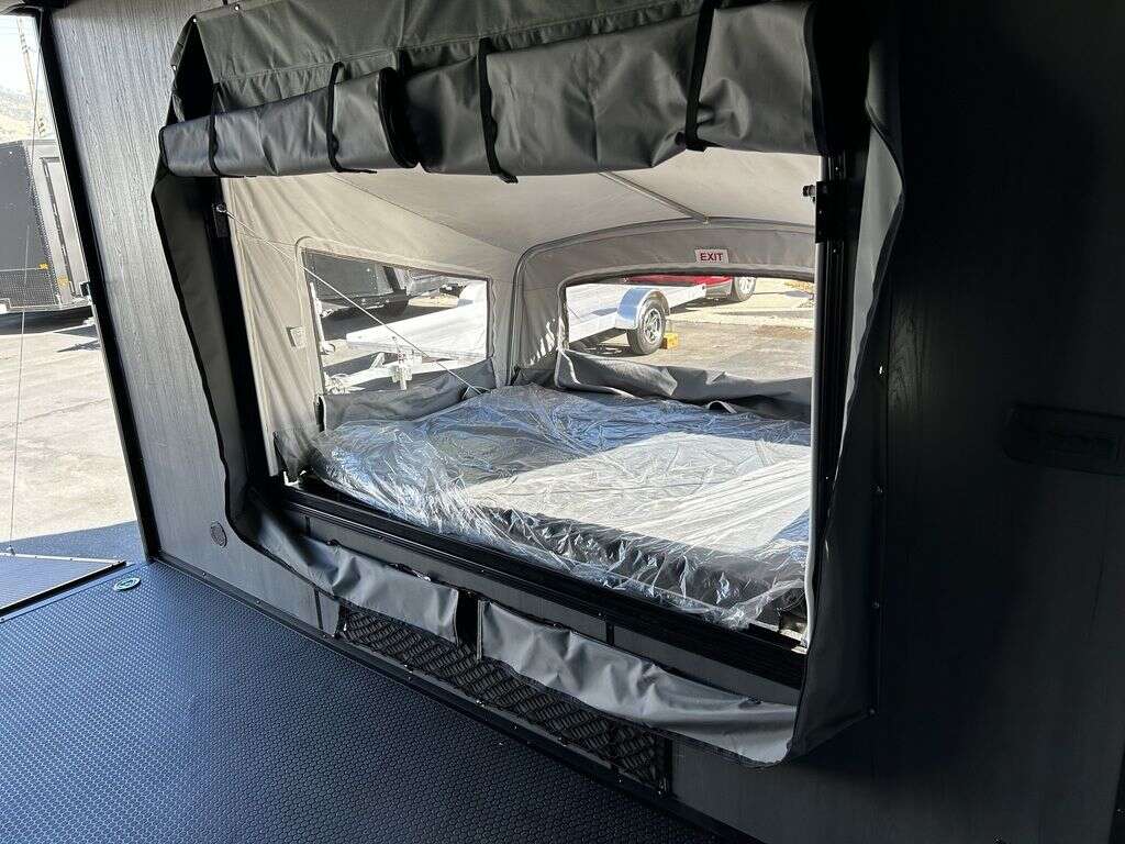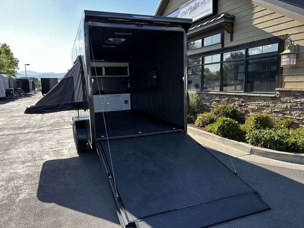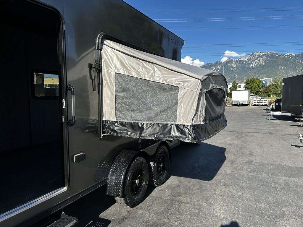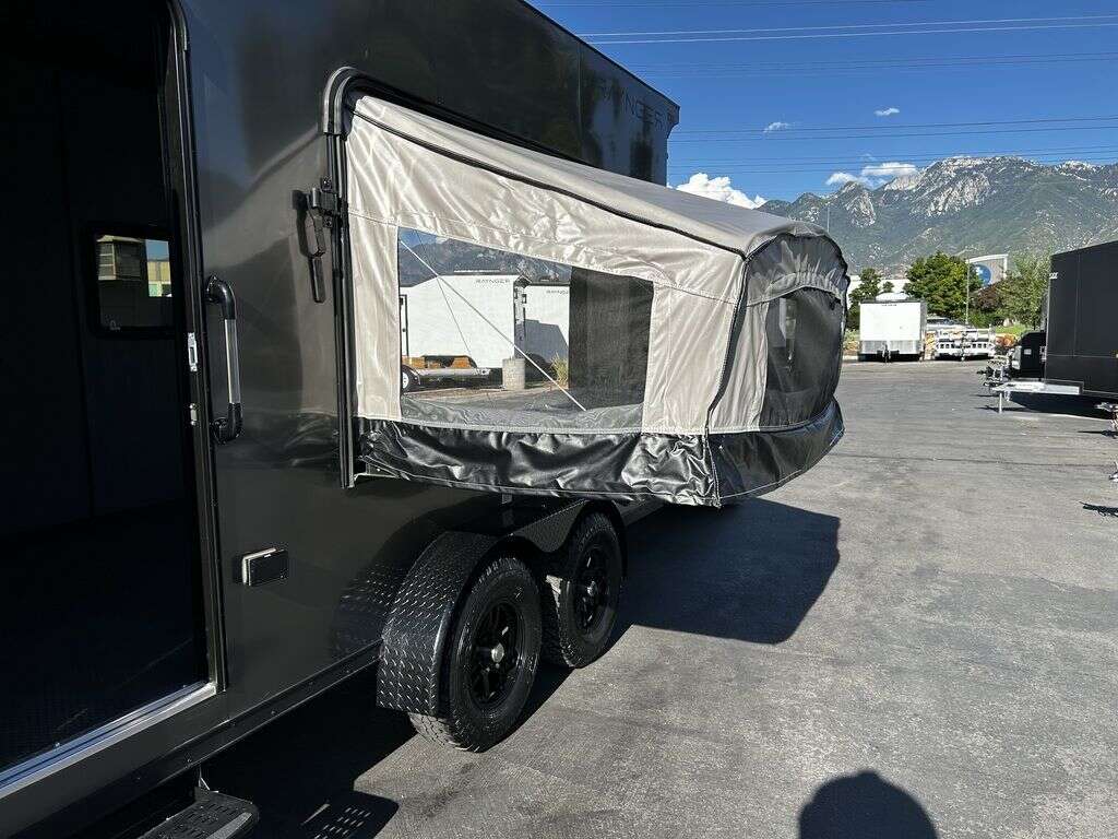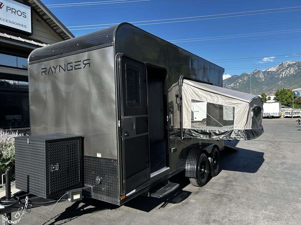 LIMITED TIME $214 A MONTH WITH ZERO DOWN WITH OUR SPECIAL LOCAL CREDIT UNION PARTNER!!! NO PRE-PAYMENT PENALTIES!!! NEW 2025 MODEL!!! FITS ANY STOCK SIDE BY SIDE UTV!!! RAYNGER PREMIUM OFF ROAD TOY HAULER CAMPER!!! 18 INCH GROUND CLEARANCE!!! OFF ROAD TIRES!!! FULLY INSULATED!!! HEATING AND A/C!!! WET SOUND STEREO!!! FOLD OUT/POP OUT TENT WITH MATTRESS!!! 84 Inch Rear Entry Height/87 INCH INTERIOR HEIGHT!!! 77 Inch Rear Entry Width!!! Aluminum Ventilated Locking Generator Box!!! UPGRADED TORSION AXLES!!! 14.2 Foot Long Garage Space!!! And Much MUCH MORE!!! Check out our Specs!!! Also available in 18 foot models. 18 Foot Models can have 3 Fold Out Beds/Pop Out Tents. 16 Foot and 18 Foot Models will fit ANY stock 4 Seater Side by Side • 6” I Beam Frame• Flat Top Design• Flat Front Design• Wall Posts 16” on Center• Cross Members 16” on Center• Roof Bows 16” on Center• Rust Inhibiting Z-Tech Protection on Chassis• Ameraguard on Tongue• Ameraguard on Rear Bumper• Ameraguard Around All Door Openings and Stepwell• Ameraguard Around Edges of Ramp Door• 3500 LB Spring Axles• 2-5/16” Coupler• One-Piece Aluminum Roof• ST235/75R15 Aluminum Wheels with Chrome Center Caps• 2000# Ramp Door with Eberhard Latch• 30” Tempered Glass RV Door with Screen Door• .030 Exterior Metal with Screwless Sides• 24” Black Stoneguard• 3” Black Bottom Trim• Sand Pad• Black Door Hold• 2.7mm Charcoal Textured Vinyl Ceiling • 9mm Charcoal Textured Vinyl Walls• 3/4” Engineered Wood Floor with Rubber Coin Overlay• (6) 1200 LB Floor D rings Installed with Backer Plates• LED Clearance Lights and Tail Lights• LED Back-up Lights• No Show Wheel Box• Spoiler with Toggle Switch• RV Step• 7’ Interior• (2) 17” Chrome Base Lights with Switch• (1) Black 17” Spot Light with Switch• (1) 30 Amp Panel with Marine Plug• A/C Unit with Heat Strip• (3) Interior Recepts• (1) Exterior Recept• 12V Battery and Charge Line• Prep for Backup Camera• Wet Sounds System• (3) Blue Interior Cabinet Lights• (1) 6’ Section of Flex Lights• Black ATP Rear Header and Hoop• Black ATP Fenders• Insulated Walls & Ceiling• Base Cabinets• Overhead Cabinets with Netting Over Compartments• Pop Out Tent• Black ATP Storage/Generator Box Mounted On Tongue 2SW092069