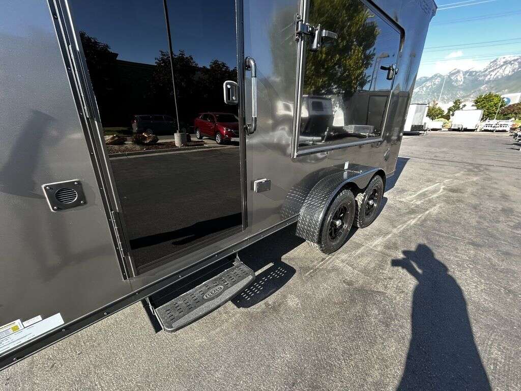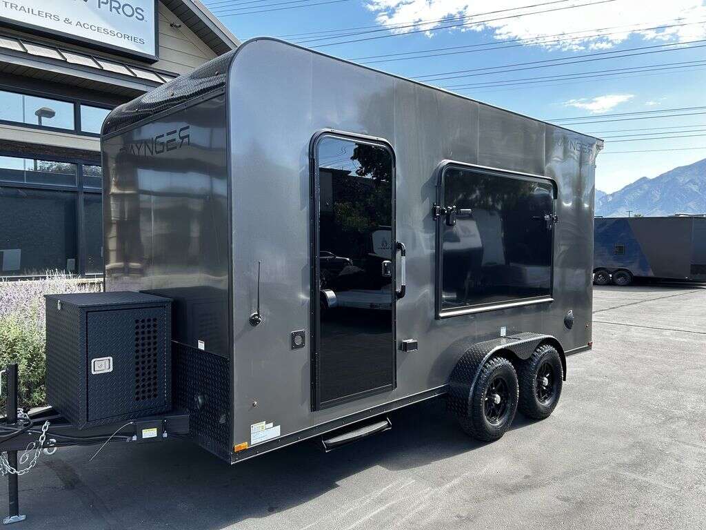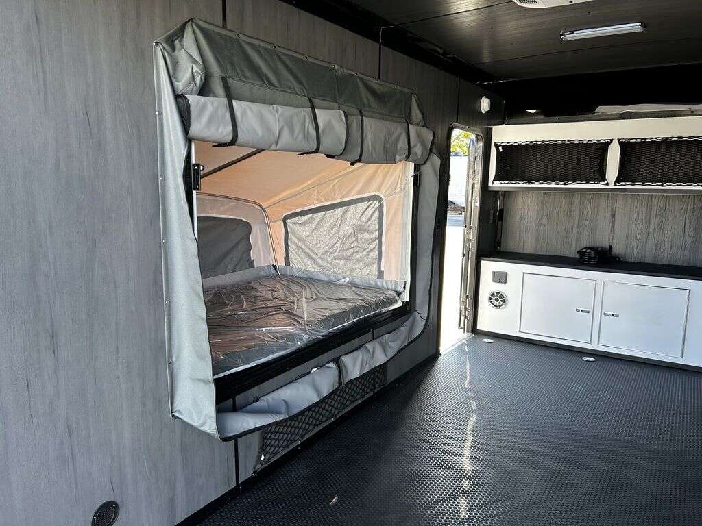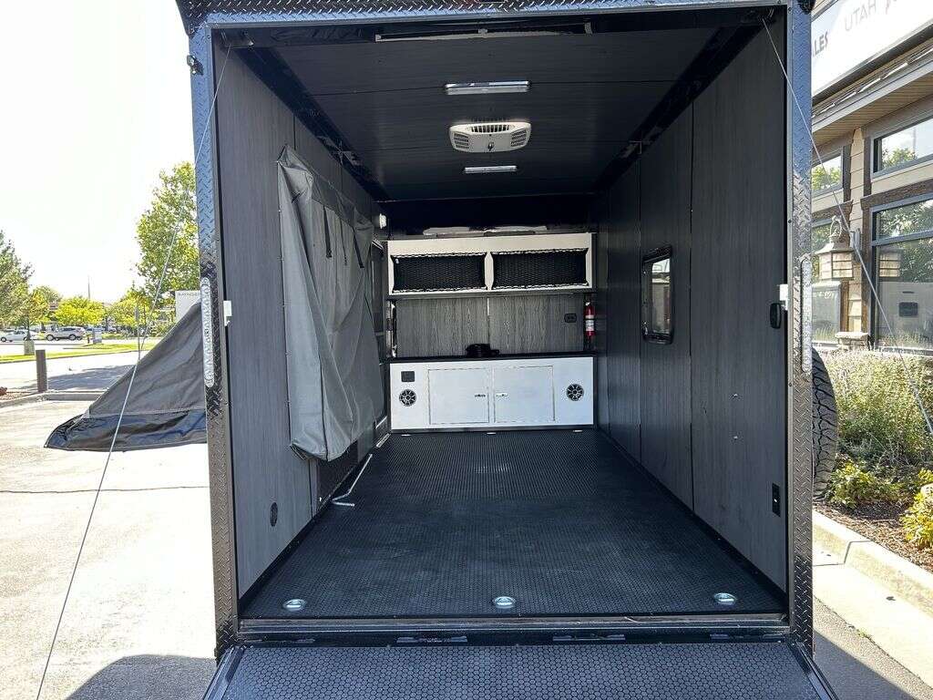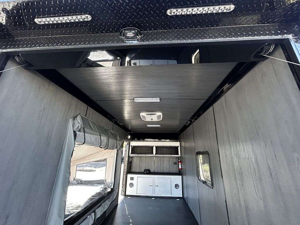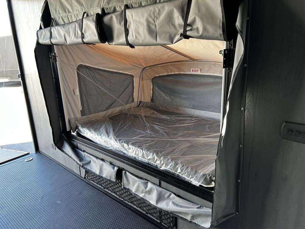 LIMITED TIME $214 A MONTH WITH ZERO DOWN WITH OUR SPECIAL LOCAL CREDIT UNION PARTNER!!! NO PRE-PAYMENT PENALTIES!!! NEW 2025 MODEL!!! FITS ANY STOCK SIDE BY SIDE UTV!!! RAYNGER PREMIUM OFF ROAD TOY HAULER CAMPER!!! 18 INCH GROUND CLEARANCE!!! OFF ROAD TIRES!!! FULLY INSULATED!!! HEATING AND A/C!!! WET SOUND STEREO!!! FOLD OUT/POP OUT TENT WITH MATTRESS!!! 84 Inch Rear Entry Height/87 INCH INTERIOR HEIGHT!!! 77 Inch Rear Entry Width!!! Aluminum Ventilated Locking Generator Box!!! UPGRADED TORSION AXLES!!! 14.2 Foot Long Garage Space!!! And Much MUCH MORE!!! Check out our Specs!!! Also available in 18 foot models. 18 Foot Models can have 3 Fold Out Beds/Pop Out Tents. 16 Foot and 18 Foot Models will fit ANY stock 4 Seater Side by Side • 6” I Beam Frame• Flat Top Design• Flat Front Design• Wall Posts 16” on Center• Cross Members 16” on Center• Roof Bows 16” on Center• Rust Inhibiting Z-Tech Protection on Chassis• Ameraguard on Tongue• Ameraguard on Rear Bumper• Ameraguard Around All Door Openings and Stepwell• Ameraguard Around Edges of Ramp Door• 3500 LB Spring Axles• 2-5/16” Coupler• One-Piece Aluminum Roof• ST235/75R15 Aluminum Wheels with Chrome Center Caps• 2000# Ramp Door with Eberhard Latch• 30” Tempered Glass RV Door with Screen Door• .030 Exterior Metal with Screwless Sides• 24” Black Stoneguard• 3” Black Bottom Trim• Sand Pad• Black Door Hold• 2.7mm Charcoal Textured Vinyl Ceiling • 9mm Charcoal Textured Vinyl Walls• 3/4” Engineered Wood Floor with Rubber Coin Overlay• (6) 1200 LB Floor D rings Installed with Backer Plates• LED Clearance Lights and Tail Lights• LED Back-up Lights• No Show Wheel Box• Spoiler with Toggle Switch• RV Step• 7’ Interior• (2) 17” Chrome Base Lights with Switch• (1) Black 17” Spot Light with Switch• (1) 30 Amp Panel with Marine Plug• A/C Unit with Heat Strip• (3) Interior Recepts• (1) Exterior Recept• 12V Battery and Charge Line• Prep for Backup Camera• Wet Sounds System• (3) Blue Interior Cabinet Lights• (1) 6’ Section of Flex Lights• Black ATP Rear Header and Hoop• Black ATP Fenders• Insulated Walls & Ceiling• Base Cabinets• Overhead Cabinets with Netting Over Compartments• Pop Out Tent• Black ATP Storage/Generator Box Mounted On Tongue 2SW092069