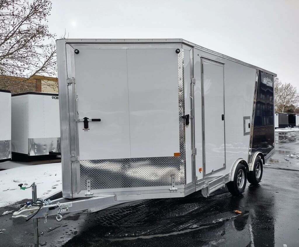 LIMITED TIME $194 A MONTH WITH ZERO DOWN WITH OUR SPECIAL LOCAL CREDIT UNION PARTNER!!! EASY IN HOUSE APPROVAL!!! NEW!!! 8.5x16 High Country Enclosed All Aluminum Hybrid Snowmobile/UTV/ATV Pkg!!! FULLY INSULATED!!! LIFETIME FACTORY WARRANTY!!! You need to see the workmanship in person, these are not your standard trailers, these are the TOP OF THE LINE!! PREMIUM!!! REAR CANOPY WITH RECESSED LIGHTING!!! Super heavy duty Spare Tire Mount, no breakage here!!! RB046189