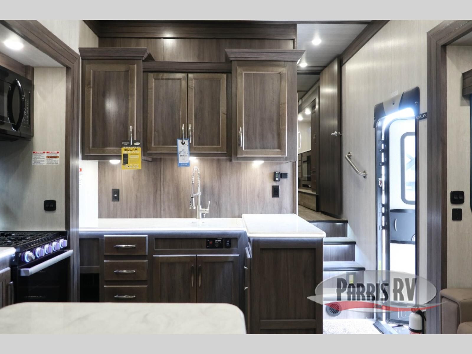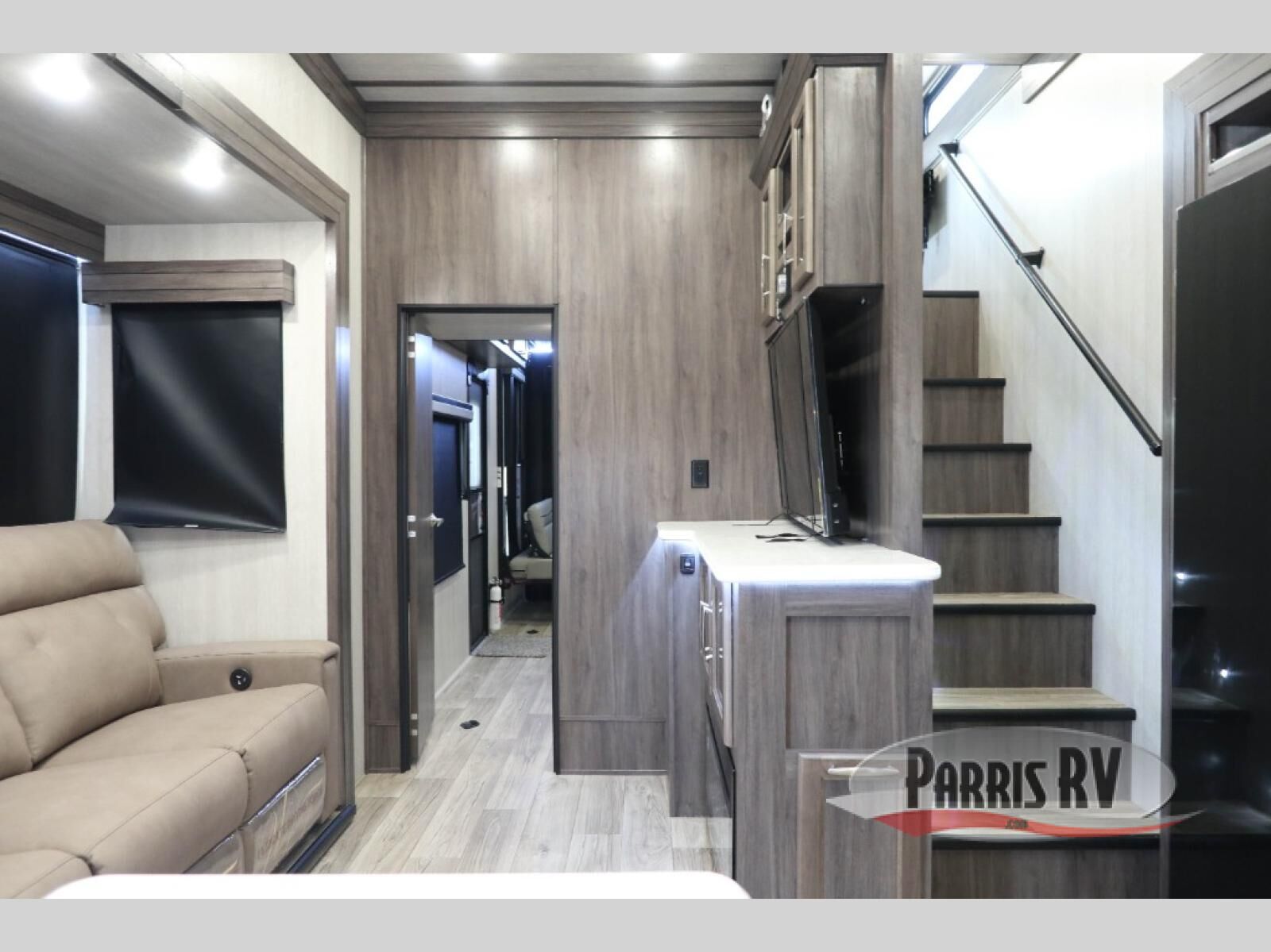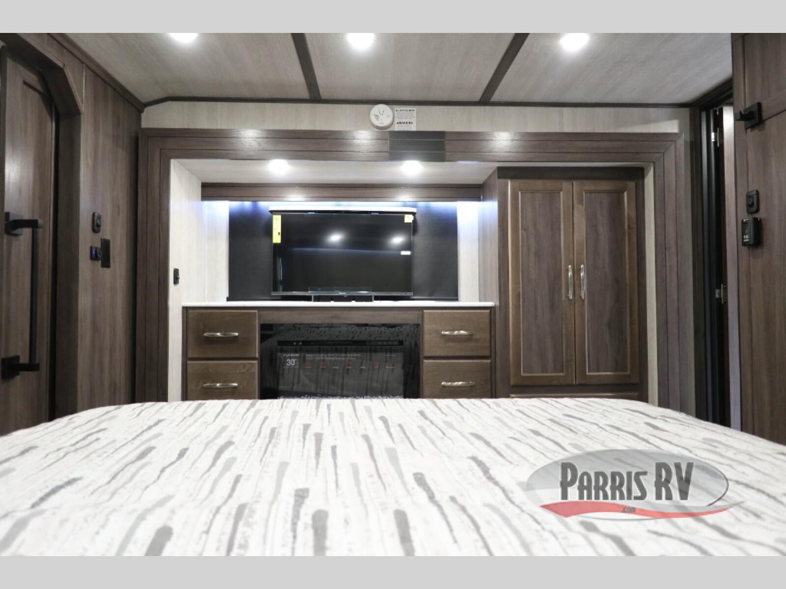 If you enjoy riding the trails and camping with more friends and family, this toy hauler is for you! The 16' 0" cargo length in the separate garage will provide plenty of space for your toys and your guests. They can sleep on the opposing dinette or on the power queen bed and loft. The combined kitchen and living area includes a sofa slide out, a second sofa, plus a U-shaped kitchen counter. There is also a fireplace and 50" TV within the entertainment center so you can enjoy movie nights. A full bath with a shower skylight and power vent will allow you to clean up each day, and the front private bedroom is sure to make you feel at home. There is an RV king bed, dual opposing slides with wardrobes and vanities to keep all your belongings organized plus more storage space!