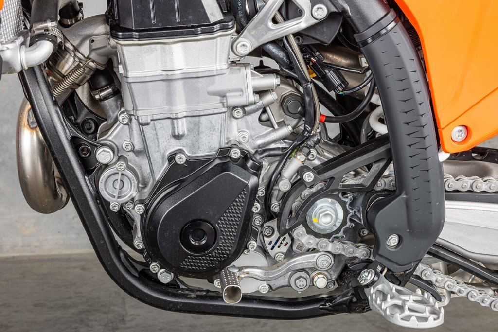 When the war drums sound and the gate drops, you need to be the first to off the line in a bid to rule the roost. The 2025 KTM 450 SX-F boasts one of the most manic 4-stroke powerplants in the paddock, with its SOHC engine proving to be the perfect example of advanced engineering. With a peak power output, and an overall engine weight of only 26.8 kg, you'll leave the competition with more than a little mud on the face.