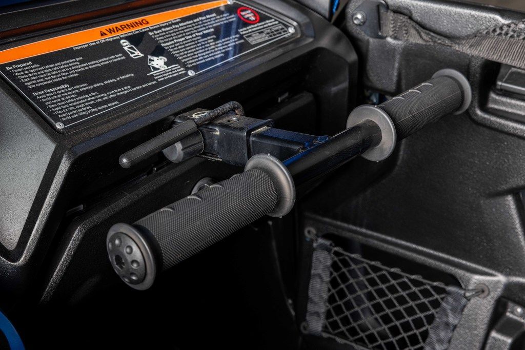 The Talon 1000R's hard doors are standard equipment, and offer full coverage and excellent weather protection, especially when crossing through mud or water. An added bonus: they offer more storage too, with additional cupholders in each door along with secure storage compartments. Plus, the doors use an automotive-style double-latch design that’s secure and rattle-free.