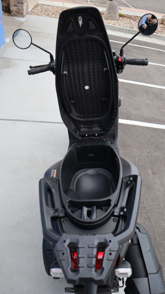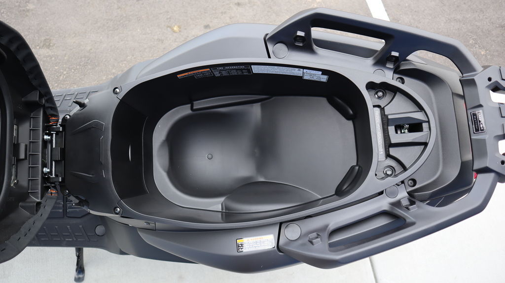 Underseat storage fits a full-face helmet, plus a front USB port keeps your devices charged on the go. Side and center stands, along with a locking ignition, make this scooter commuter-friendly and ready for adventure.