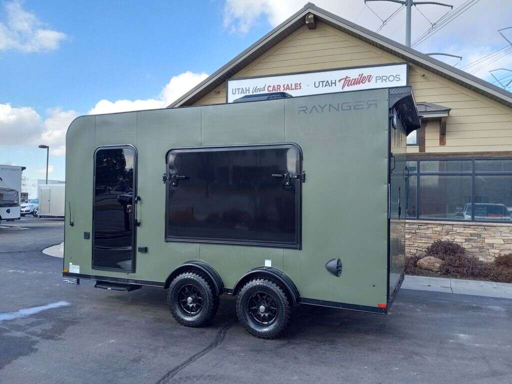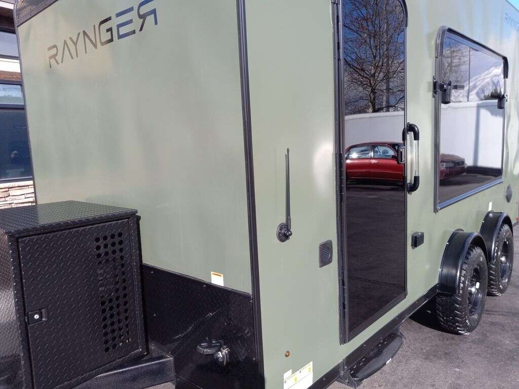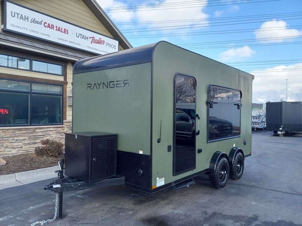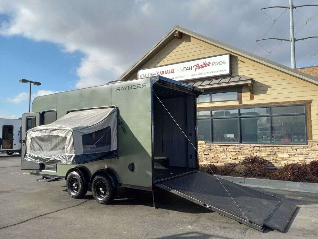 LIMITED TIME $249 A MONTH WITH ZERO DOWN WITH OUR SPECIAL LOCAL CREDIT UNION PARTNER!!! NO PRE-PAYMENT PENALTIES!!! NEW 7.5 WIDE MODEL!!! FITS ANY STOCK SIDE BY SIDE UTV!!! RAYNGER PREMIUM OFF ROAD TOY HAULER CAMPER!!! 18 INCH GROUND CLEARANCE!!! OFF ROAD TIRES!!! FULLY INSULATED!!! HEATING AND A/C!!! WET SOUND STEREO!!! FOLD OUT/POP OUT TENT WITH MATTRESS!!! 84 Inch Rear Entry Height/87 INCH INTERIOR HEIGHT!!! 83 Inch Rear Entry Width!!! Ventilated Locking Generator Box!!! UPGRADED TORSION AXLES!!! 14.2 Foot Long Garage Space!!! And Much MUCH MORE!!! Check out our Specs!!! Also available in 18 foot models. 18 Foot Models can have 3 Fold Out Beds/Pop Out Tents. 16 Foot and 18 Foot Models will fit ANY stock 4 Seater Side by Side • 6” I Beam Frame• Flat Top Design• Flat Front Design• Wall Posts 16” on Center• Cross Members 16” on Center• Roof Bows 16” on Center• Rust Inhibiting Z-Tech Protection on Chassis• Ameraguard on Tongue• Ameraguard on Rear Bumper• Ameraguard Around All Door Openings and Stepwell• Ameraguard Around Edges of Ramp Door• 3500 LB Spring Axles• 2-5/16” Coupler• One-Piece Aluminum Roof• ST235/75R15 Aluminum Wheels with Chrome Center Caps• 2000# Ramp Door with Eberhard Latch• 30” Tempered Glass RV Door with Screen Door• .030 Exterior Metal with Screwless Sides• 24” Black Stoneguard• 3” Black Bottom Trim• Sand Pad• Black Door Hold• 2.7mm Charcoal Textured Vinyl Ceiling • 9mm Charcoal Textured Vinyl Walls• 3/4” Engineered Wood Floor with Rubber Coin Overlay• (6) 1200 LB Floor D rings Installed with Backer Plates• LED Clearance Lights and Tail Lights• LED Back-up Lights• No Show Wheel Box• Spoiler with Toggle Switch• RV Step• 7’ Interior• (2) 17” Chrome Base Lights with Switch• (1) Black 17” Spot Light with Switch• (1) 30 Amp Panel with Marine Plug• A/C Unit with Heat Strip• (3) Interior Recepts• (1) Exterior Recept• 12V Battery and Charge Line• Prep for Backup Camera• Wet Sounds System• (3) Blue Interior Cabinet Lights• (1) 6’ Section of Flex Lights• Black ATP Rear Header and Hoop• Black ATP Fenders• Insulated Walls & Ceiling• Base Cabinets• Overhead Cabinets with Netting Over Compartments• Pop Out Tent• Black ATP Storage/Generator Box Mounted On Tongue SW094823