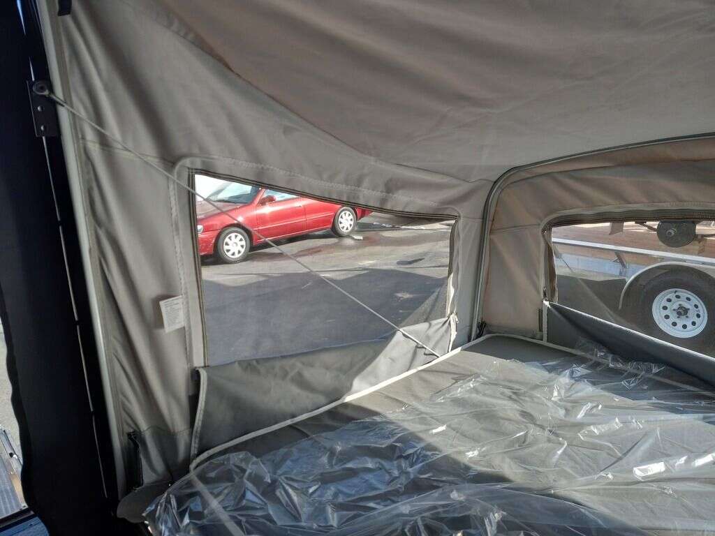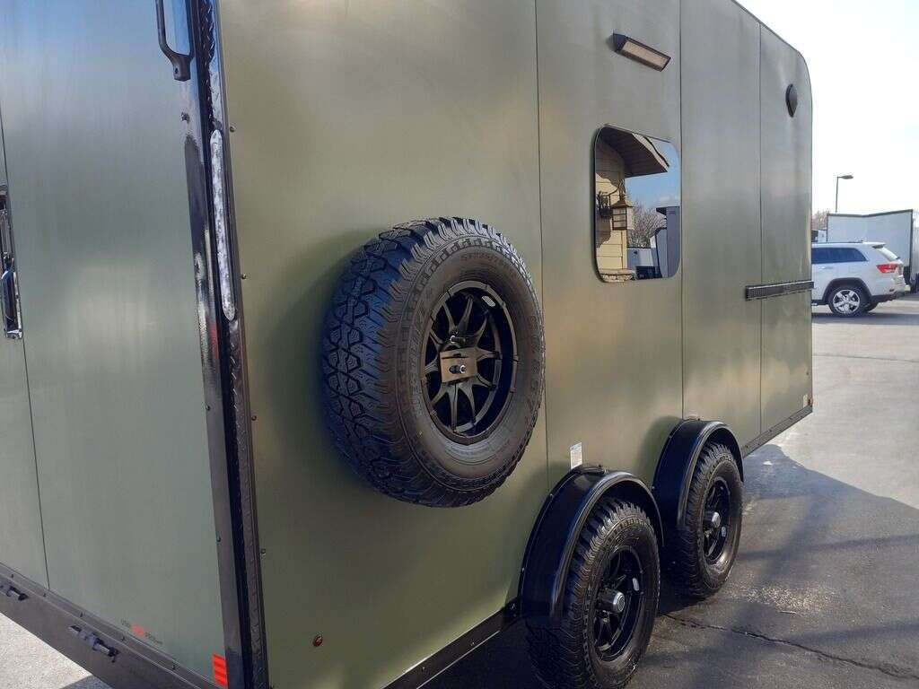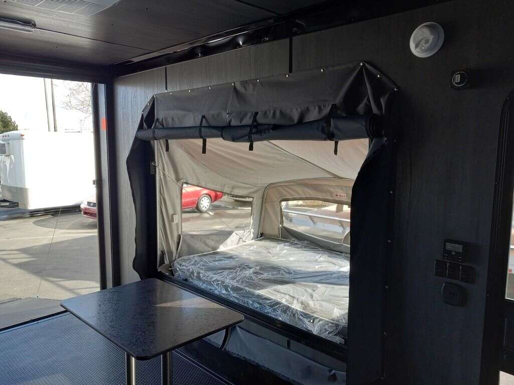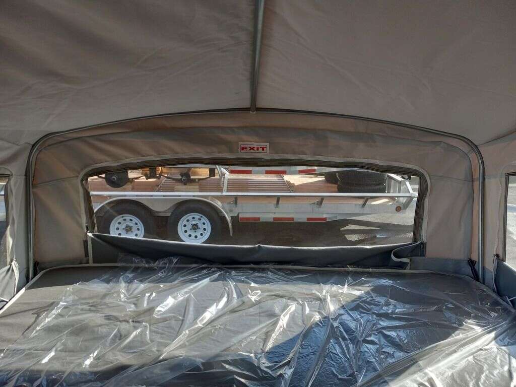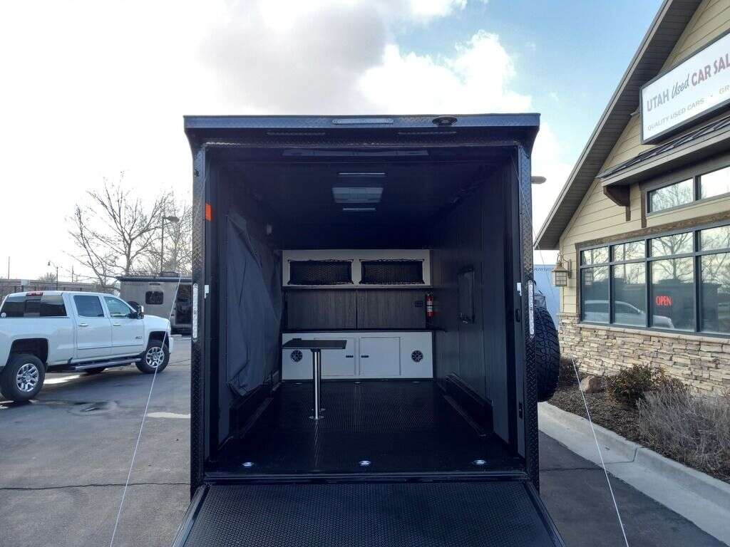 LIMITED TIME $249 A MONTH WITH ZERO DOWN WITH OUR SPECIAL LOCAL CREDIT UNION PARTNER!!! NO PRE-PAYMENT PENALTIES!!! NEW 7.5 WIDE MODEL!!! FITS ANY STOCK SIDE BY SIDE UTV!!! RAYNGER PREMIUM OFF ROAD TOY HAULER CAMPER!!! 18 INCH GROUND CLEARANCE!!! OFF ROAD TIRES!!! FULLY INSULATED!!! HEATING AND A/C!!! WET SOUND STEREO!!! FOLD OUT/POP OUT TENT WITH MATTRESS!!! 84 Inch Rear Entry Height/87 INCH INTERIOR HEIGHT!!! 83 Inch Rear Entry Width!!! Ventilated Locking Generator Box!!! UPGRADED TORSION AXLES!!! 14.2 Foot Long Garage Space!!! And Much MUCH MORE!!! Check out our Specs!!! Also available in 18 foot models. 18 Foot Models can have 3 Fold Out Beds/Pop Out Tents. 16 Foot and 18 Foot Models will fit ANY stock 4 Seater Side by Side • 6” I Beam Frame• Flat Top Design• Flat Front Design• Wall Posts 16” on Center• Cross Members 16” on Center• Roof Bows 16” on Center• Rust Inhibiting Z-Tech Protection on Chassis• Ameraguard on Tongue• Ameraguard on Rear Bumper• Ameraguard Around All Door Openings and Stepwell• Ameraguard Around Edges of Ramp Door• 3500 LB Spring Axles• 2-5/16” Coupler• One-Piece Aluminum Roof• ST235/75R15 Aluminum Wheels with Chrome Center Caps• 2000# Ramp Door with Eberhard Latch• 30” Tempered Glass RV Door with Screen Door• .030 Exterior Metal with Screwless Sides• 24” Black Stoneguard• 3” Black Bottom Trim• Sand Pad• Black Door Hold• 2.7mm Charcoal Textured Vinyl Ceiling • 9mm Charcoal Textured Vinyl Walls• 3/4” Engineered Wood Floor with Rubber Coin Overlay• (6) 1200 LB Floor D rings Installed with Backer Plates• LED Clearance Lights and Tail Lights• LED Back-up Lights• No Show Wheel Box• Spoiler with Toggle Switch• RV Step• 7’ Interior• (2) 17” Chrome Base Lights with Switch• (1) Black 17” Spot Light with Switch• (1) 30 Amp Panel with Marine Plug• A/C Unit with Heat Strip• (3) Interior Recepts• (1) Exterior Recept• 12V Battery and Charge Line• Prep for Backup Camera• Wet Sounds System• (3) Blue Interior Cabinet Lights• (1) 6’ Section of Flex Lights• Black ATP Rear Header and Hoop• Black ATP Fenders• Insulated Walls & Ceiling• Base Cabinets• Overhead Cabinets with Netting Over Compartments• Pop Out Tent• Black ATP Storage/Generator Box Mounted On Tongue SW094823