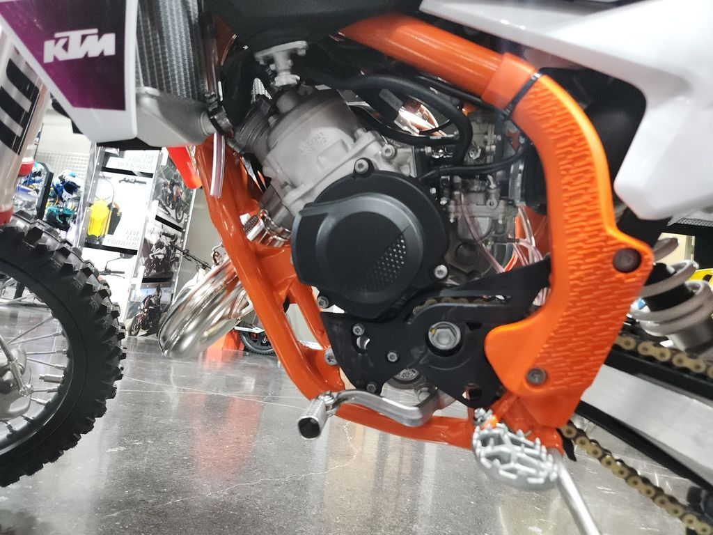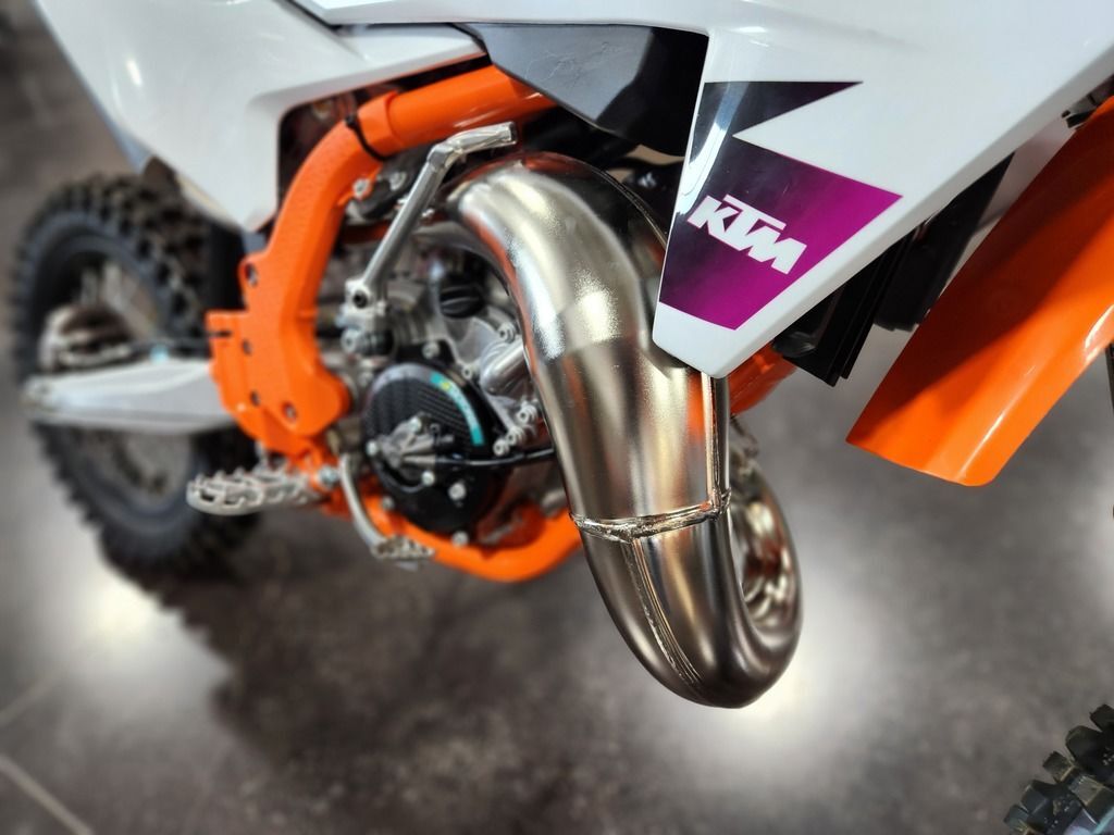 The 2025 KTM 65 SX features a high-performance cylinder made from lightweight and durable aluminum that incorporates a pressure-controlled exhaust valve (PCEV), providing unrivaled performance.