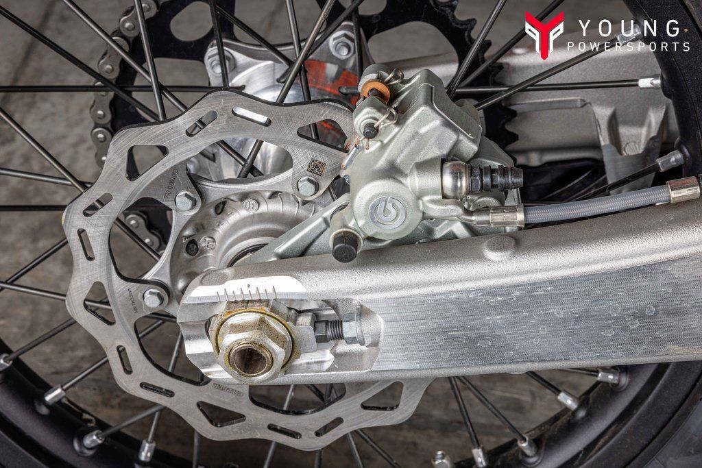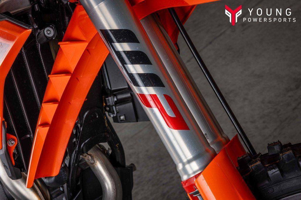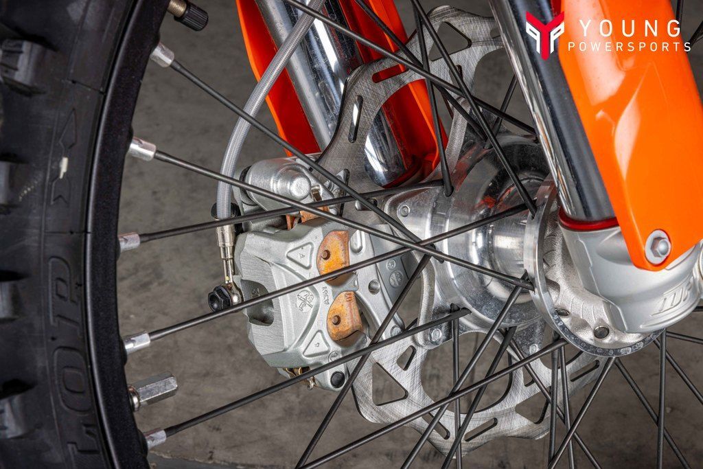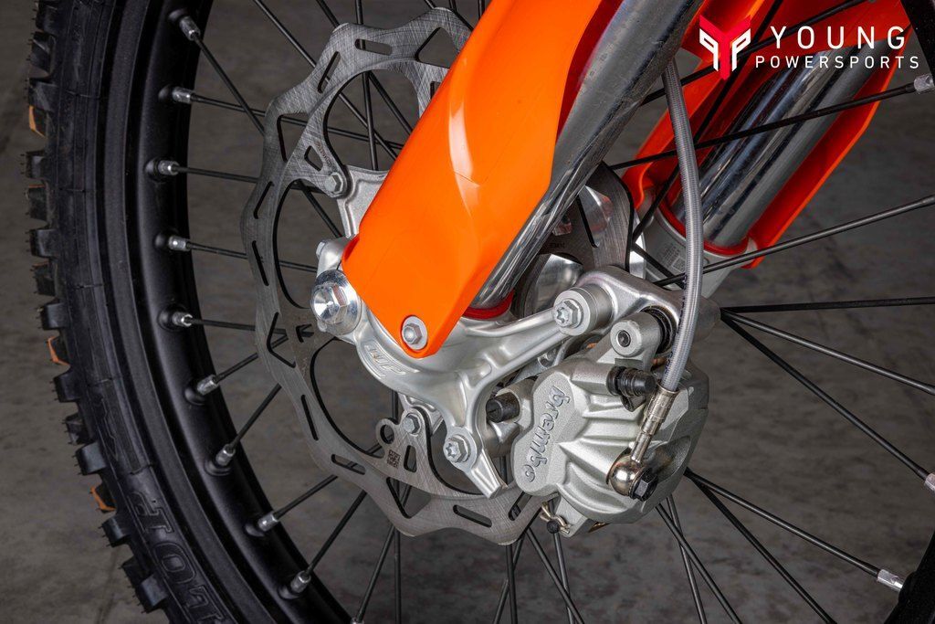 The 2025 KTM XC and XC-F range took their already awesome suspension package and turned it up to 11. The WP XACT Closed Cartridge spring forks and WP XACT rear shock has been updated, with reworked settings and alterations to improve weight distribution and increase overall response. As always, the suspension boasts an easy tool-free setup at both ends, ensuring you chase down the podium in total control. On the rear, a hand-adjustable dual compression control allows riders to adjust high- and low-speed settings in a matter of seconds. The forks on the front end are also easily adjusted thanks to hand-adjustable clickers on the bottom of the fork shoe and top cap.