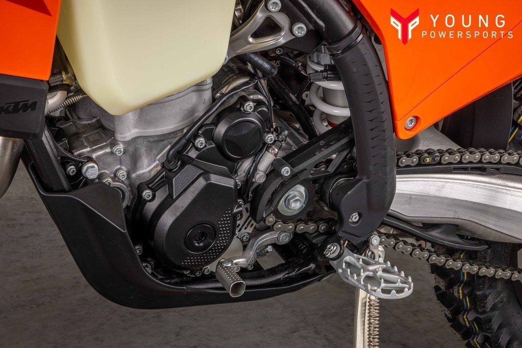 Perfectly filling the gap between the KTM 250 XC-F and the powerhouse KTM 450 XC-F, the lightweight KTM 350 XC-F powerplant rules the roost in a class of its own. Designed and tuned to provide the best performance and handling characteristics possible, the DOHC engine delivers endless mid-range and the top-end power together with the benefits of mass centralization and ideal anti-squat behavior. With 450-rivalling performance and an overall engine weight of only 60.6 lb, you'll leave the competition with more than a little mud on the face.