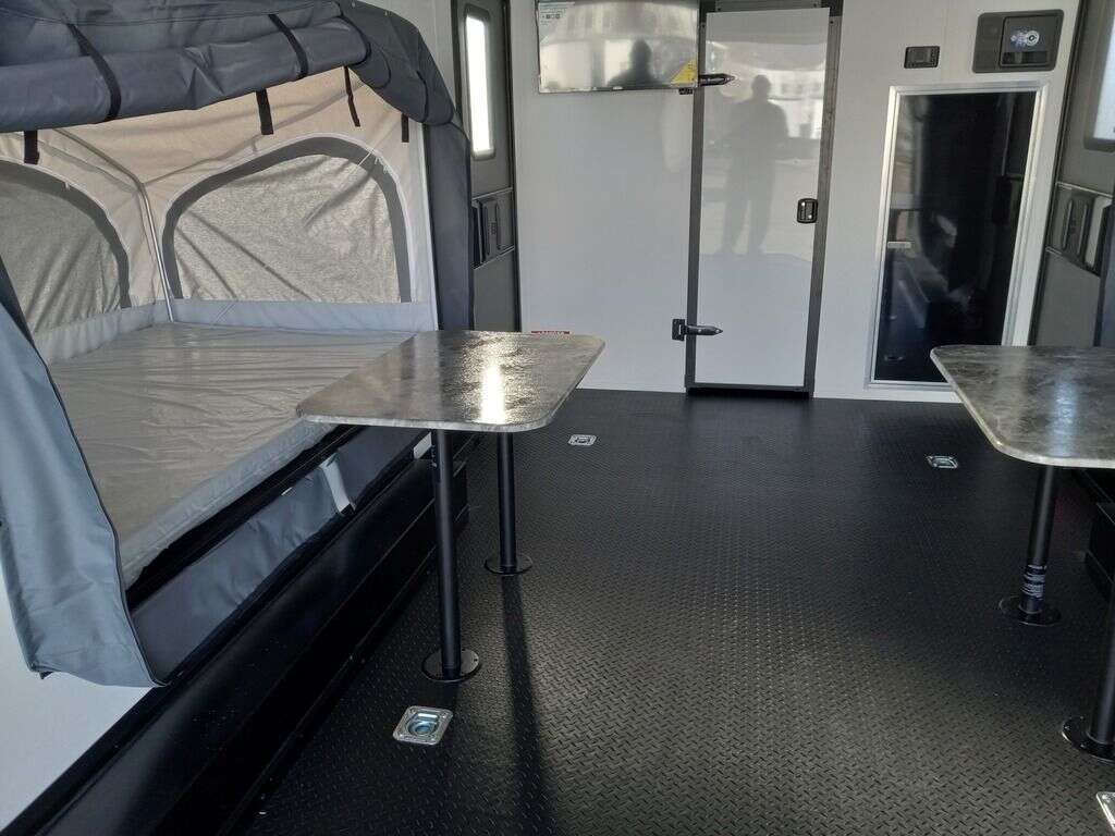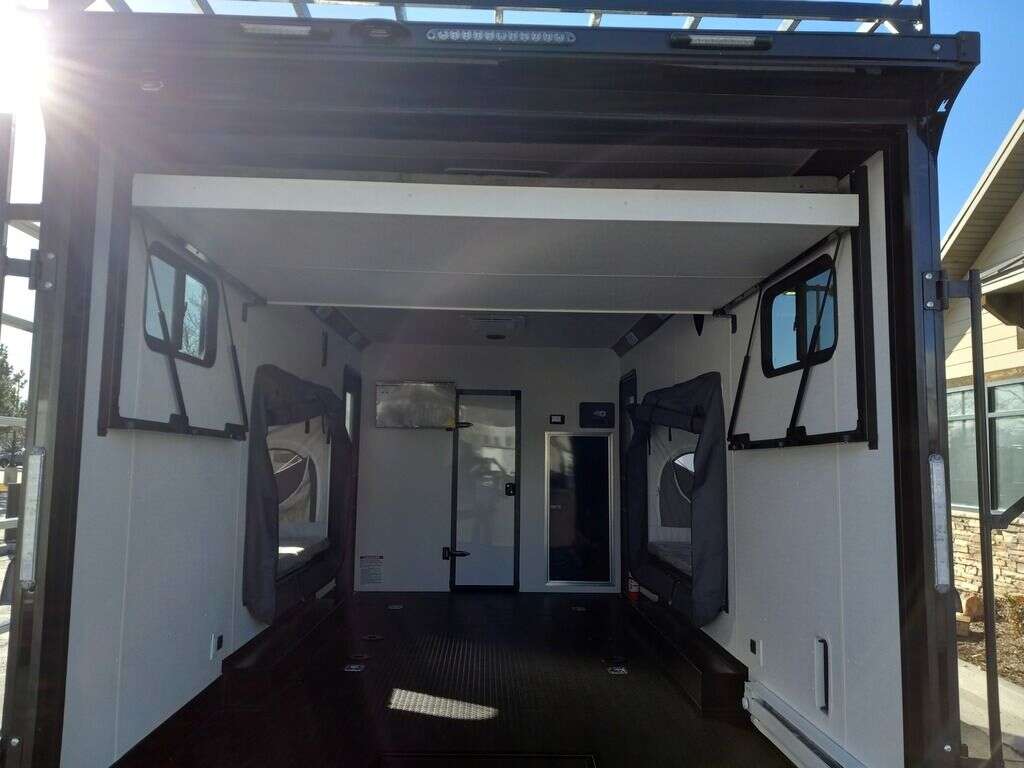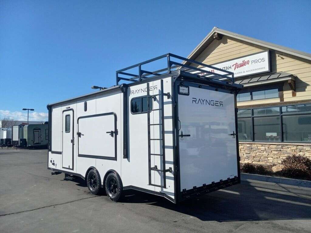 LIMITED TIME $441 A MONTH WITH ZERO DOWN WITH OUR SPECIAL LOCAL CREDIT UNION PARTNER!!! NO PRE-PAYMENT PENALTIES!!! NEW RAYNGER EMBARK 22 Foot Toy Hauler MODEL!!! WILL FIT ANY STOCK SIDE BY SIDE UTV!!! 17.4 Foot Garage!!! 10,400# GVWR!!! FULLY INSULATED!!! HEAT AND A/C!!! STEREO with Interior and Exterior Speakers!!!! 96" Interior Height/ 36" Wedge Front, 83" Rear Entry Height (83 Inch Clearance from the lowest Point Beneath Stow and Go Bed and the Floor) 2x6 Tube Steel Main Rails, 16" O/C Floor Tube Crossmembers, 16" O/C Steel Tube Wall Studs, 24" O/C Tube Steel Roof Bows, 18" Extended Triple Tube A-Frame, Lippert Torsion Axles w/22 Deg Down Start Angle (45 Degree on future models) 5200# Axles with On Road/Off Road Hybrid Tires 40" Spread Axles, Electric Brakes, 2-5/16 Adjustable A-Frame Coupler, 5000# Electric A-Frame Tongue Jack,