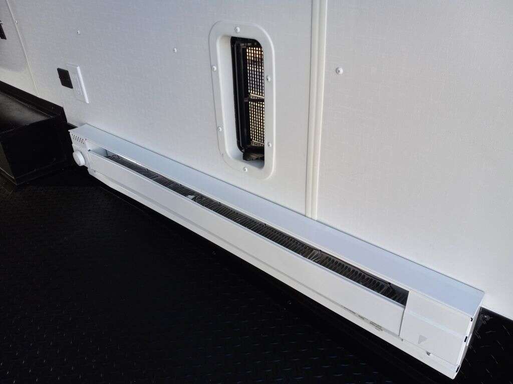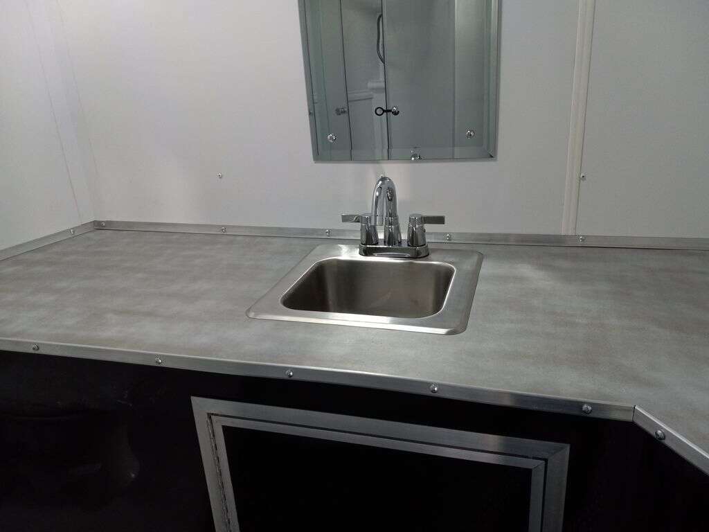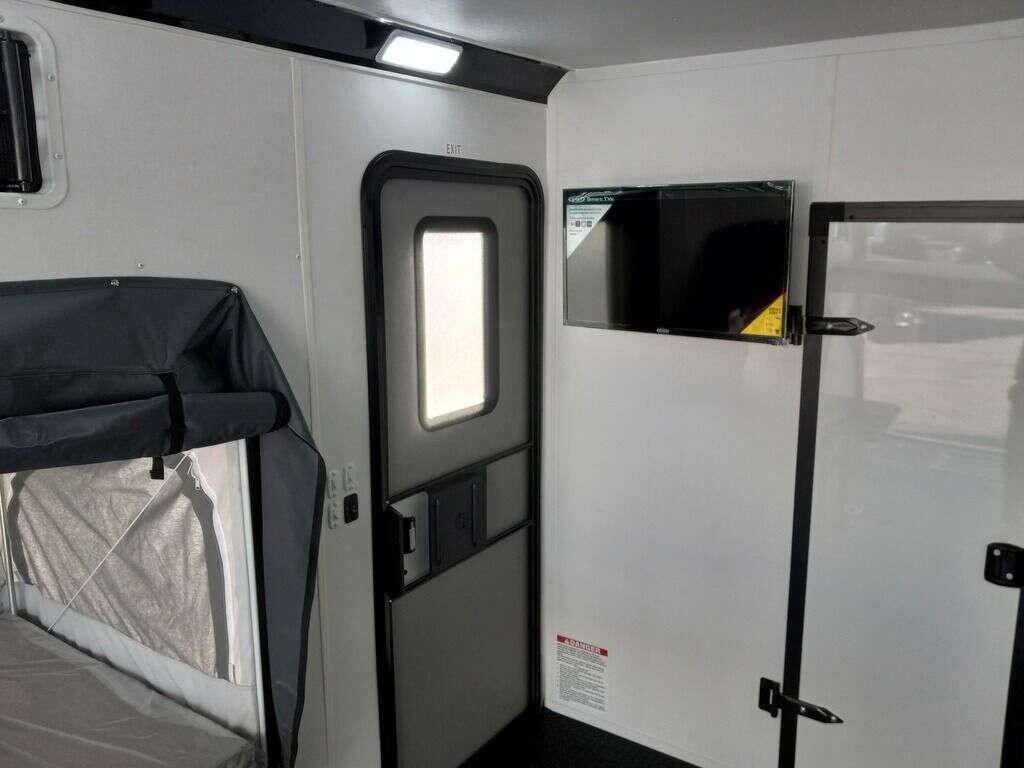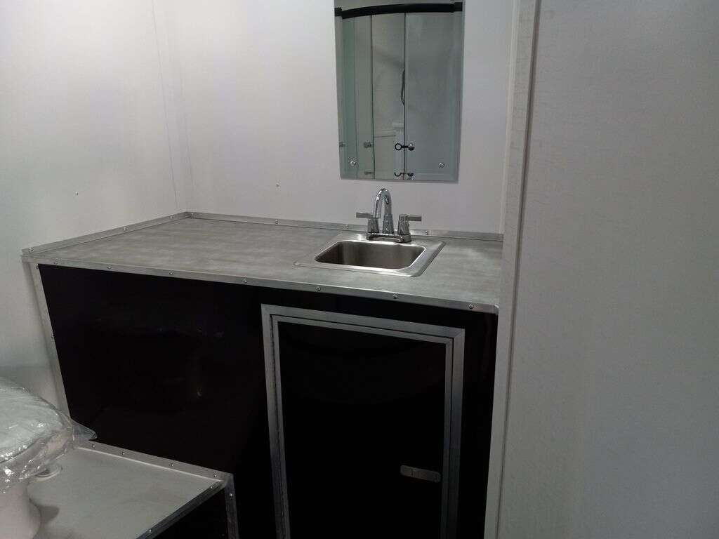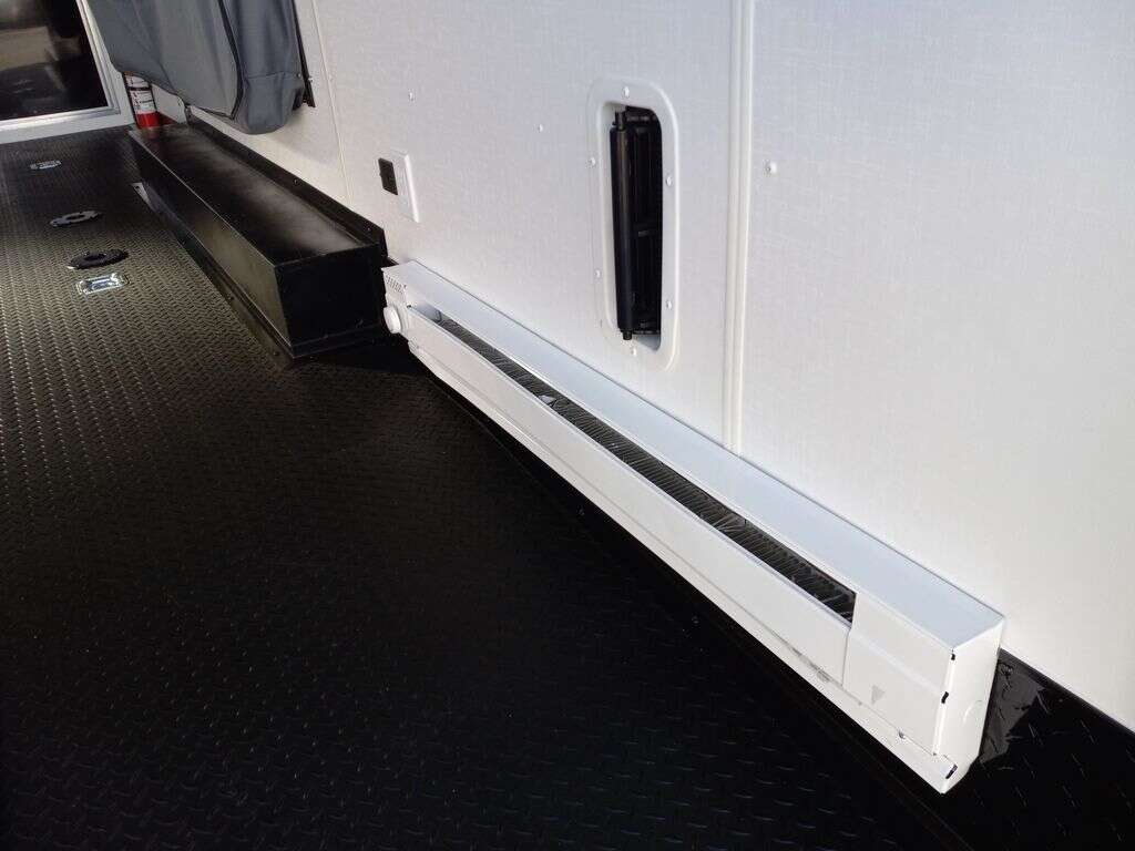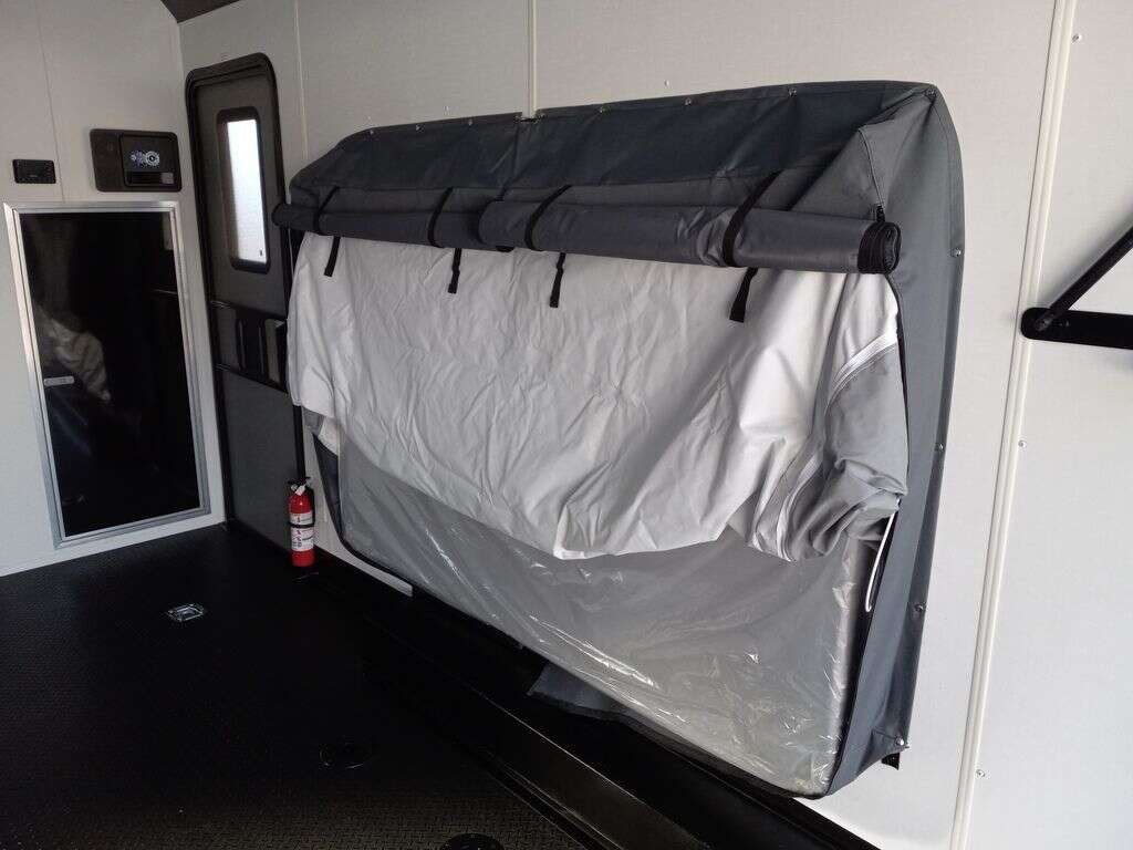 4000# Rear Cableless Ramp Door w/Steel Flap, (2) Roof Vent in Living/Garage Area, 15,000 BTU A/C, 12V Roof Vent in Bathroom, Painted Tongue/Rear Sill Black, (1) Pair Rear Stab Jacks, Rear Spoiler with LED Load Light Pkg, 48" Beavertail ****PLUMBING**** 22 Gallon Fresh Water Tank, 30 Gallon Black Waste Tank, 30 Gallon Gray Waste Tank, 6 Gallon DSI LP Gas/Electric Water Heater, 12V Water Pump, City/Gravity Water Fill Hook Up, RV Toilet, Bathroom Mirror & Robe Hooks, 24x24 Shower w/Hard Shell Enclosure, Exterior Grill/Drop-In Cook Top, Large Single Bowl Sink, Tank and Battery Monitor Panel, ****ELECTRICAL**** -Way Electrical Plug, LED Strip Taillights/Marker Lights, 12V Deluxe LED Lighting, 45 Amp RV Power Center w/12V Converter, 30 Amp Motor base Plug, Detachable Twist lock Power Cord, Battery Box w/12v Battery, Interior and Exterior GFI Receptacles, Interior 110V Receptacles, USB Ports, 6 Cubic Foot Refrigerator, Microwave Oven, Baseboard Heater/Furnace, TV w/Prep Package - Includes: Coax Cable Outlets - Interior & Exterior, Omnidirectional TV Antenna UHF/VHF, 110V 4FT LED Cove Lights in Living/Garage Area, Smoke, CO, & LP Detector & Fire Extinguisher *****INTERIOR***** 3/4" Drymax Floor & 3/8" Wht Vinyl Walls, Polystyrene Foam Insulation-Walls & Ceiling, ATP Rubber Floor Covering, White Vinyl Ceiling Liner w/Black Cove Molding, 5000# Recessed D-Rings, (1) Pair Black Aluminum Directional Vents ****ROOF**** Seamless Aluminum Flat Top Roof, LED Marker Lights, *****METAL**** .080 Screwless PolyCore/Armor Shield Composite Skin ****FINAL***** LED Strip Taillights/Marker Lights, 12V Deluxe LED Lightning, Black Aluminum Wheels w/Radial Tires & Black, Center Caps, Recessed Spare Tire Compartment, Limited 3 Year Structural Warranty, 01-OPT1.952, Platinum Package, Includes: Deluxe Stereo Package with: AM/FM/CD/DVD/USB/MP3/WMA Capable Stereo, (4) Hi Output Weatherproof Speakers (2) Interior & (2) Exterior TV w/swivel bracket, Rear Hide-A-Screen (Pull Down Bug Screen), Solar Port, Stow and Go Bed Lift System: (Includes (1) Queen Mattress Setup) #SE102940 SE102940