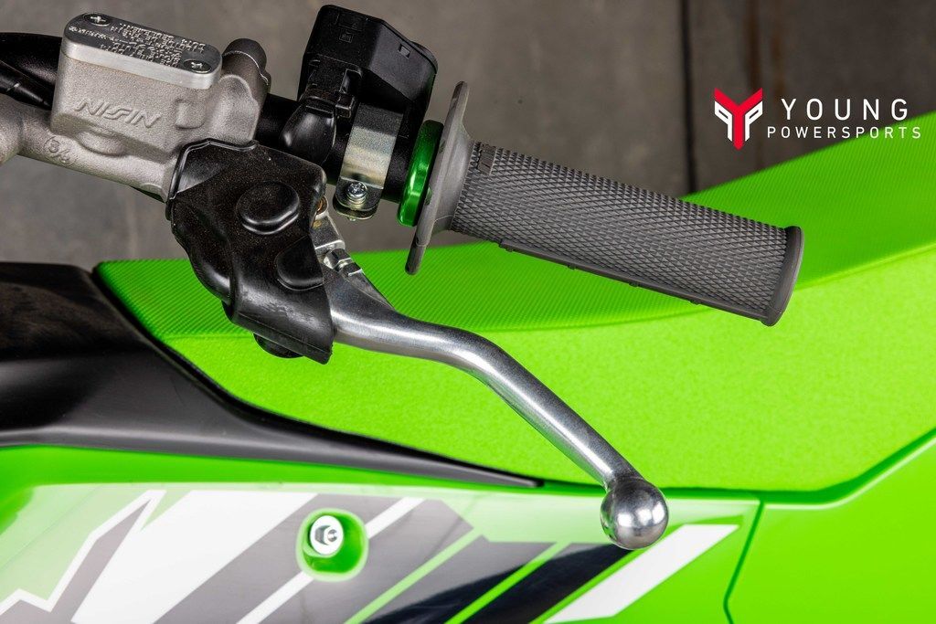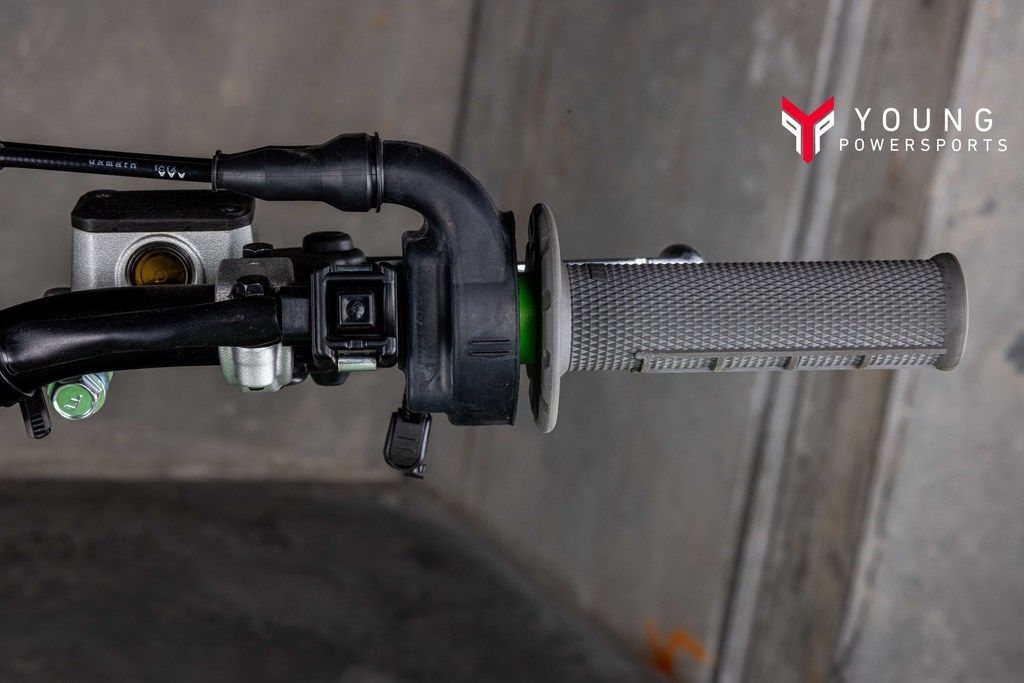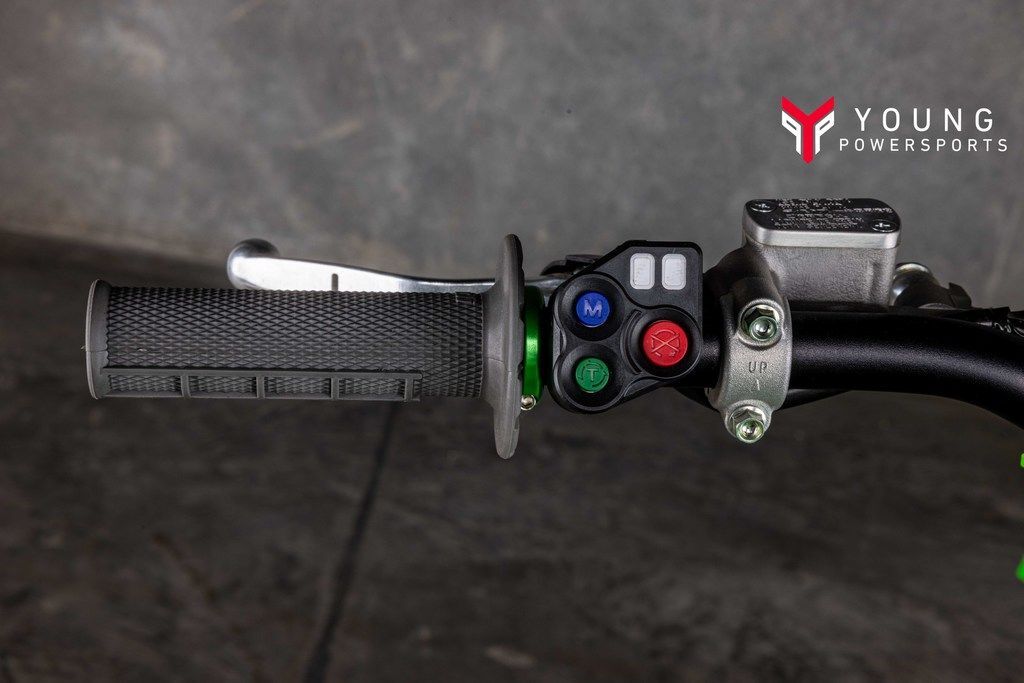 The KX™450X motorcycle's advanced controls are streamlined for rider convenience. Kawasaki TRaction Control (KTRC), Power Mode Selection, and Launch Control Mode are available at the push of a button. These features enable riders to quickly adjust power delivery and traction for riding conditions and preference. The KX450X provides advanced technology designed to inspire confidence.