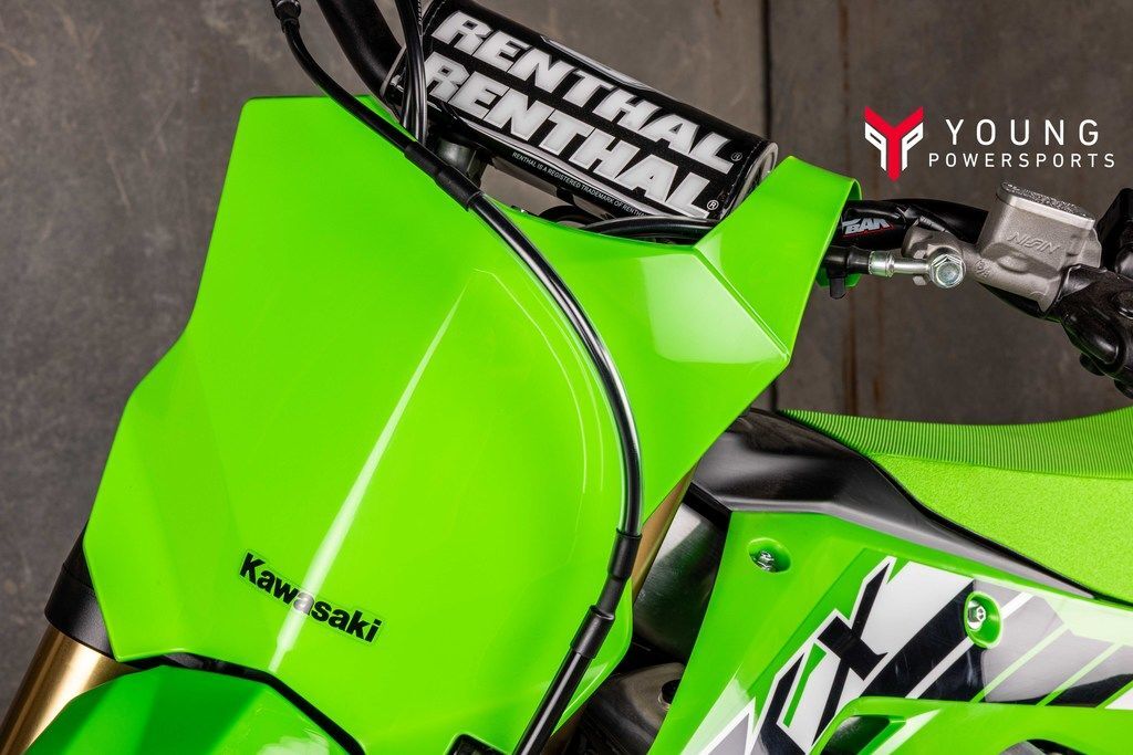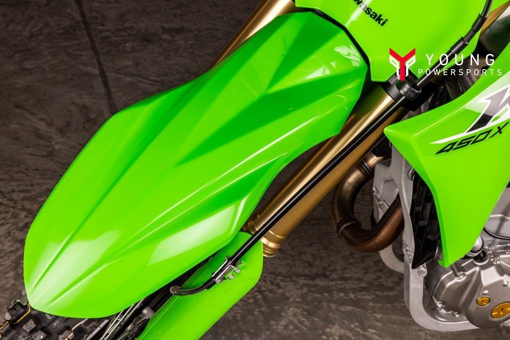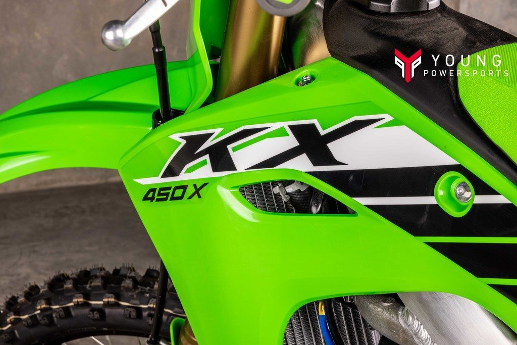 The same championship-proven engine performance found in KX™ motocross bikes propels the KX™450X motorcycle to the finish line. Stay ahead of the competition with a powerful engine that delivers broad, useable torque and strong, responsive power.