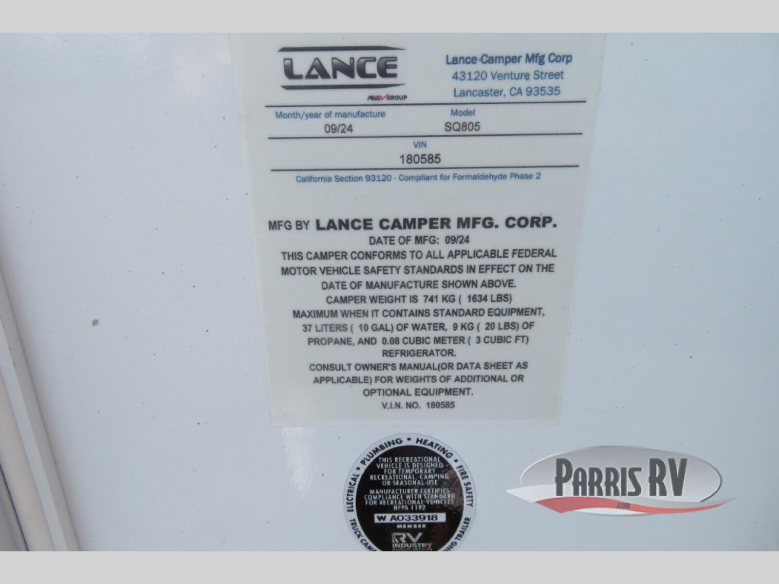 Lance Squire Truck Campers SQ805 highlights: