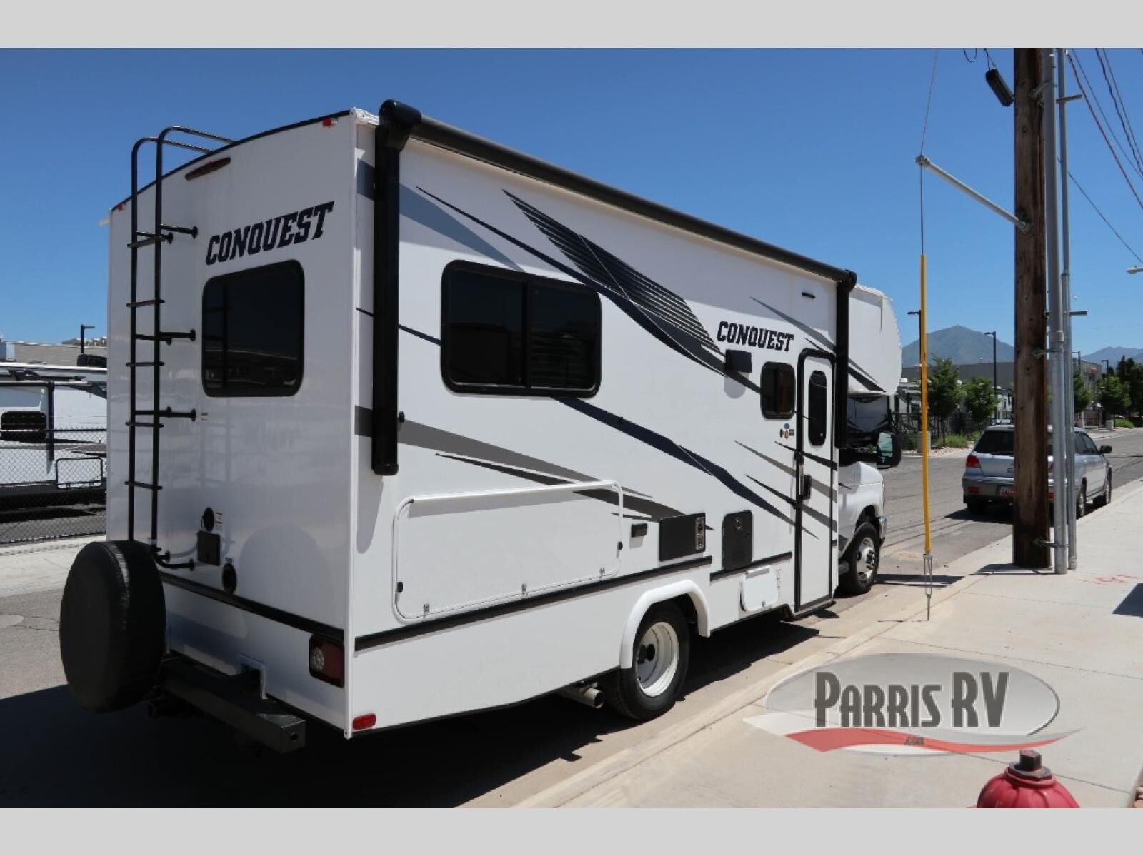 Looking for sleeping space for five, extra storage space, and loads of comfort in your next motorhome? This Conquest Class C gas motorhome gives you a double-door basement storage allowing you to bring extra gear and an interior wardrobe and overhead cabinets so that you can travel for a weekend getaway or a month-long vacation. You will have your own bed while your guests or kids sleep on the overhead bunk and booth dinette, and you will also be able to make meals in the galley kitchen and get cleaned up in your own full bathroom.