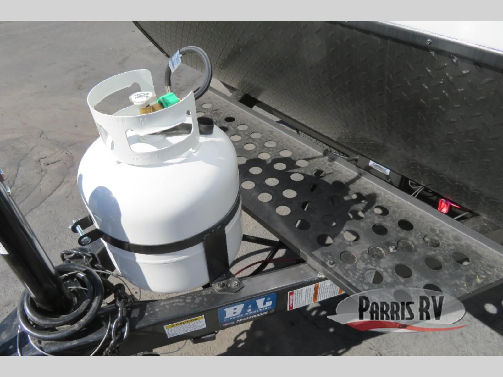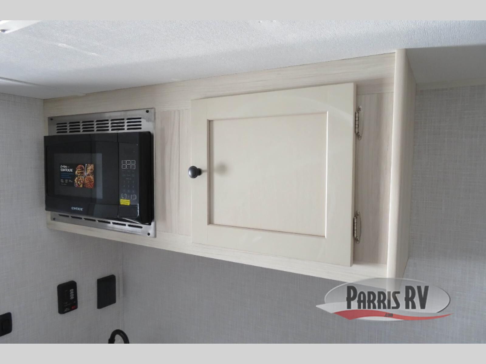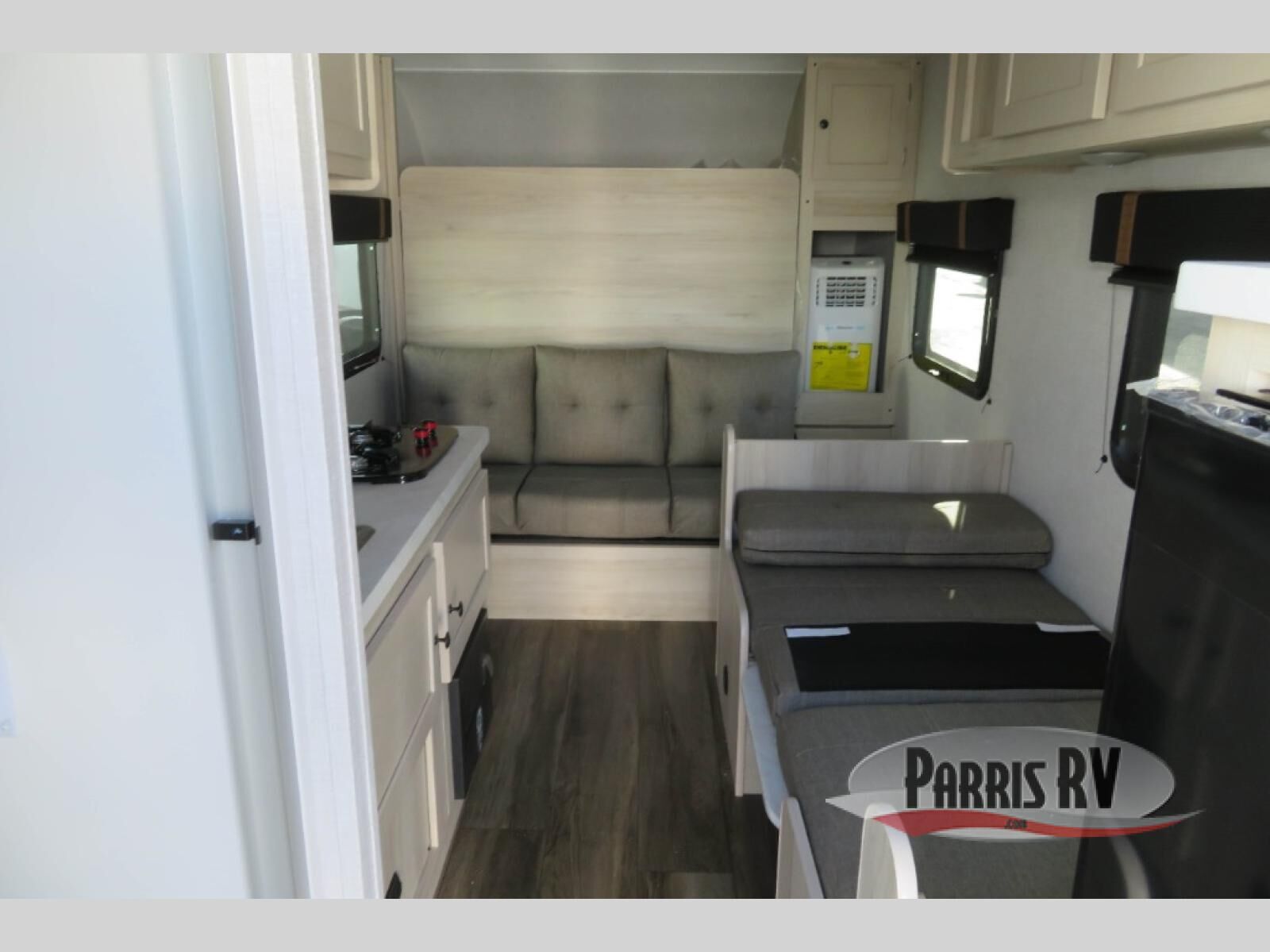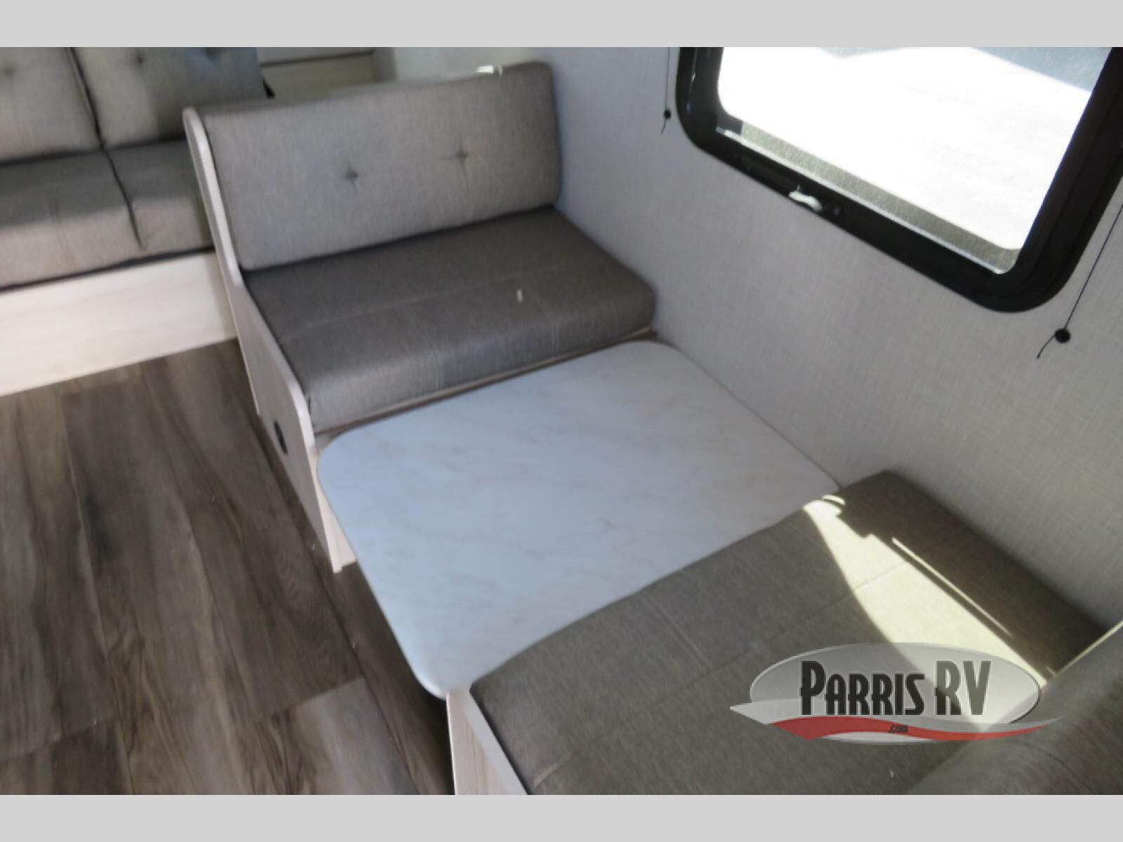 This versatile trailer gives you the amenities you need without having to increase the tow length to accommodate both a bedroom and seating area. With the Murphy bed design, depending on the time of day, you will have a queen bed to sleep on or you will have a sofa in its place adjacent to a nice 28" booth dinette. The dinette can also be made into added sleeping space for one more tired camper. The wet bath makes it easy to keep clean while you are camped and it's always a plus to have bathroom facilities inside your own camp, especially in the middle of the night. And, your cooking can be done either inside or out with the outdoor pull-out griddle and sink. If you prefer to cook indoors, you will find a two burner cooktop, overhead microwave oven, single bowl sink, plus a 12V refrigerator to keep your perishables fresh.