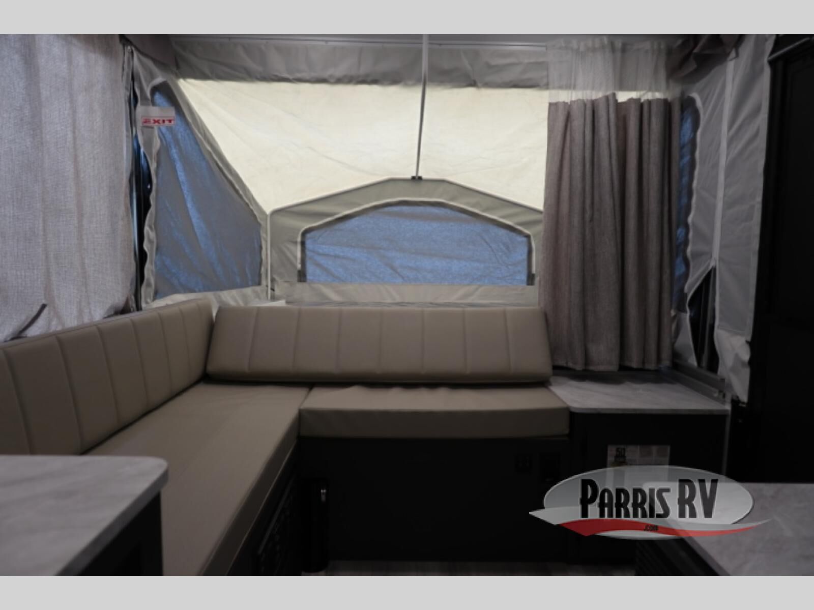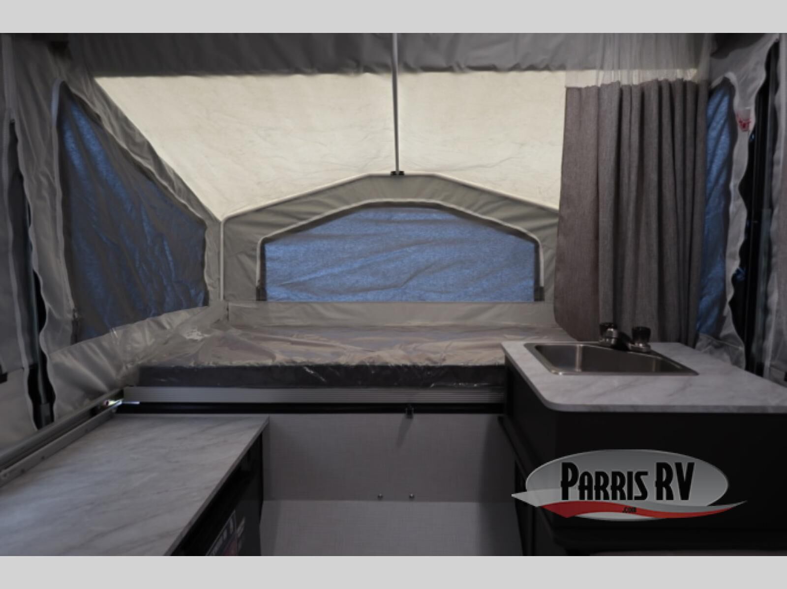 This compact camper will be perfect for outdoor trips to your favorite campground. There are two tent end beds for sleeping space, along with an L-shaped seat with a table for dining space. An extra guest or two little ones could even sleep here at night! The exterior griddle will let you make meals each day, and the 12V refrigerator will keep perishables fresh. This unit also includes an indoor sink so you can wash dishes and brush your teeth at night, and there is a 7' awning outdoors to enjoy some shade!