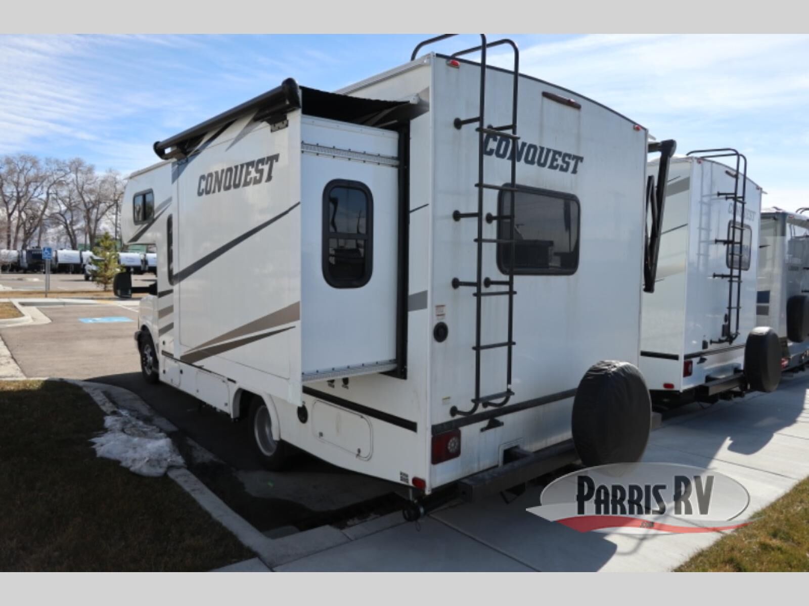 This Conquest Class C LE Series gas motorhome is a real treat to have as you cross the country making your way to scenic destinations! You will find an RV queen bed in the back of this coach so that you can stop and rest your head whenever it is convenient for you, and you will also be able to whip up a meal at any time with the three-burner range in the kitchen. The refrigerator will store your dairy and produce so that it is fresh and ready to be snacked on, and you will enjoy having a closet to use for various items, like your garments or cleaning supplies.