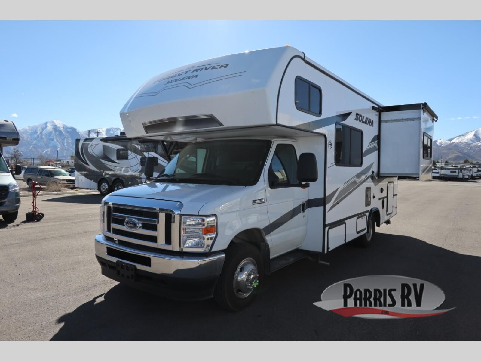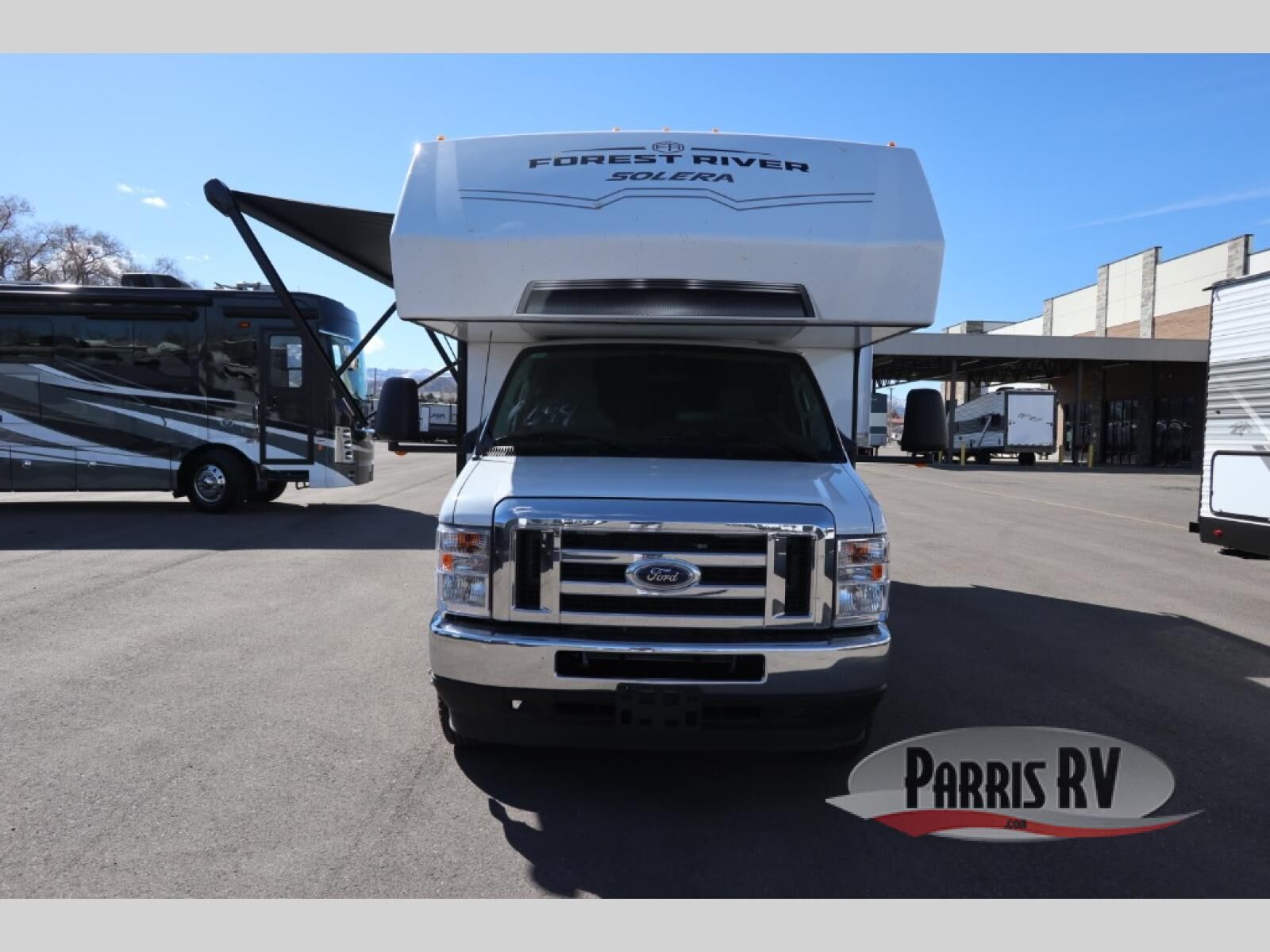 Each one of these Forest River Solera Class C gas and diesel motorhomes proclaim the style of a new generation! There is a convenient keyless entry, a backup and side view camera system, and a 10" in-dash touch screen Apple Carplay/Android Auto radio. The Ford E350/Chevy 3500, Ford E450 or Mercedes-Benz Sprinter 3500 chassis also help with the smooth ride. Each model includes aluminum framed laminated sidewalls, superlite composite substrate, and a gel coat exterior fiberglass for added durability. Inside, you will enjoy the MCD roller shades, residential style furniture with Fortress stain resistant fabrics, soft touch self-closing drawer guides, and many more comforts. And you can stay connected where ever you go with the Winegard Air 360+ antenna with Gateway 4G WiFi capability.
