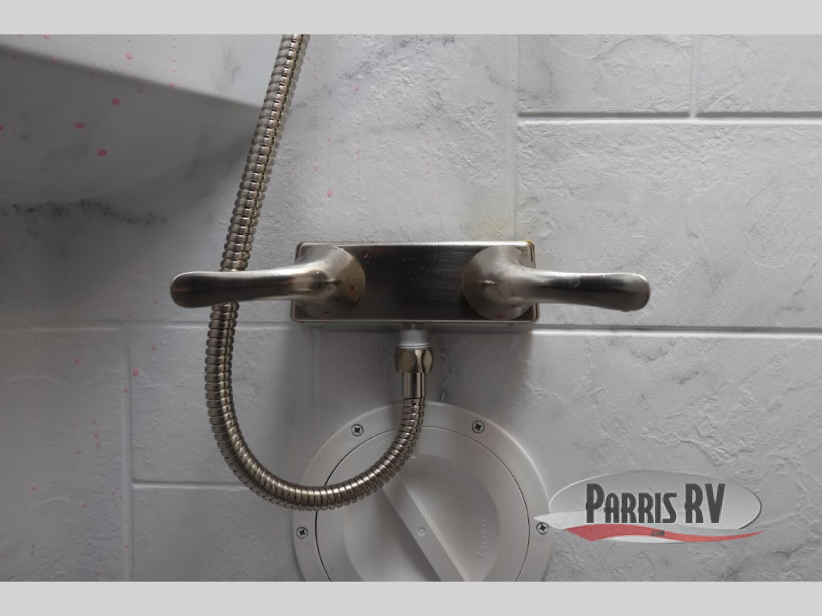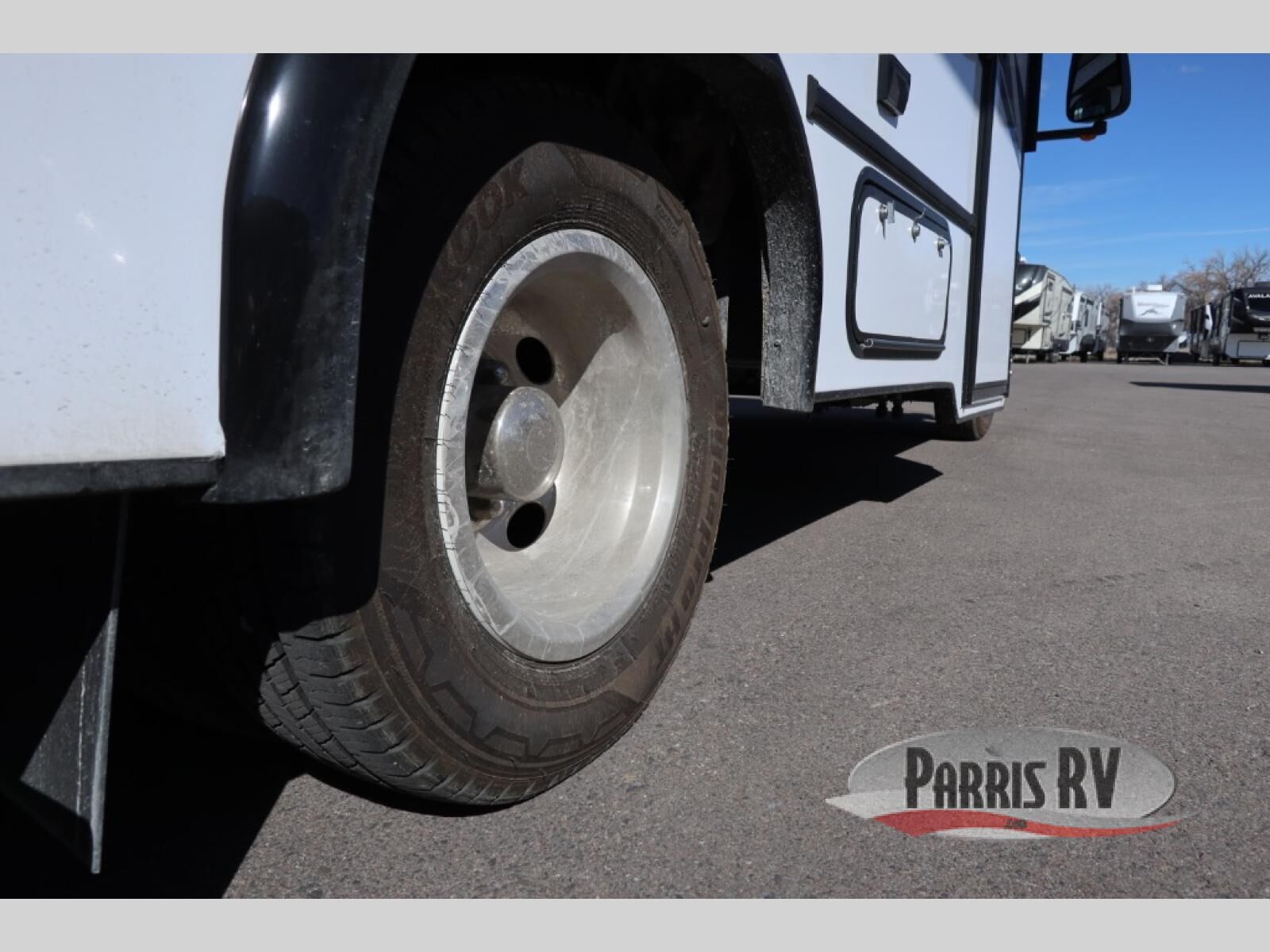 Freely move about this motorhome and have everything you need at your fingertips! The corner queen bed slide creates more interior space and has a nightstand next to a wardrobe and pantry to keep store your clothes and snacks. It is also conveniently next to the rear corner bathroom which has a 24" x 32" shower and a vanity sink just outside it. The fully equipped kitchen has a flip-up countertop to provide more meal prepping space, and you can enjoy your delicious meals at the booth dinette. The 60" x 80" bunk over cab has a 12V LED TV for extra entertainment!